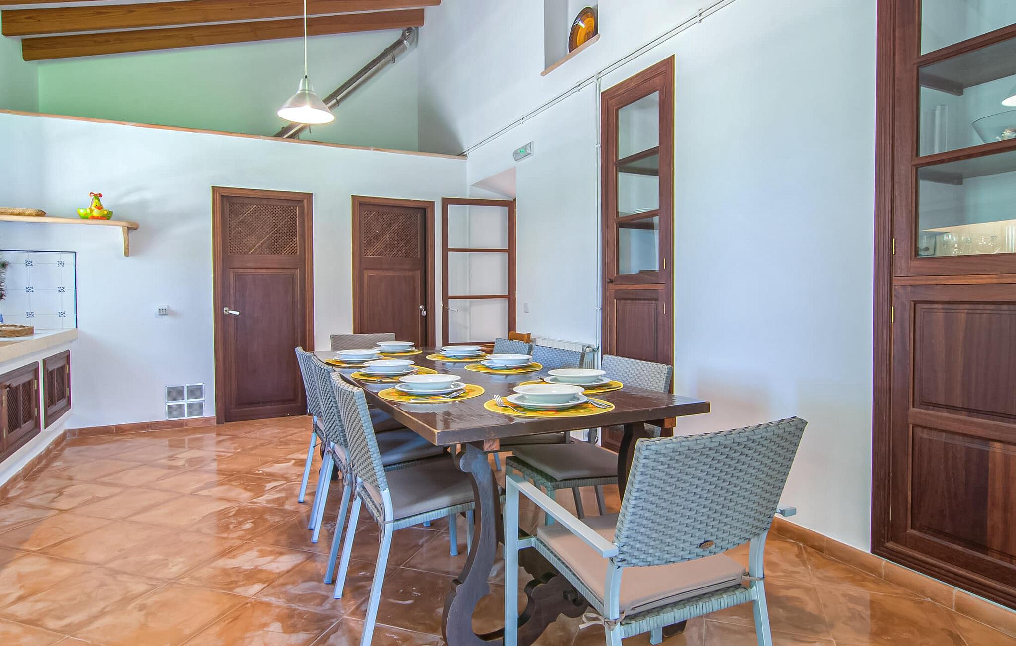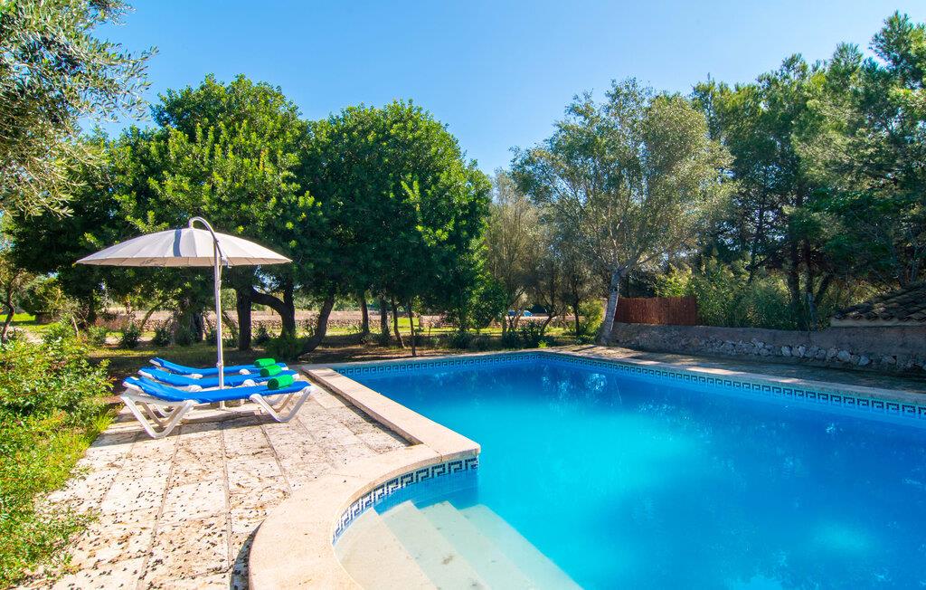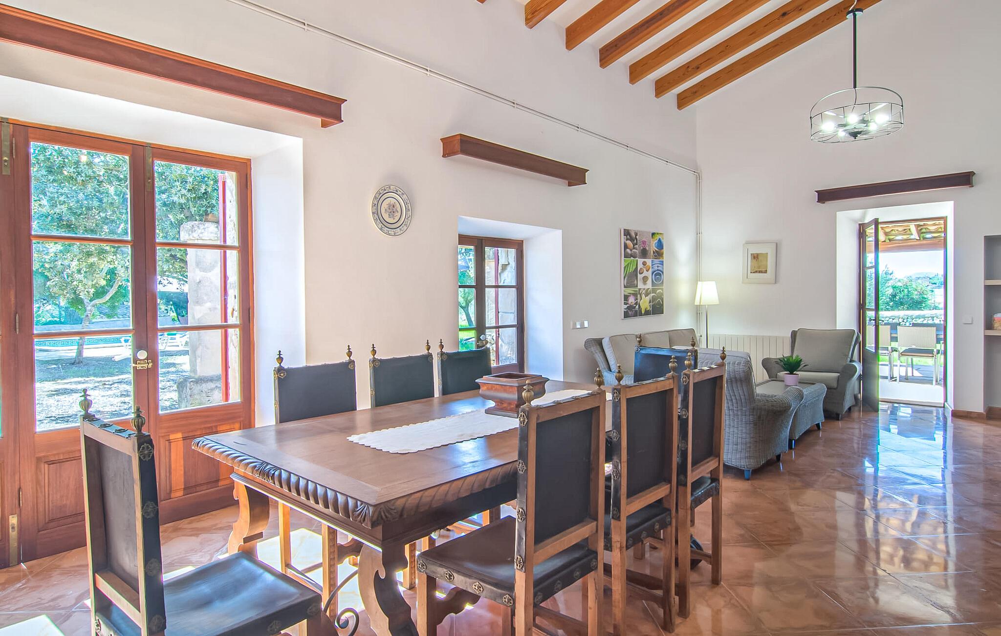 Den melodiske "Ca Carrotja Vella" hentyder til dens karakter med sit navn - et tidligere bondehus på en imponerende, enorm 180.000 m² stor ejendom. Landstedet byder sine besøgende og gæster hjerteligt velkommen, indlejret i det uforlignelige smukke landskab på den østlige del af øen, simpelthen perfekt til vandreture. Inden vi udforsker det omkringliggende område, tager vi jer med på en lille opdagelsestur i eventyrhuset inde og ude. Haven med sine gamle træer af oliven- og johannesbrødtræer, imponerende græsplæner, små stier og naturstensvægge fremstår helt naturlig og passer problemfrit ind i den tilsyneladende uendelige natur vidt omkring. Det kunne næsten ikke tilbyde mere privatliv. I vil helt sikkert føle jer tryg ved at slappe af ved den serpentinmosaikbeklædte pool. Helt ubemærket kan I tage en forfriskende svømmetur, slappe af på en af de komfortable liggestole eller endelig forkæle jer med en god bog på det hemmelige sted i skyggen under forteltet. Føler I jer lidt sulten, skal I blot tænde grillen lige ved siden af den overdækkede udendørs terrasse, hvor der er to tilstrækkeligt store spisepladser med trendy polyrattanmøbler - det perfekte sted at spise sammen på alle tidspunkter af dagen. Det statelige brostensbelagte murværk og vindmølletårnet fortæller en historie, der spænder over 100 år. Det er så meget desto mere imponerende, at ejeren har formået at bevare og endda forstærke det historiske aspekt af ejendommen gennem udsøgte møbler i rustik-moderne stil. Hvad ville det være uden en stor stue-spisestue med en hyggelig pejs, der sikrer maksimal komfort? Takket være de mange døre til terrassen fremstår indretningen ikke kun særligt lyst og indbydende, men giver jer også mulighed for nemt at skifte mellem ude og inde. Dette er også særligt praktisk for selvforplejning, da det smukke åbne køkken med langbord fører direkte ud på terrassen. Murstensskabe med trædøre, blå og hvide keramiske fliser på væggene og terracotta farvede fliser på gulvet tilføjer et strejf af tradition til dette ekstremt moderne køkken. Antikke møbler kombineret med moderne kunst, fritlagte brosten og tagbjælker af træ bidrager til hjemmets intime og trygge fornemmelse, når man er vært for hele familien. Det gælder også de fem rummelige soveværelser, der er fordelt på to etager, mens det runde tårnværelse emmer af en helt særlig atmosfære. De fire individuelt designede badeværelser er en kærkommen tilføjelse til det høje komfortniveau, der afspejles i hele huset uden at være påtrængende. Med charme og en følelse af enkelhed tilbyder "Sa Carrotja Vella" en utrolig varm atmosfære, hvor man simpelthen kan føle sig godt tilpas og godt tilpas. Med denne følelse af tryghed kan I frit begive jer ud på en opdagelsesrejse. De lokale i Porto Cristo er stolte af deres lille by, hvis navn går tilbage til 1200-tallet. Og sådan skal det være, for det charmerende feriested har bevaret sin unikke charme som lille fisker- og havneby. En flåde af fiskerfartøjer er yderligere bevis på feriestedets fortid, mens den moderne lystbådehavn afspejler dens klasse. I dag ligger restauranter i verdensklasse langs promenaden med udsigt over stranden, som flyder problemfrit ud i havnen. Selv mere ensomme strande er fristende på østkysten, "Calas de Mallorca". Takket være den centrale beliggenhed nær den delvist hørbare motorvej kan I hurtigt og nemt nå frem til jeres destination. I bør bestemt ikke gå glip af det naturlige vidunder ved de underjordiske grotter, Coves de Drac. Livlige byer som Manacor, smukke strande med turkisblåt vand, bølgende grønne bakker og masser af natur – det er mangfoldigheden, der gør Mallorca til den ø, den er. I kan se frem til alt dette og en afslappende tid med venner og familie under jeres ophold på "Sa Corrotja Vella". Den historiske villaejendom "Sa Carrotja Vella" har en imponerende stor ejendom og have i vidunderlige landlige omgivelser. Samtidig ligger det også lige uden for den populære kystby Porto Cristo. Gå en tur langs anløbsbroen, gå ind på en venlig restaurant med udsigt over havnen eller nyd det livlige ugentlige marked, mens I gør jeres indkøb. Udover den velholdte sandstrand er der andre naturlige bugter i umiddelbar nærhed, hvoraf nogle er helt uberørte.