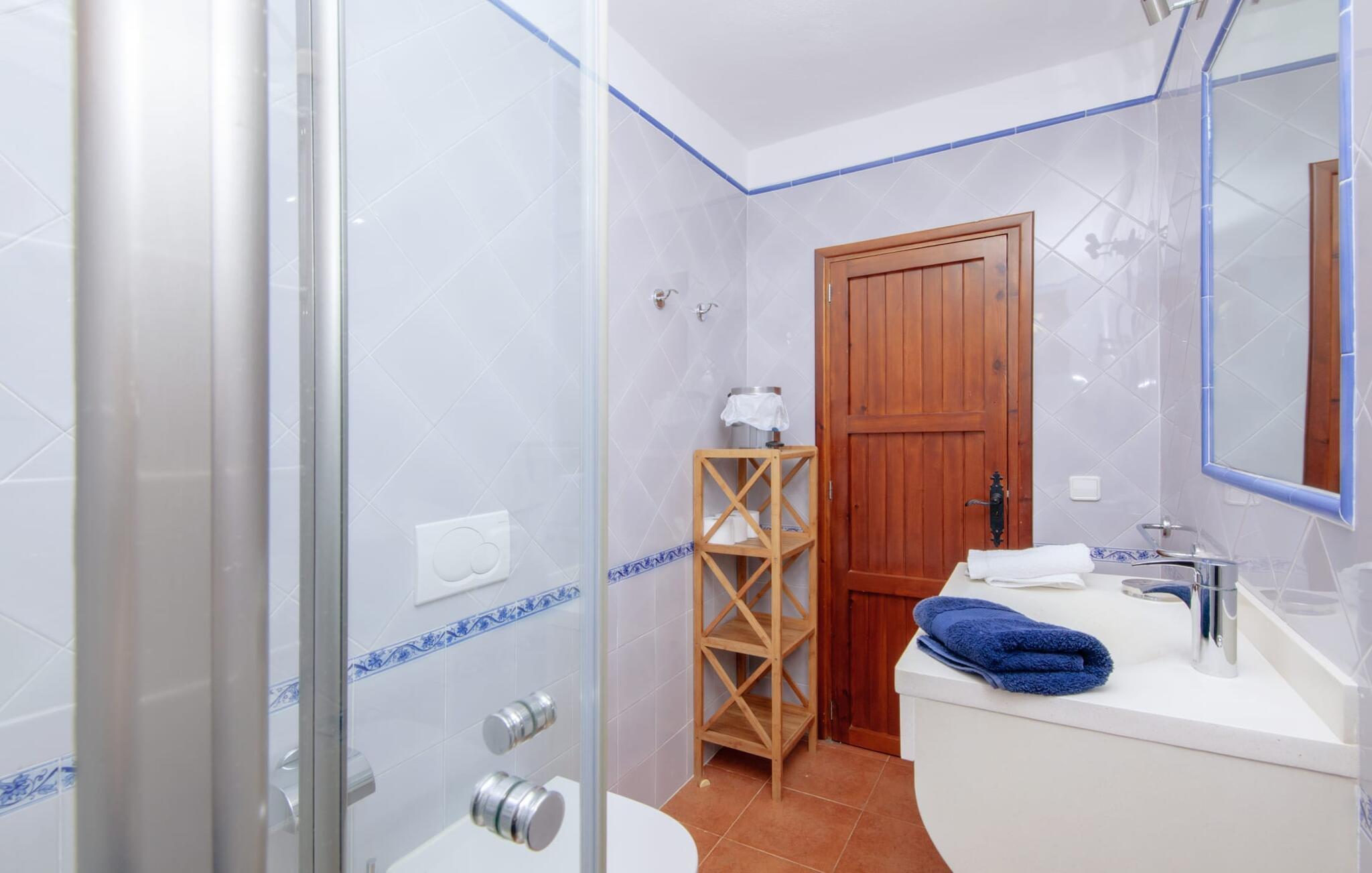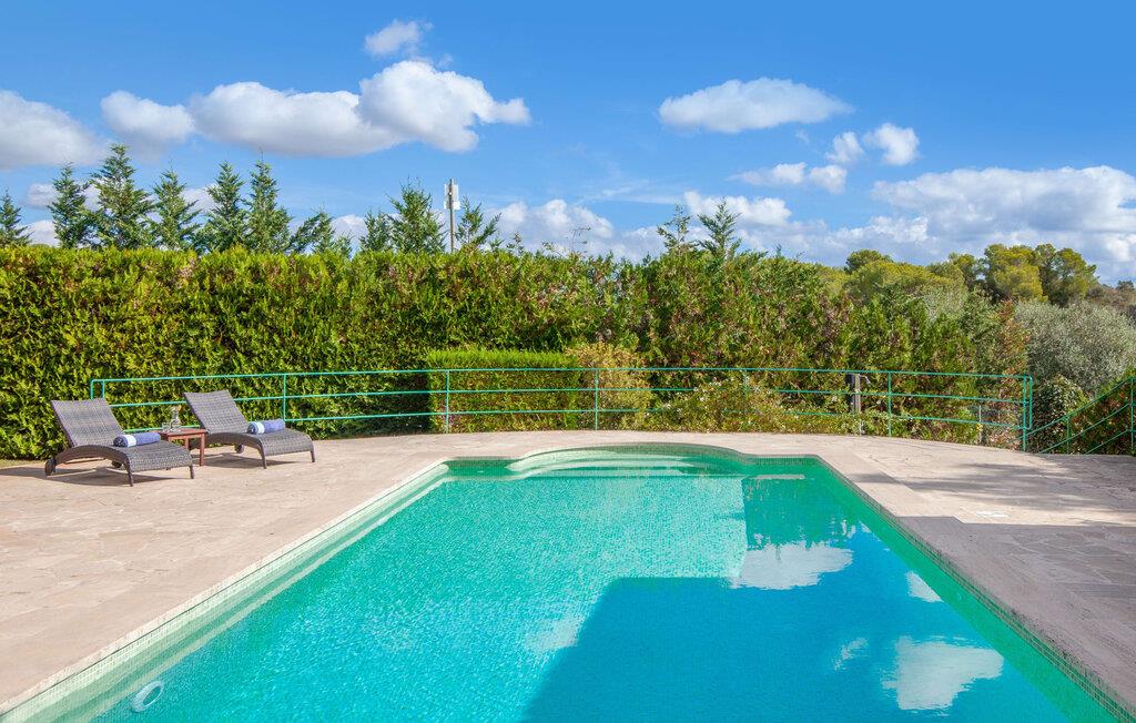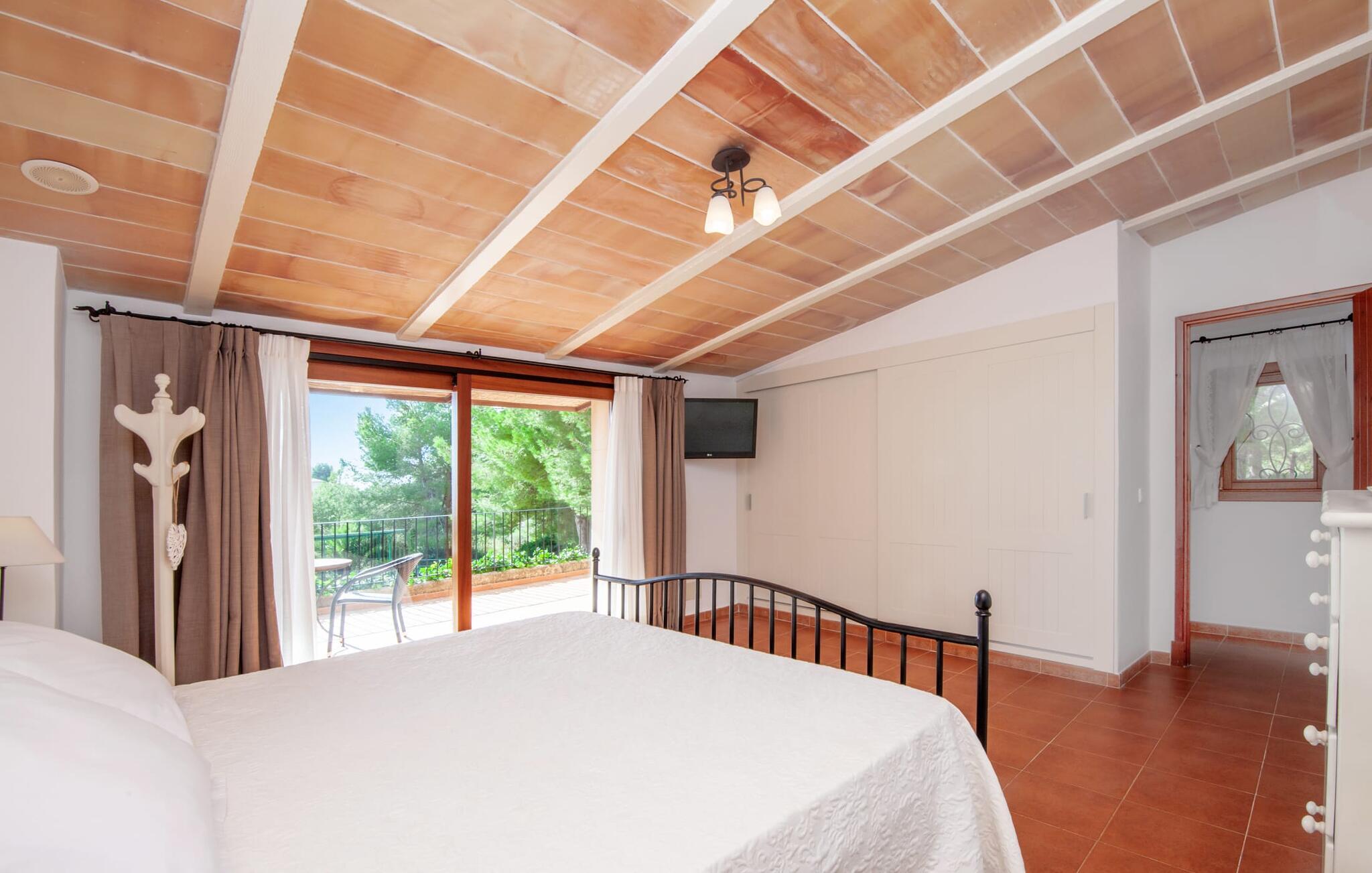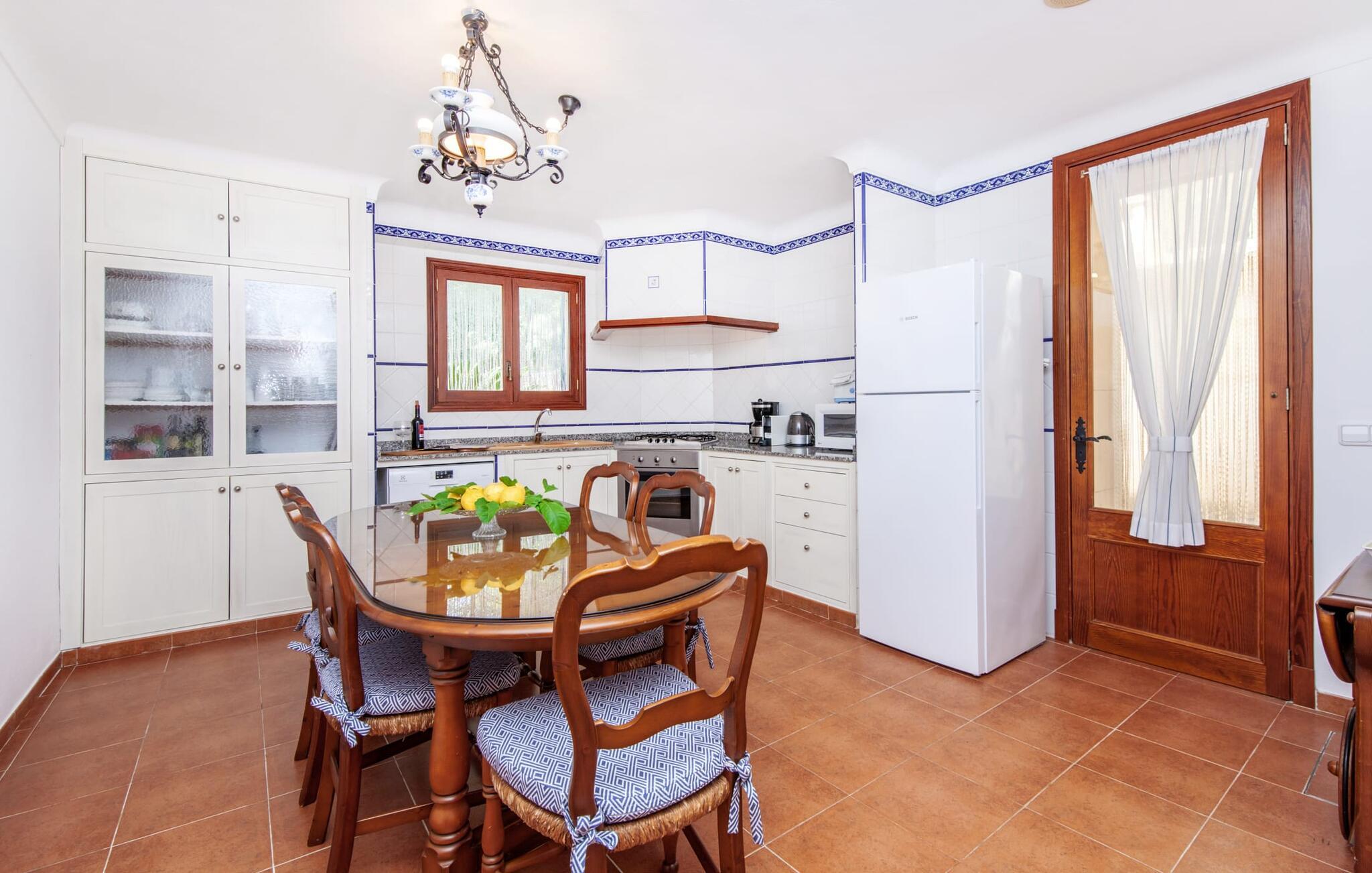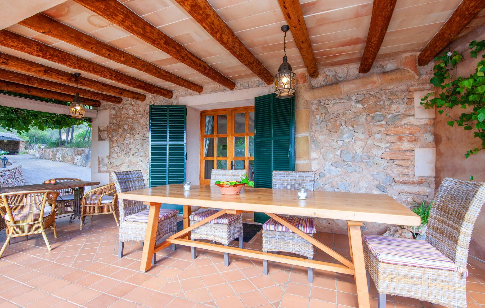 Den smukt beliggende finca "Sa Caseta d'Or" ligger foran den nærmest eventyrlige kulisse af fyrreskove, som giver ejendommen dens karakter. Hvor end I er og kigger – her er I helt privat og alene. Først aner I ikke, hvilken forudbestemt situation I er i. Men går I rundt på ejendommen mod poolovalen med solterrasse eller til tagterrassen på øverste etage, vil I se en magisk udsigt over den lille kystby Portocolom, Mallorcas største naturhavn, som næsten tager pusten fra jer. . Det er bare fantastisk! Hele udearealet med græsplæne, skræntsikring af naturstensmure og de smukt anlagte terrassearealer er imponerende. Siddepladser under træer og liggestole, som også kan skygges under telloen direkte ved poolcirklen, strukturerer eventyrhaven. Det overdækkede udekøkken med murstensgrill og det overdækkede opholdsområde lige ved siden af huset fuldender billedet af et unikt mallorcinsk feriehus. At denne smukke og absolut private finca ligger på Mallorca kan også ses i husets smagfulde indretning. Blandingen af delvist antikke og traditionelle møbler i kombination med moderne landstedsdesign resulterer i den umiskendelige stil, hvor vores feriegæster simpelthen føler sig hjemme. Oversat betyder "Sa Caseta d'Or" noget i retning af "den gyldne hytte" - på den ene side gælder det for værdien, men det har måske også noget at gøre med den utroligt flotte beliggenhed, som I kan nyde her, en typisk rustik stemning med en moderne landlig stil. Det finder I ikke kun i den hyggelige stue med pejs, men også i det fuldt udstyrede, ultramoderne køkken. Håndmalede fliser med blomstermønstre og terracottagulve i hele huset giver et harmonisk præg. Rejser I med fire personer eller som familie, har I booket den bedste komfort med to badeværelser (hvoraf det ene er i stueetagen). De to soveværelser med aircondition er placeret ovenpå. Det andet badeværelse er en suite og er tilgængeligt fra begge soveværelser. Det bedste til sidst: Denne unikke finca kan bookes hele året rundt og er et utroligt smukt tilflugtssted selv i de milde lavsæsonmåneder. Fincaen "Sa Caseta d'Or" ligger midt i naturen på en sublim bjergskråning. Omgivet af fyrretræer tilbyder den spektakulære beliggenhed jer en fænomenal udsigt over havet og Portocolom. På grund af nærheden til landevejen, som kun mærkes, når der blæser, kan man næsten direkte komme til kystbyen på 7 minutter i bil. De omkringliggende landsbyer som S'Horta eller Felanitx inviterer jer også til at besøge og nyde fantastiske ugentlige markeder. Hvide, familievenlige sandstrande som Cala Marçal ligger kun 6 km væk.
