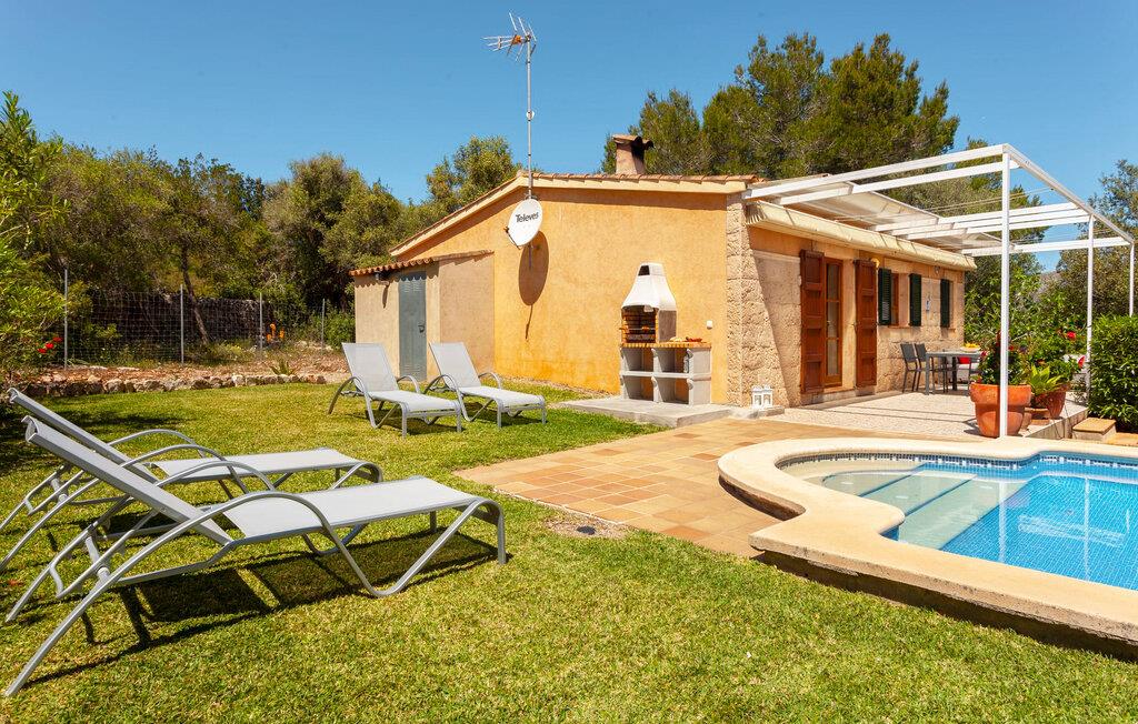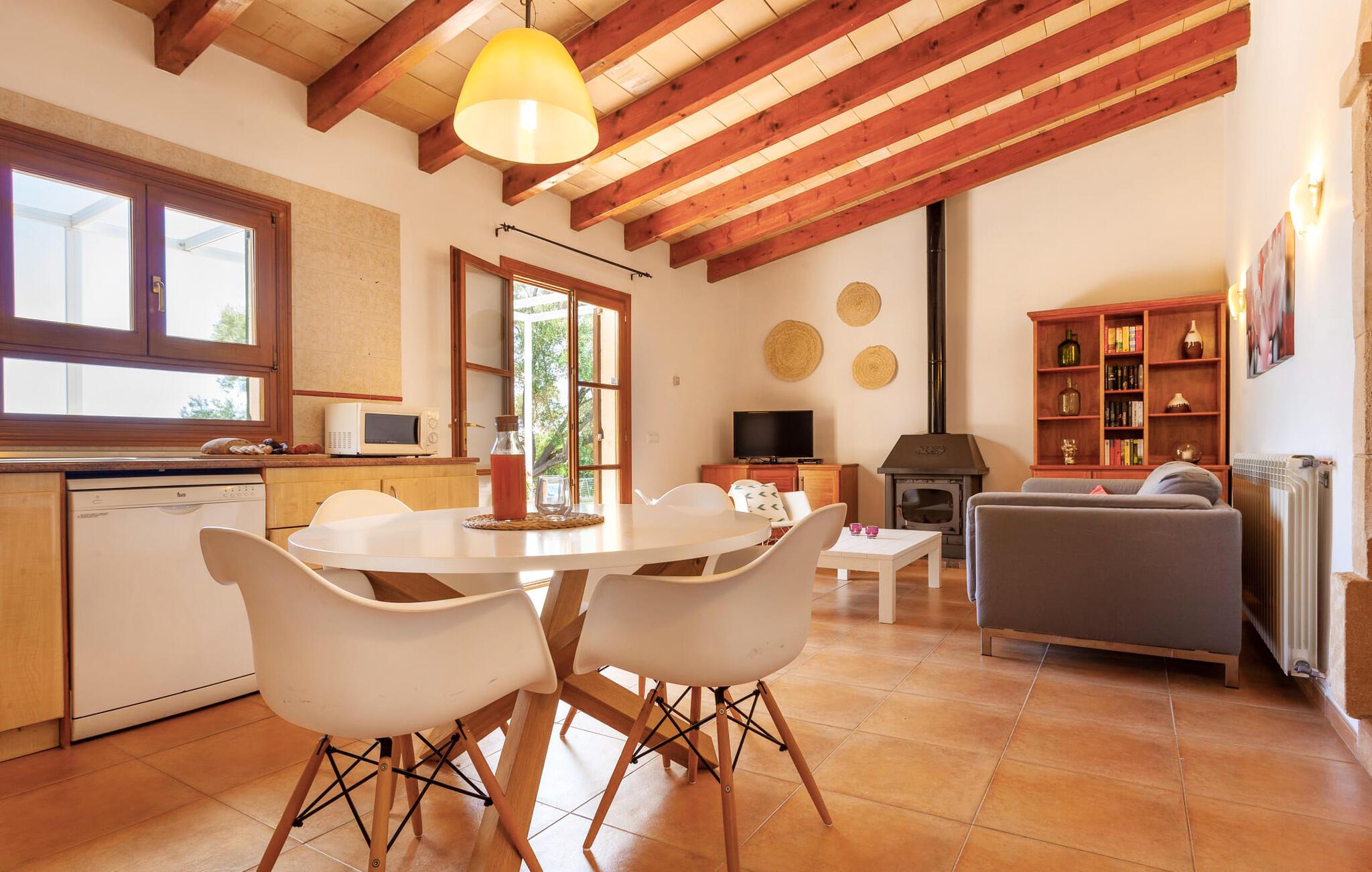 Ved jeres ankomst til "Sa Caseta" vil I blive betaget af de idylliske omgivelser med deres betagende udsigt over den charmerende by Artà. Til venstre er der en lille parkeringsplads og en solterrasse med bord og stole, det perfekte sted til en morgenkaffe På højre side fører en anden terrasse til en frodig græsplæne med liggestole, ideel til solbadning i skyggen af gamle træer. buet kant til at køle af på varme sommerdage Indenfor udstråler villaen varme og komfort og har 80 m² moderne boligareal. Den åbne stue har pejs og byder på smukke rammer for hyggelige aftener, mens det fuldt udstyrede køkken med spiseplads Bordet er ideelt til indendørs spisning. Med to hyggelige soveværelser og et rummeligt badeværelse forstærker lyse vægge og høje bjælkelofter den luftige atmosfære. "Sa Caseta" er ofte valgt af par, der ønsker at tilbringe en romantisk ferie og nyde den rolige beliggenhed. Om natten giver det oplyste San Salvador-kloster jeres ferie et magisk præg afsondret beliggenhed på en lille bakker omkring 4 km vest for Artà. Her bor I midt i vild, romantisk natur med ældgamle træer. Cypresser, mandler, baobab og oliventræer præger det blide bakkelandskab. En utrolig vidtrækkende udsigt over byen Artà er et højdepunkt ved dette feriehus. Den smukke, naturlige sandstrand i Cala Torta ligger kun 15 km væk, andre strande er endnu tættere på huset.