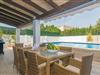 Stue, Køkken(komfur, kaffemaskine), soveværelse(enkeltseng, enkeltseng), soveværelse(enkeltseng, enkeltseng), soveværelse(dobbeltseng), soveværelse(køjeseng), badeværelse, badeværelse, badeværelse, ovn, mikrobølgeovn, opvaskemaskine , køle-fryseskab, bruser, bruser, bruser, håndvask, håndvask, håndvask, toilet, toilet, toilet, klimaanlæg, klimaanlæg, klimaanlæg, klimaanlæg, have, havemøbler, 8x solstole, grill, 2x Parasol, swimmingpool, barneseng, barnestol