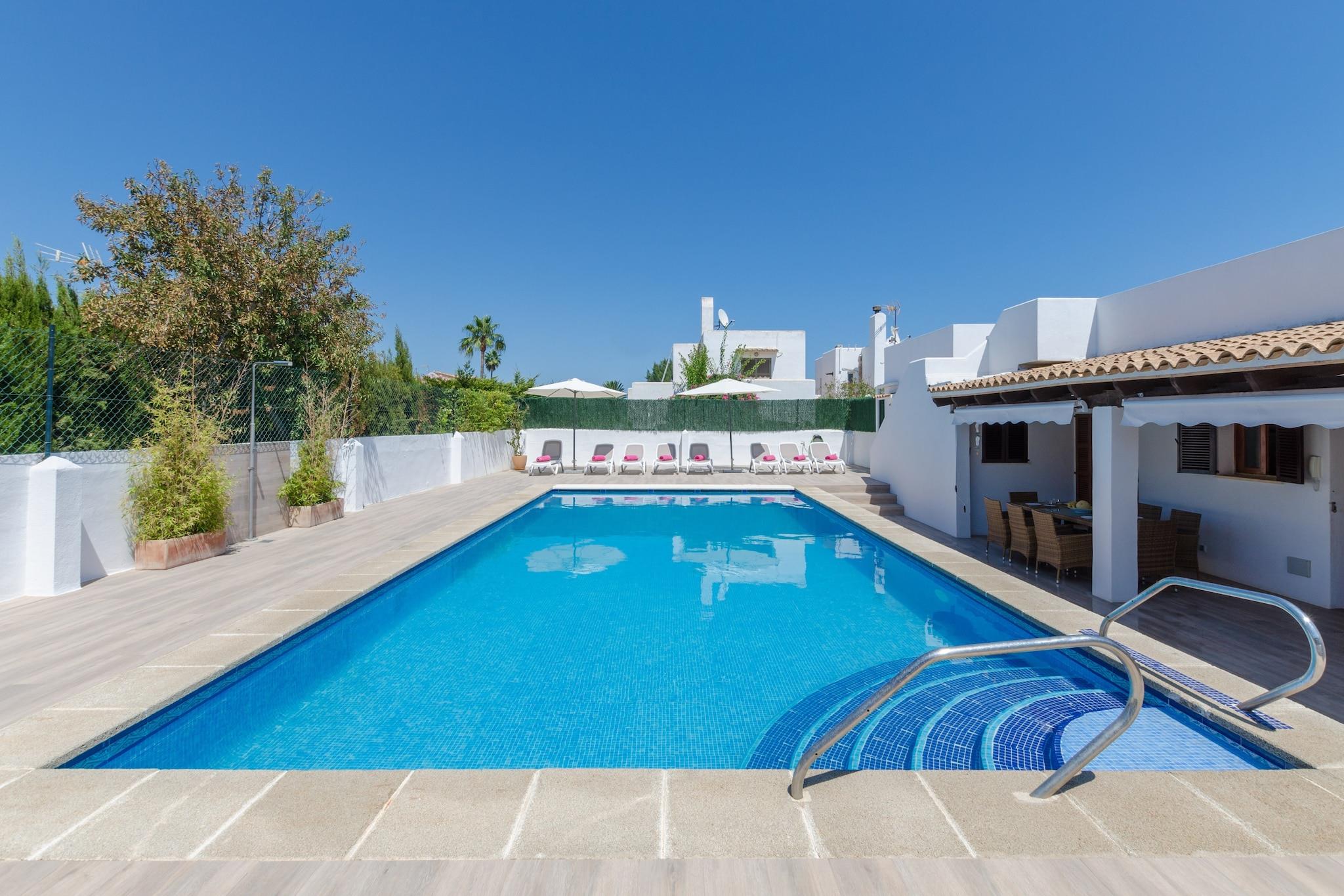 Dette fantastiske kysthus ligger kun en kort gåtur fra stranden og tilbyder ideelle udendørs rum. Den store private saltvandspool (10x5m, 1-2,2m dybde) er omgivet af 8 liggestole, og der er en møbleret veranda perfekt til grillmad. Foran giver et græsplæneområde og en rummelig terrasse en afslappende atmosfære. Indenfor har huset en stor stue/spisestue med aircondition, satellit-tv og en pejs. Køkkenet er udstyret med induktionskomfur og spisebord. Vaskerummet omfatter vaskemaskine, strygejern og strygebræt. Huset har fire soveværelser med aircondition: to med enkeltsenge og garderobeskabe, et med dobbeltseng og eget badeværelse (inklusive bruser og barneseng/høj stol), og et med køjeseng. Alle værelser har loftsventilator, og der er to ekstra badeværelser med bruser. Ejendommen er beliggende i Sa Coma, kun 600 meter fra stranden og tæt på barer, restauranter, supermarkeder og meget mere. Son Servera-golfbanen ligger 9,6 km derfra. Aircondition kører i stue-spisestuen fra kl. 14.00 til 19.00 og i soveværelserne fra kl. 22.00 til 07.00. Gæster under 25 år accepteres kun, hvis de rejser som en familie. Paskopier er påkrævet for booking. Kæledyr er ikke tilladt, og arrangementer er forbudt. Udvendig parkering er tilgængelig for 2 biler. Afstande: Strand: 600 m (Sa Coma) Lufthavn: 69,3 km (Son Sant Joan) Golf: 9,6 km (Son Servera) By: 0 km (Sa Coma) Hospital: 18,7 km (Manacor) Turistlicens: ETV/7653. En obligatorisk Ecotasa gælder. Depositum betales ved ankomst. Som reaktion på Coronavirus (COVID-19) er yderligere sikkerheds- og sanitære foranstaltninger i kraft på denne ejendom.