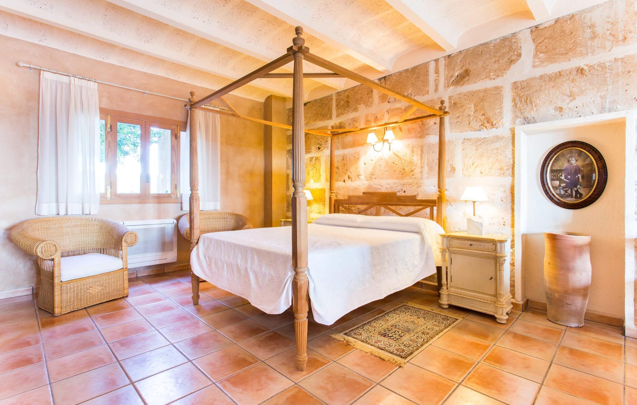 Du vil elske dette søde lille feriehus med sine smukke grønne skodder fra det øjeblik du træder ind. Det har til huse i en over 100 år gammel villa, smagfuldt restaureret i overensstemmelse med den lokale tradition og omgivelserne. Feriehuset er omgivet af et idyllisk naturlandskab med en frugthave og endda nogle glade høns, der strejfer rundt på ejendommen. Den smukke fælles pool er også tilgængelig for de andre fem lejligheder på ejendommen: "Sa Cova Cabrera", "Sa Cova Mallorca", "Sa Cova Menorca", "Sa Cova Tagomago" og "Sa Cova Ibiza". Hvis du foretrækker noget mere aktivt, er de smukke omgivelser ideelle til lange gåture gennem naturen, forbi de maleriske små vindmøller, der er så typiske for denne region. Om aftenen er det praktiske udekøkken det ideelle sted at forberede en overdådig BBQ. Dette er et Fincallorca feriehus. Det charmerende feriehus "Sa Cova Formentera" emmer af sin originale landhus-flair: rustikke loftsbjælker, naturstensvægge, typiske mallorcanske fliser og masser af træ. Takket være de store vinduer kan masser af naturligt lys oversvømme rummene og understrege middelhavsstemningen. Denne lejlighed tilbyder to muligheder for indendørs spisning: du kan spise dine måltider i den separate spisestue eller i det lyse og luftige køkken, perfekt udstyret til selvforplejning. Det enkelt, men smukt indrettede soveværelse med himmelseng inviterer dig til at drømme. I soveværelset er der desuden opholdsstue med tv, som kan adskilles fra sovepladsen med en træskærm. Badeværelset er en-suite; En naturstensvæg, der harmonerer perfekt med det gyldne spejl, giver badeværelset sit fortryllende flair. Hvert værelse i dette feriehus er designet, så du altid føler, at du er, hvor du er: midt på det autentiske Mallorca. Langt væk fra de ansigtsløse facader, der ødelægger landskabet i turistområder. Forkæl dig selv med en pause fra hverdagen og nyd denne perle. Med en lejebil kan du nå byen Campos på få minutter. Da det stort set er en landbrugsby, er det det perfekte sted at hente friske råvarer fra markerne. Der er et lokalt landmandsmarked hver torsdag og lørdag. Du bør bestemt aflægge et besøg på det lille familieostmejeri Formatges Burguera. Det er på vejen til Colonia de Sant Jordi og er kendt for sin fremragende ost. Kun 21 km væk ligger den fantastiske Es Trenc strand, kendt for sit hvide sand og smukke natur. Beliggende mellem fyrretræer og blidt bølgende klitter er det ikke kun en fryd for øjet, men også perfekt for børn, da vandet kun gradvist bliver dybere. Et himmelsk sted på landet. Denne beskrivelse giver indtryk af dette feriehus, hvis rolige og fredelige beliggenhed er helt perfekt til et eller to par eller små familier. Den lille by Campos ligger kun 8,7 km væk. Der vil du finde adskillige butikker til at dække dine daglige behov. Smukke strande såsom Platja de Sa Rapita og Ses Covetes ligger kun 20 minutter væk i bil.