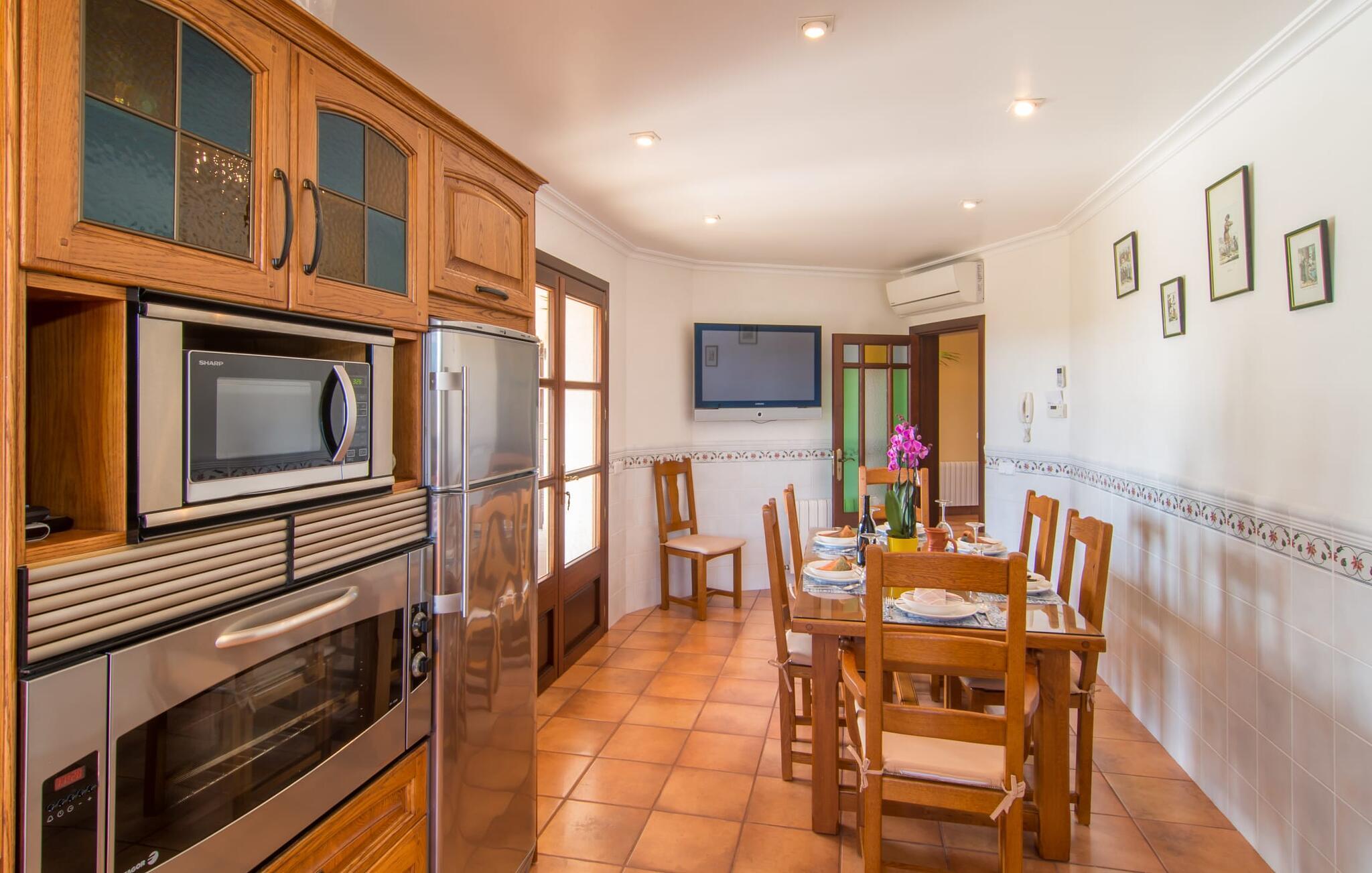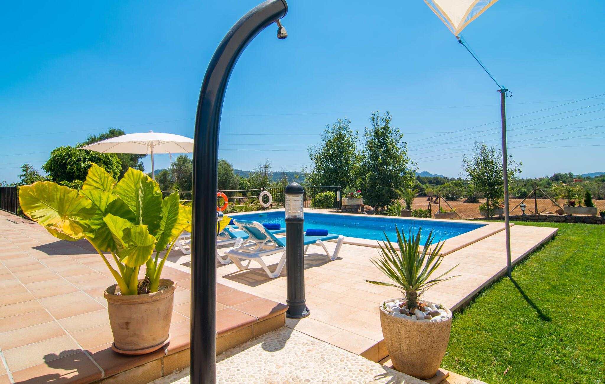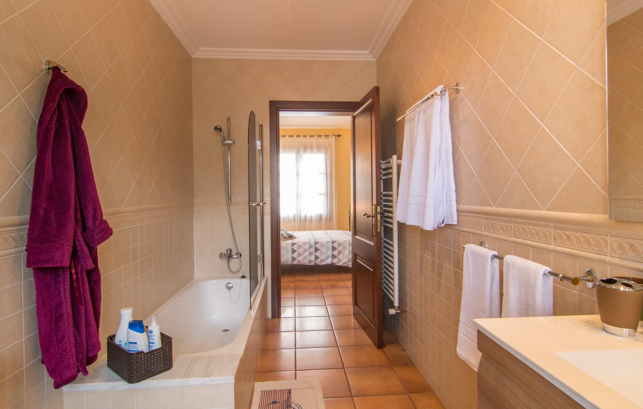 Bo på "Sa Creu Vella Ses Ancores", og I ved, at I har truffet det rigtige valg: Middelhavets landvilla på kanten af Capdepera golfbanen er perfekt for folk, der ønsker at tilbringe deres ferie omgivet af grønne områder og alligevel stille elsker det, butikker, caféer, havet og attraktive strande i nærheden. Parker jeres lejebil klar til at køre på grusparkeringspladsen foran den imponerende indgang. Tag et kig på billederne og glæd jer til det hyggelige loungehjørne på terrassen eller liggestolene ved poolen – det lange bord er allerede dækket til otte personer. Hvad med en forfriskende fadøl ved siden af den rygende grill eller en tur rundt i den 21.000 m² store ejendom med udsigt til himlen og de omkringliggende bjerge? I kan endda blive fristet til at gå op ad de let skrånende bakker bag landvillaen for at nyde udsigten til det funklende hav i det fjerne... Fra indgangspartiet går gæsterne direkte ind i den indbydende lounge med dens rustikke, hyggelige charme. I pejsestuen kan I bestemme, om I vil gøre jer godt tilpas foran det ekstra store fjernsyn eller bare se flammernes knitren. Også her finder I et langbord, perfekt til spisning indendørs, da mørke skyer danner sig over landvillaen. Når I åbner de tre dobbeltdøre til terrassen og haven, har I stadig følelsen af at spise udenfor. Det komfortable køkken, udstyret med de nyeste apparater og et fladskærms-tv, tilbyder den samme lyse atmosfære og inviterer jer til en hurtig morgenmad eller snack. I stueetagen er der også et gæsteværelse med to enkeltsenge og et moderne brusebad. På øverste etage er der tre dobbeltværelser med aircondition. Et privat badeværelse med en kombination af bruser/badekar og et walk-in-closet tilbyder en gruppe familiemedlemmer eller venner endnu mere komfort og privatliv. Altanen er derimod tilgængelig fra gangen, så alle kan nyde den solrige havudsigt. Oplev solrige tider mellem Artà og Capdepera: fra den rustikke, hyggelige finca "Sa Creu Vella Ses Ancores", beliggende nær en berømt golfbane. Nyd den fremragende beliggenhed tæt på to byer med shopping, caféer og restauranter samt strandene omkring det livlige Cala Ratjada. Fra Betlem kan I nå vandrestierne samt andre familievenlige strande og magiske sportsmuligheder for surfere i Alcúdia-bugten på cirka 30 minutter.