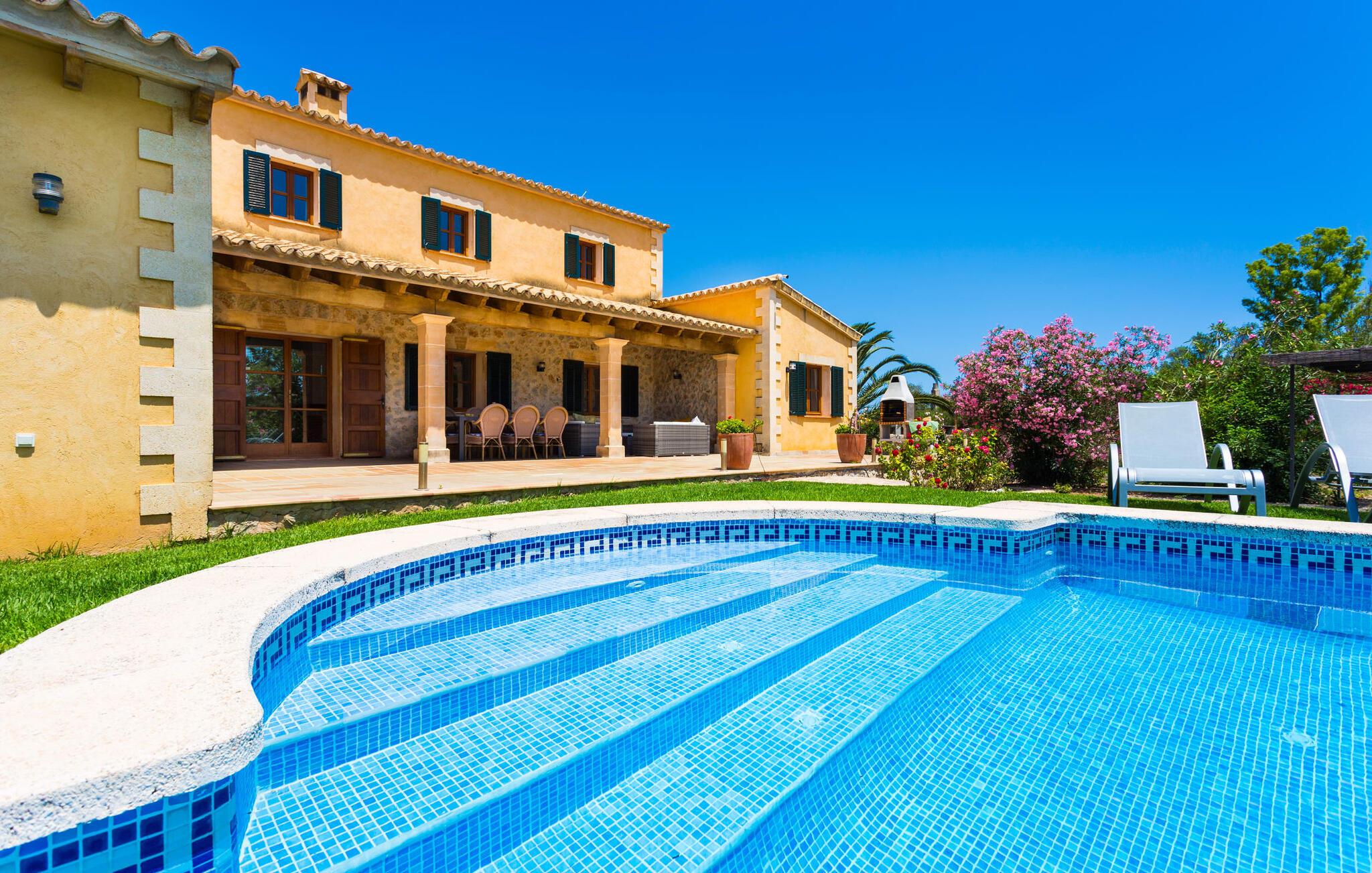 Denne store, autentiske mallorcanske villa ligger i den nordøstlige del af Mallorca, kun 3 km vest for Artà. Beliggende på en uberørt ejendom for enden af en blind vej, nyd et roligt tilflugtssted uden forbipasserende trafik. Den velholdte have er beplantet med en række træer og byder på et idyllisk udendørsområde til en afslappende ferie. Der er en rummelig, delvist overdækket terrasse mellem huset og poolen, som giver perfekt skygge på solrige dage. Slap af på stilfulde udendørs sofaer eller saml jer omkring det store spisebord til en hyggelig grillaften. Komfortable liggestole på græsplænen inviterer soldyrkere til at slappe af efter en forfriskende svømmetur i den bugtende pool, som er tilgængelig via en halvcirkelformet trappe. Indvendigt har den rummelige villa faciliteter af høj kvalitet. Lyse rum med trælofter og smukke gulvfliser skaber en munter atmosfære. Den store stue har åben pejs og hyggeligt sofahjørne. Det fuldt udstyrede køkken har et spisebord til op til ti personer og et bryggers med vaskemaskine. Fire soveværelser med naturligt lys, kombineret med fire badeværelser og centralvarme sikrer et afslappende ophold året rundt. "Sa Fonteta" er en stor stenvilla beliggende 3 km vest for Artà. I denne maleriske by finder I flere små supermarkeder og en smuk gågade med butikker til hverdagens behov. Hver tirsdag er der et ugentligt marked i centrum af Artà. Den smukke Den naturlige sandstrand i Cala Torta kan nås med bil på cirka 10 minutter. Der er fire golfbaner i nærheden af villaen, hvoraf nogle kun er 5 minutter væk i bil.