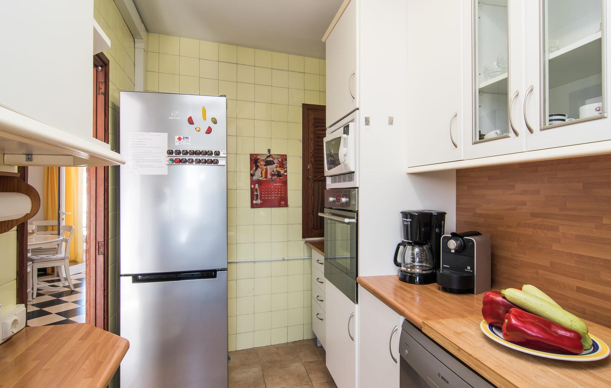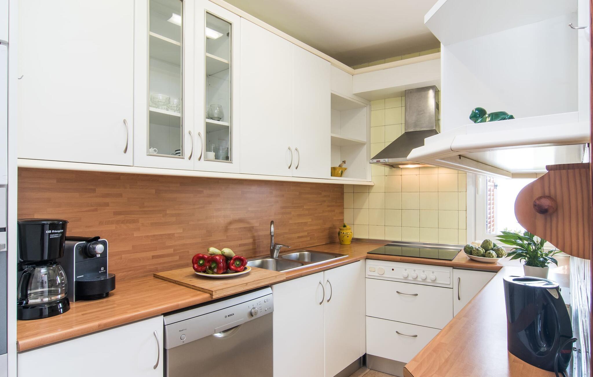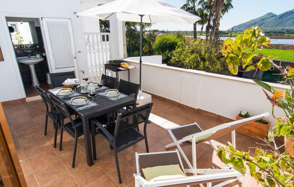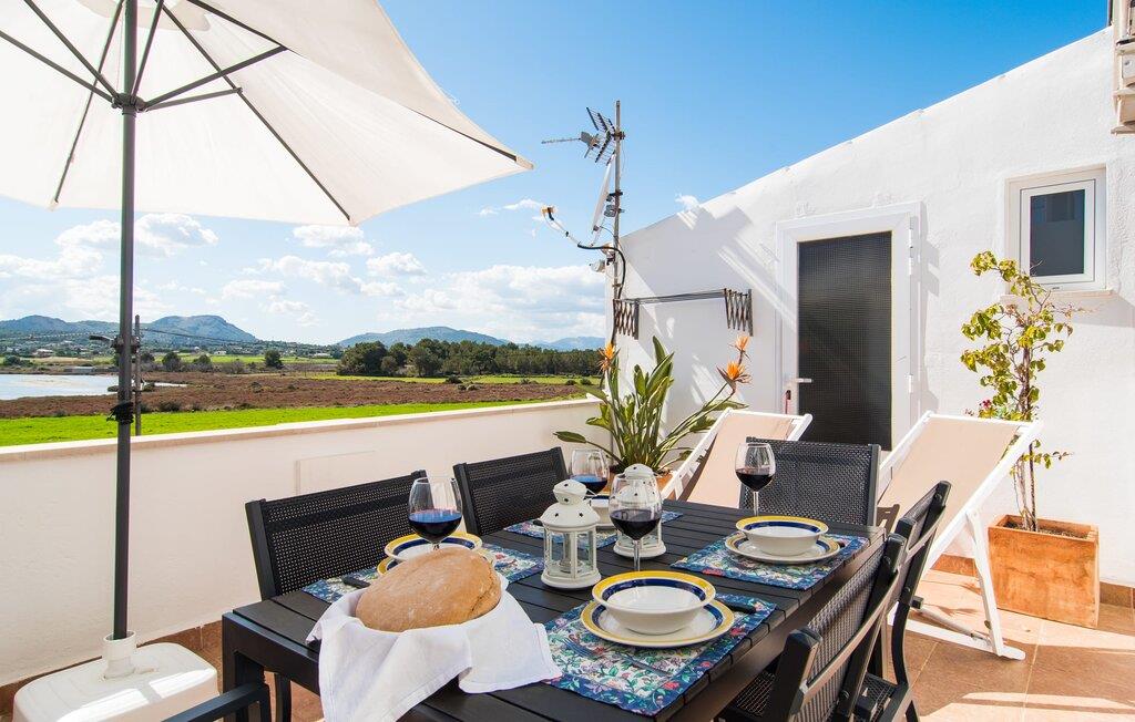 Hvis I kan lide morgenmad under åben himmel, er feriehuset "Sa Fornera" på den nordlige del af øen i Alcúdia det rigtige sted for jer. Her kan I nyde en fortryllende, idyllisk udsigt over havet og bjergene fra den solbeskinnede tagterrasse. Masser af grønt og palmer forvandler området til en oase af fred. Alt er sørget for, at I bare kan slappe af: Hvis I slapper af på en af liggestolene, glemmer I hurtigt hverdagens bekymringer. Altanen byder på mange siddemuligheder. Den mobile grill er desuden praktisk, hvormed I kan fremtrylle en solid BBQ i en hyggelig atmosfære, der appellerer til alle sanser - ligesom det stilrene interiør, der venter jer indenfor. Middelhavsmøblerne og masser af hvidt udstråler lethed og livsglæde, som I hurtigt vil bemærke. Køkkenet imponerer med en opvaskemaskine og et stort amerikansk køleskab, der giver plads nok til drinks og kølige cocktails. Den moderne ovn i en behagelig højde er også meget behagelig at bruge. I vil endda kunne smage den nyfundne feriefølelse, der omgiver jer i dette rækkehus på jeres tallerken. Måske hoppe og danse hen over det skakterne mønster, der pynter på gulvet. Når I er udmattet, kan I krølle jer sammen på de cremede sofaer eller trække jer tilbage til et af de tre soveværelser, hver med en dobbeltseng. Nuancer af blå og beige skaber en fredelig atmosfære. Kommoderne tilbyder nok opbevaringsplads til alt, hvad I har brug for på ferien. I vil se billeder af havet på væggene, men alt hvad I virkelig skal gøre er at gå ud af døren for at dykke ud i det blå. Og selvom I føler jer hjemme i dette moderne feriehus, så sørg for at komme ud og personligt udforske dette storslåede landskab, før I kan se, at det hele er ægte. jeres lejlighed ligger i en rolig udkants beliggenhed og har en asfalteret parkeringsplads. Alcúdia ligger kun 3 km væk. Der er stor aktivitet i byen. I kan opdage endnu flere spændende ting, når I slentrer gennem det ugentlige marked, som ligger omkring 4 km væk. Mens I slentrer gennem tribunerne, indånd duften af Mallorca. Hvis I vil ud med jeres golfkøller, skal I kun køre 7 km for at nå Club de Golf Alcanada. Nærheden til havet er uovertruffen: Kun 80 m i luftlinje og en god kilometer væk kan I fordybe jer i det blå vand, som I tidligere har beundret fra jeres tagterrasse. Dette feriehus ligger på den nordlige del af Mallorca. Alcúdia fortryller ikke kun familier med sine kilometervis af fine, let skrånende strande, men har også meget at byde på for historieinteresserede. For det tidligere fiskerleje har meget mere at fortælle, end man ville forvente ved første øjekast. Rejsende elsker at slentre gennem de smalle gader med butikker og tage lange gåture på stranden. Variation er garanteret i denne del af Mallorca.