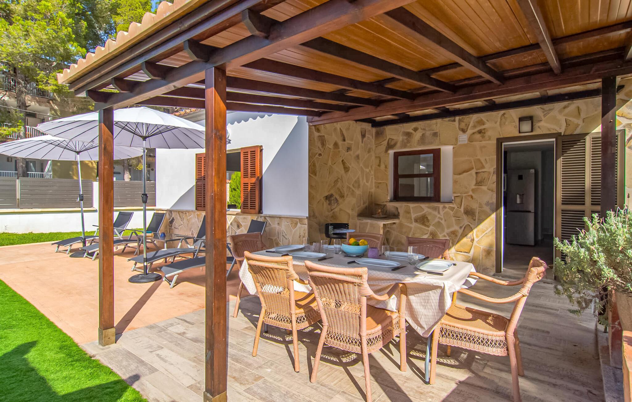 Start dagen med en gåtur ved havet og mærk det gyldne sand under dine fødder. Villa “Sa Gola” tilbyder dig en varieret ferie mellem bjerg og hav med den perfekte infrastruktur i den lille kystby Canyamel. Synet af den lokale golfbane får også passionerede golfspilleres hjerter til at banke hurtigere. Det hvide feriehus med en stenbrudsbase nyder godt af sin kystnære beliggenhed og byder på en afslappende ferie. Murstensbassinet, hvis flade design er modelleret efter indgangen til havet og overrasker med et vandfald, bidrager til dette. På den modsatte side inviterer en balinesisk seng til at slappe af. De frodige græsplæner giver en fin kontrast til den brolagte terrasse med liggestole (og parasoller) og yderligere to siddepladser. Du kan nyde din morgenkaffe, morgenmad eller endda grillen, som kan tilberedes på murstensgrillen udenfor. Du kan vælge om du vil sidde i det overdækkede område eller det solbeskinnede område. Havudsigtsvillaen er den perfekte symbiose af byhus og landsted med maritim lethed. Der er en let brise, der er typisk for kystvegetation, og stedsegrønne fyrretræer fuldender billedet. Sommerhuset er perfekt til op til seks personer, der nyder at gå, udforske området eller løbe til stranden. Du flytter i et lyst hus, hvor hvide og naturlige toner er de dominerende farver. Det får det moderne interiør til at fremstå lyst og behageligt puristisk. Det fuldt udstyrede køkken har udgang til den overdækkede veranda og stuen med spiseplads - ideel til selvforplejning under en afslappende ferie. Stuen/spisestuen fører ud til sideterrassen - så indendørs og udendørs arealer er perfekt sammenvævet. På bagsiden af det imponerende feriehus er der tre soveværelser med dobbeltsenge og to flisebadeværelser af høj kvalitet, hvoraf det ene har hjørneboblebadekar. "Sa Gola" står for et perfekt mallorcansk sommerhus med en førsteklasses beliggenhed med overbevisende reduceret indretning. Se selv! Villa "Sa Gola" er en ideel feriedestination for Mallorca-fans, der ønsker at opleve øens mangfoldighed på én gang. Den moderne bolig med en landstedsstemning har et harmonisk designet udendørsområde med en premium pool og vandfald. På grund af sin beliggenhed midt i det udsøgte Canyamel, kan du nogle gange høre lyden af et smukt sted, men du nyder samtidig godt af den fremragende infrastruktur til shopping. Torre Canyamel med sin fine sandstrand kan nås via en sti på kun 500 m. Bemærk venligst, at denne ejendom ikke accepterer ungdomsgrupper eller polterabender. En ungdomsgruppe på denne ejendom består af personer på 25 år eller derunder. Book ikke denne ejendom, hvis du er en ungdomsgruppe eller en polterabendgruppe, da din reservation vil blive afvist, når den er booket, hvilket også kan være tilfældet ved ankomst til ejendommen eller under dit ophold, og du vil ikke modtage en refusion. Dette er et Fincallorca feriehus.