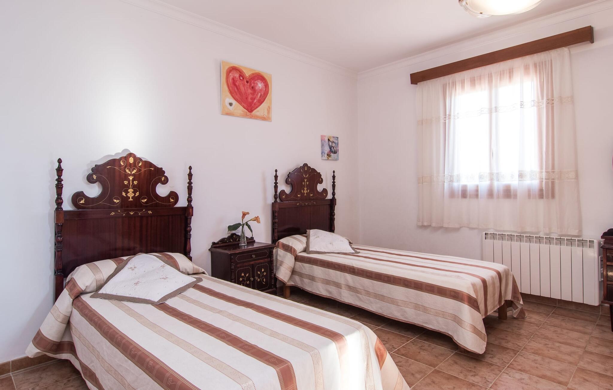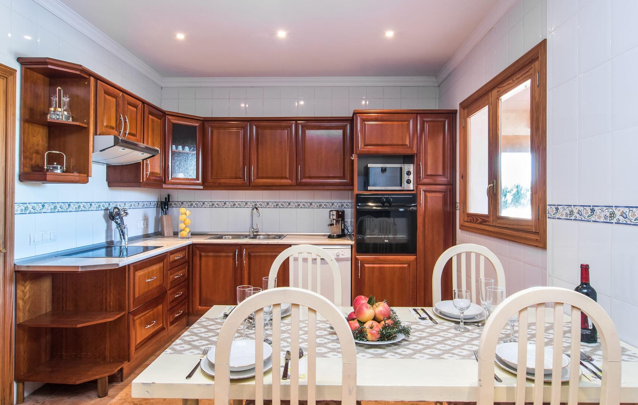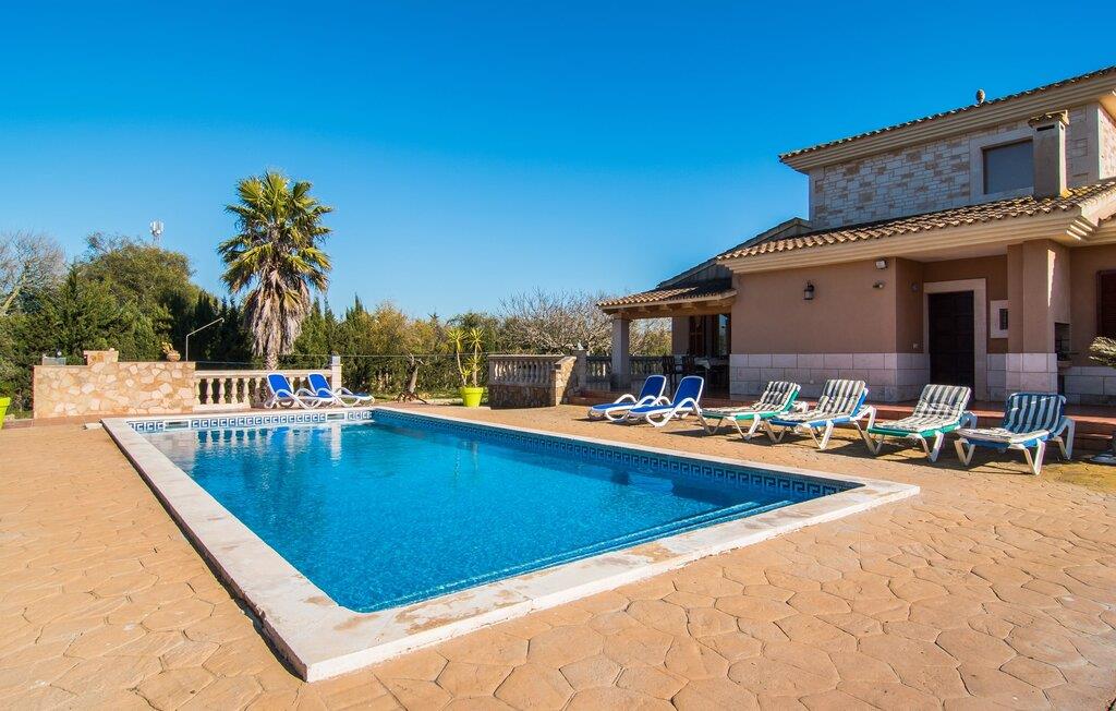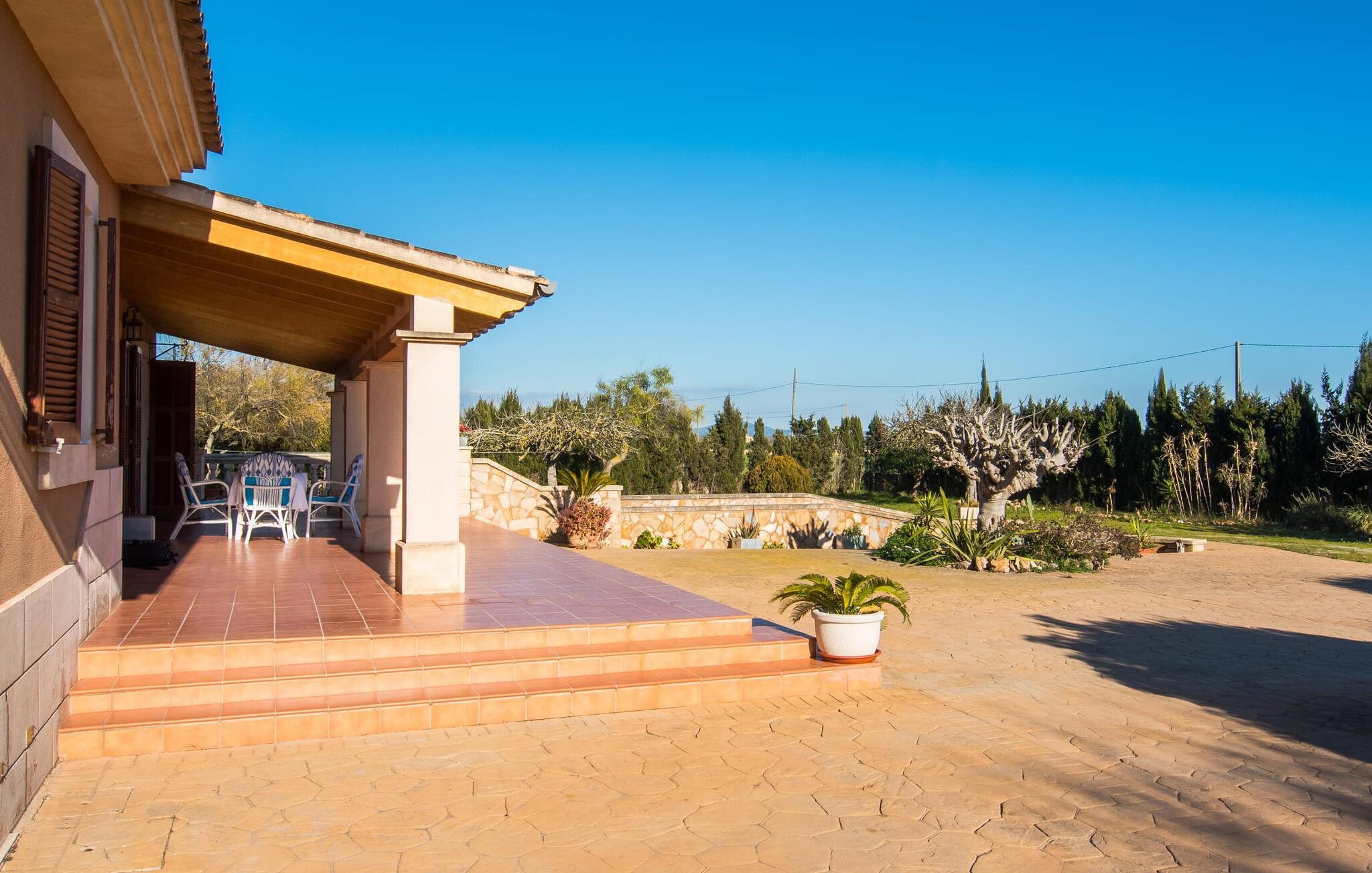 Komfortabelt, rummeligt og omgivet af smukt middelhavslandskab: det lyder som et fabelagtigt feriehus, ikke? Især hvis I værdsætter en rolig, landlig beliggenhed med masser af privatliv. Villaen "Sa Gravera de Sa Barrala" ligger på en rummelig ejendom med en smukt anlagt have på den sydlige del af øen. Familier med børn vil føle sig særligt godt tilpas her: Plænerne giver plads til at lege, og poolen ved huset inviterer jer til at plaske rundt og svømme. Forældre kan holde øje med deres små fra den overdækkede terrasse. Eller fra en af liggestolene, der er sat op omkring det kølige vand. Motion gør jer sulten: Grillen hjælper jer med at tilberede alle slags lækkerier, som I kan nyde ved spisebordet med udsigt til haven og poolen. Der er også et opholdsområde på en anden overdækket terrasse foran huset, ideel til en kop kaffe på ethvert tidspunkt af dagen. Hvis I vil slikke solen, kan I tage til tagterrassen ovenpå. Villaens indre er lyst og venligt. Hvide og enkelte solgule vægge sikrer sammen med mange små loftslamper og store vinduer en sommerlig lethed, der gennemsyrer hele huset. Møbleringen er en blanding af praktiske, moderne og traditionelt-rustikke elementer, så I straks vil føle jer hjemme. I stueetagen er der det rummelige indgangsparti og stuen med en kæmpe sofa og glasbord: perfekt til hyggelige tv-aftener med lækre snacks! Alternativt kan I sætte jer til et måltid sammen ved træspisebordet ved siden af, som giver god plads til de retter, der tilberedes i køkkenet. Så snart I er mæt og træt, kan I blot trække jer tilbage til et af de tre dobbeltværelser i stueetagen eller til det andet dobbeltværelse på øverste etage. Alle værelser har kunstfærdigt designede enkelt- eller dobbeltsenge i træ. Boligkomforten afrundes af tre moderne badeværelser, to af dem i stueetagen og et en-suite badeværelse på første sal. I kan udforske området omkring jeres hus til fods eller på cykel: det typiske landskab i det sydlige Mallorca er overvejende landbrugsmæssigt og udstråler en særlig fred og sindsro. Dette afspejles også i de omkringliggende byer. Campos, som kun ligger 9,3 km væk og kan nås med lejebil via vejen, som kan høres afhængigt af vindretningen, er et godt eksempel på denne regions afslappede livsstil. Området omkring byen er hovedsageligt fokuseret på husdyrbrug, kapersdyrkning og osteproduktion. Gå ikke glip af lokale delikatesser i de fremragende restauranter, tapasbarer og caféer. Romantiske gyder, stenhuse, kirker – der er ikke meget andet at se i Campos, men hvis I lader jer indhylle i atmosfæren væk fra turistmasserne, lader stedet intet tilbage at ønske. For en dag på stranden skal I blot køre 4 km til sandstranden Ses Covetes eller bugten Es Freu de Ses Covetes - begge er beliggende i et smukt klitlandskab. Et rummeligt feriehus på en rummelig grund, med egen pool lige foran døren, omgivet af et typisk middelhavslandskab: Dette er villaen "Sa Gravera de Sa Barrala", beliggende nær Ses Covetes. De overdækkede terrassearealer foran og bag huset byder på masser af plads til at sidde, hygge og slappe af - og på øverste etage giver en tagterrasse en fantastisk udsigt over det omkringliggende område. Strandene i Ses Covetes, kun 4 km væk, kan nemt nås med udlejningsbil.