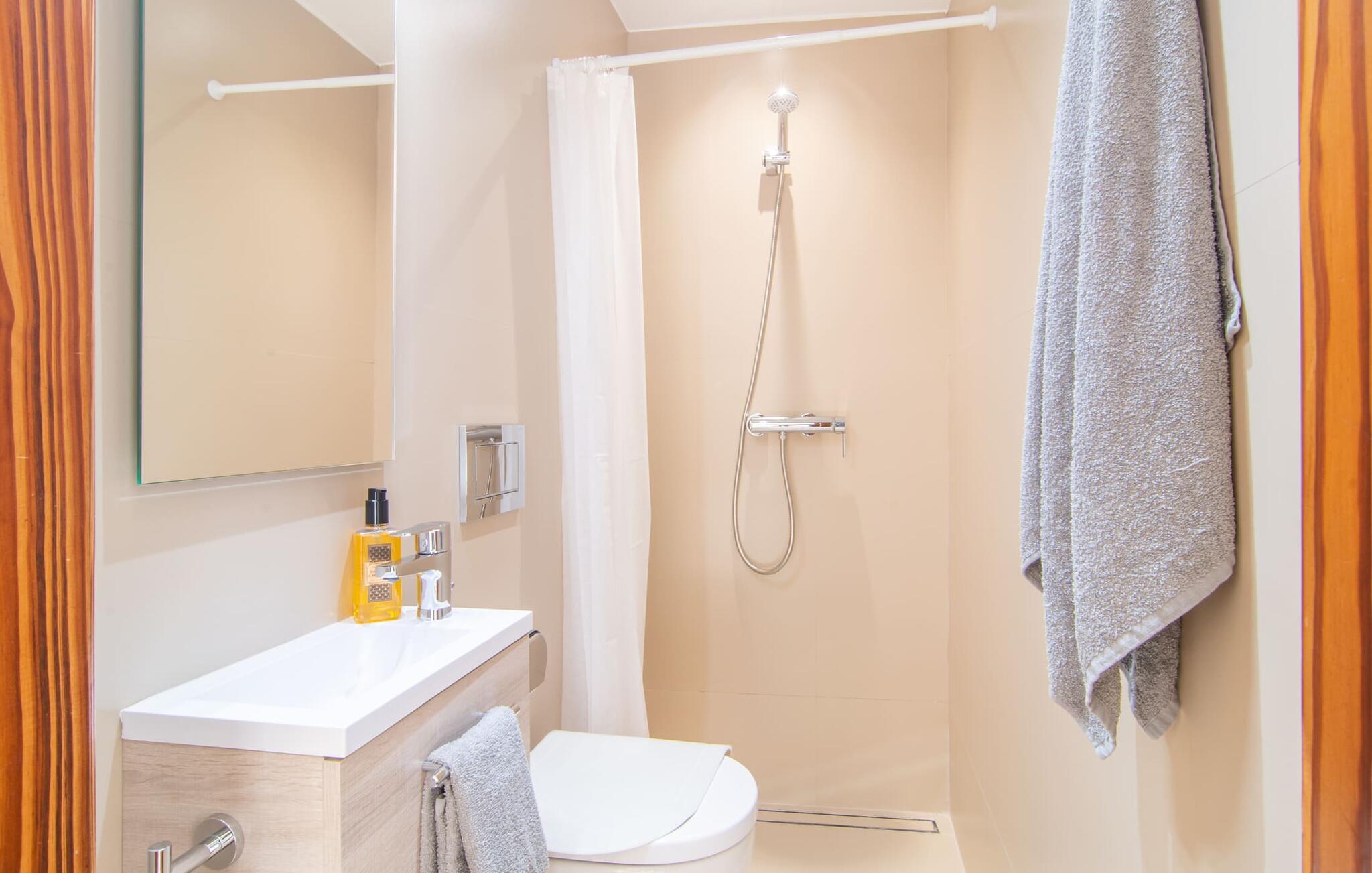 Badeværelse (nr. 1) - WC. Varmt og koldt vand. Bruser