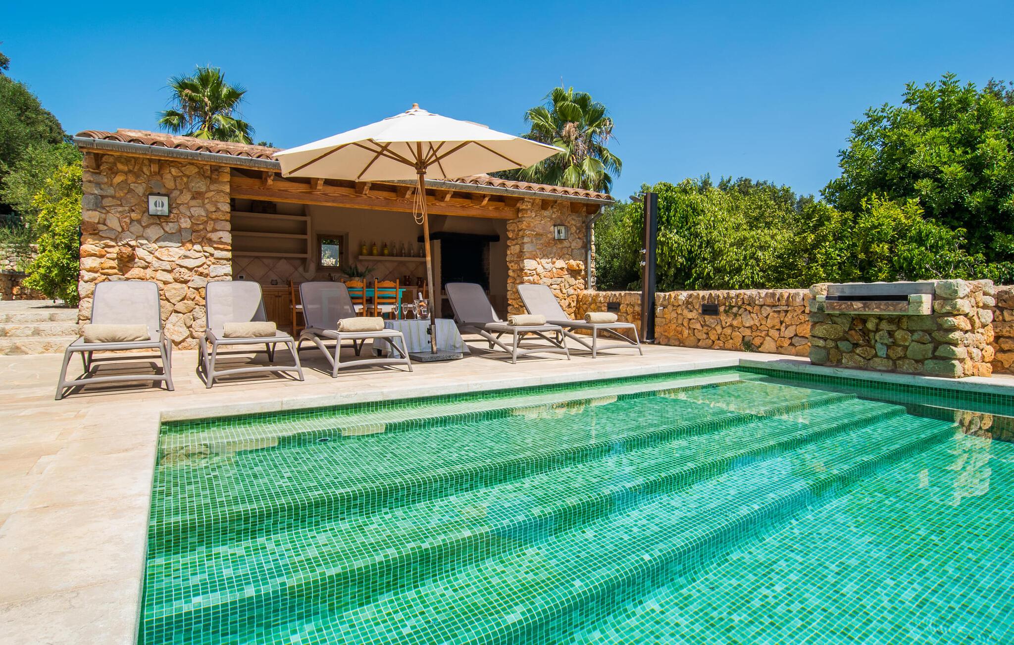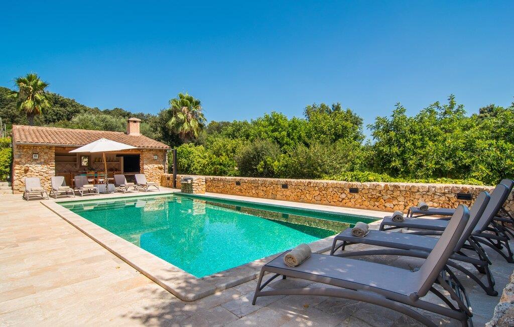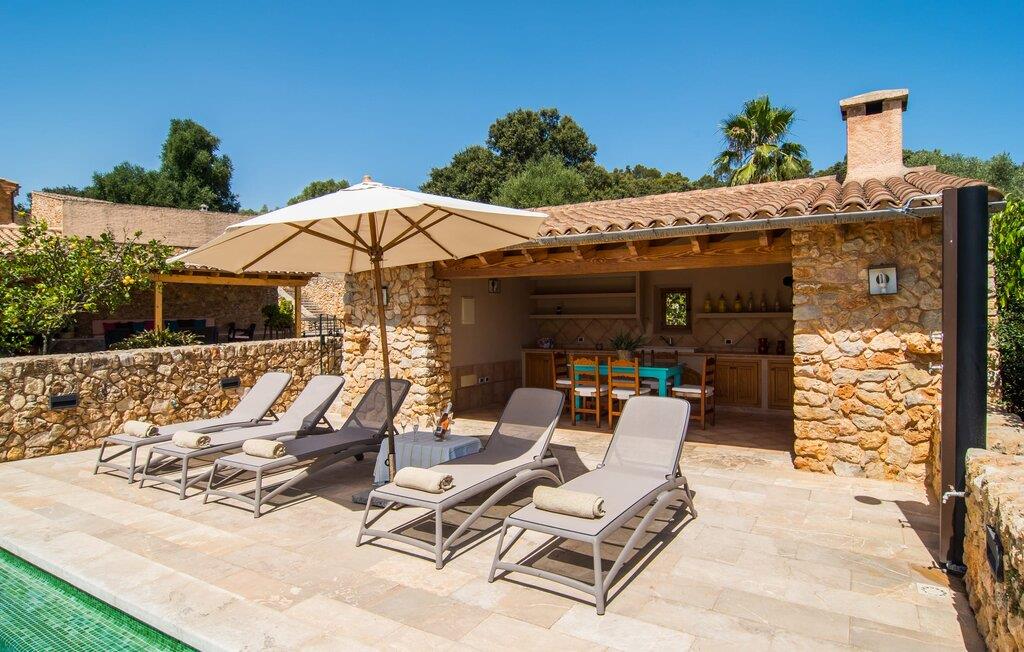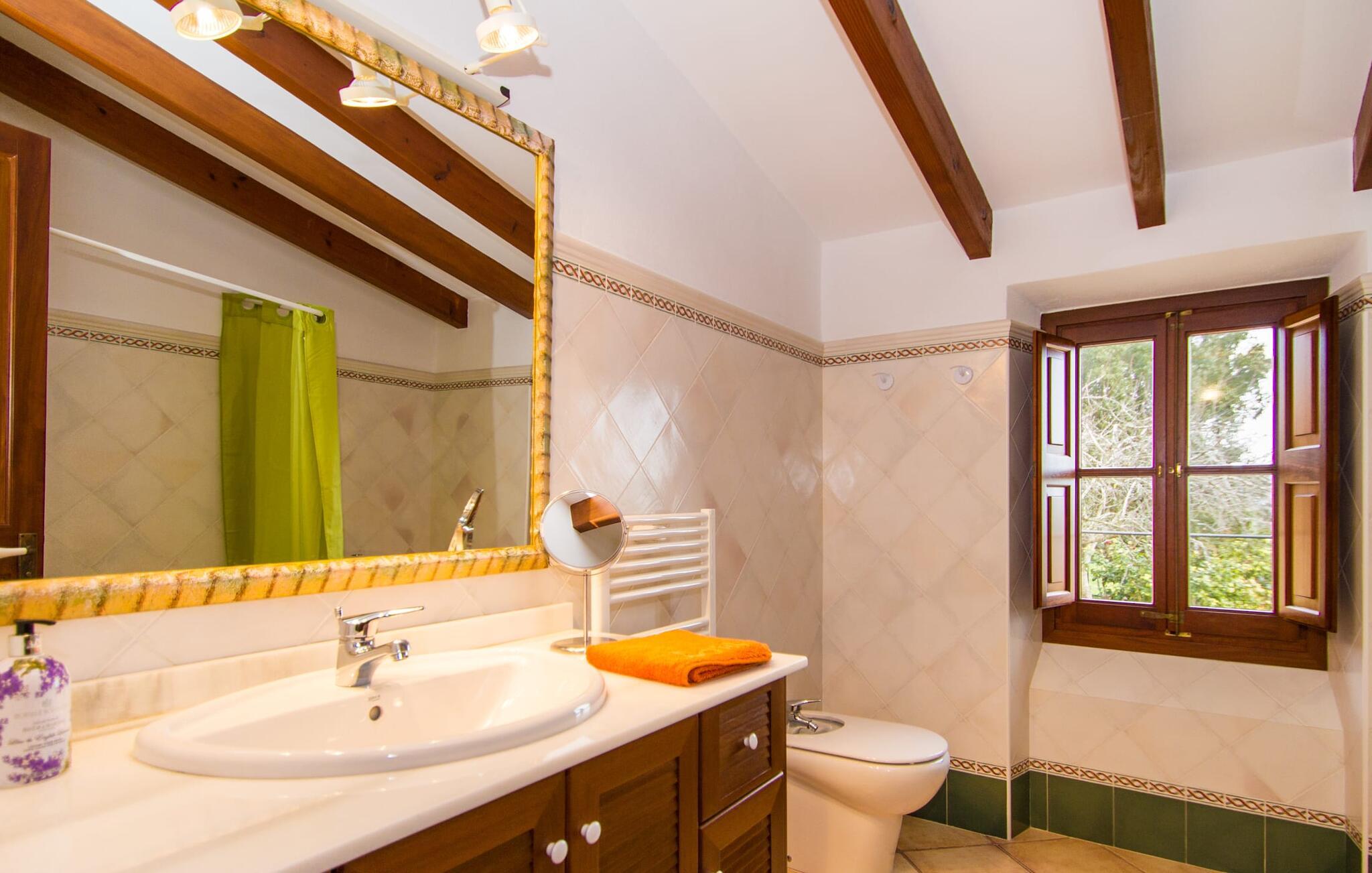 Beliggende på en stille bjergskråning tilbyder den smukt restaurerede finca "Sa Mata Grossa" en betagende udsigt over den anlagte ejendom og det omkringliggende landskab. Villaens arkitektoniske design blander sig problemfrit med omgivelserne og har natursten, bambusmarkiser og flere udendørs siddepladser. Den børnesikre saltvandspool med generøs trinadgang er omgivet af frodige grønne områder og suppleres af en solterrasse med liggestole samt et udendørs køkken og grillplads, perfekt til gruppesammenkomster. Indvendigt åbner det rummelige køkken med stort spisebord ud i en hyggelig stue med antik charme. Villaen har fem komfortable soveværelser, fire badeværelser og aircondition. Med adskillige områder til afslapning og underholdende, både indendørs og udendørs, er denne villa ideel til familier eller grupper, der søger privatliv, komfort og et strejf af tradition. Denne villa ligger vidunderligt afsondret i den nordlige del af øen mellem Búger, med sine små supermarjets, barer og restauranter, og Sa Pobla. Om søndagen kan I besøge det ugentlige marked i Sa Pobla. De populære strande i Alcúdia-bugten, herunder Can Picafort og Platja de Muro, ligger kun en kort køretur derfra. Bemærk venligst, at denne ejendom ikke accepterer ungdomsgrupper eller polterabender. En ungdomsgruppe på denne ejendom består af personer under 25 år. Book ikke denne ejendom, hvis I er en ungdomsgruppe eller polterabend, da jeres reservation vil blive afvist, når den er booket, hvilket kan være ved ankomsten til ejendommen eller under jeres ophold, og I vil ikke modtage en refusion.