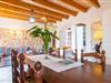 Mallorca, finca, land, sydvendt, pool – er det jeres nøgleord, når I leder efter et sommerhus? Så er fincaen “Sa Mata Marina” et hit i flere henseender! Ikke alene opfylder den alle disse søgekriterier, men den giver også en god portion komfort og charme. Det rustikke hus med naturstensfacade passer perfekt ind i det maleriske landskab og har en frodig grund, der umiddelbart fremkalder en følelse af komfort og velvære. Den efterspurgte forfriskning på varme dage sikres ikke kun af indbydende åbne og overdækkede afslapningsområder, men også af en smuk, lavvandet pool, der nemt kan nås via trapper. Naturlig skygge, en parasol eller direkte under middelhavshimlen - på plænen omkring den 10 m lange pool er I forkælet med valg. Lige ved siden af appelsintræet på terrassen er et hyggeligt sted at spise sammen - med en smuk udsigt over det grønne. Afstandene ind til huset er praktisk talt korte, så opsætning og afdækning kan klares på ingen tid. Murstensgrillen står til rådighed til solide grillaftener med overdådige middelhavsdelikatesser. Fincaens hyggelige interiør er ret uhøjtideligt. Naturstenselementer fortsætter behageligt her, harmonisk arrangeret med synlige bjælkelofter, terracottafarvede fliser og lyse vægge. Imponerende: den brede buede passage mellem stue og spisestue. Der er også flere komfortable siddepladser indeni, hvor I kan slappe af. Det smukke store spisebord er ideelt til indendørs spisning, og det fuldt udstyrede køkken med murstenselementer er lige ved siden af. Et praktisk opbevaringsrum med vaskemaskine og et badeværelse er også i stueetagen, de tre soveværelser - to med enkeltsenge på hver 0,90 x 2,10 m, et med en dobbeltseng på 2 x 2,20 m - og et andet badeværelse er på jorden sal har til huse på øverste etage. Godt 2 km fra den lille landsby Campanet ved foden af Serra de Tramuntana tilbyder den rustikke, charmerende finca "Sa Mata Marina" op til seks gæster en afslappet ferie på Mallorca. Afhængig af vinden kan den nærliggende vej, som forbinder jer perfekt i alle retninger, være akustisk mærkbar. Når I har opdaget Campanet og besøgt det ugentlige marked der, skal I køre til Sa Pobla (10 minutter) og sno jer gennem den gamle bydel med dens caféer, restauranter og butikker. De nærmeste strande, herunder den lange bugt Alcúdia, ligger omkring 16 km væk.