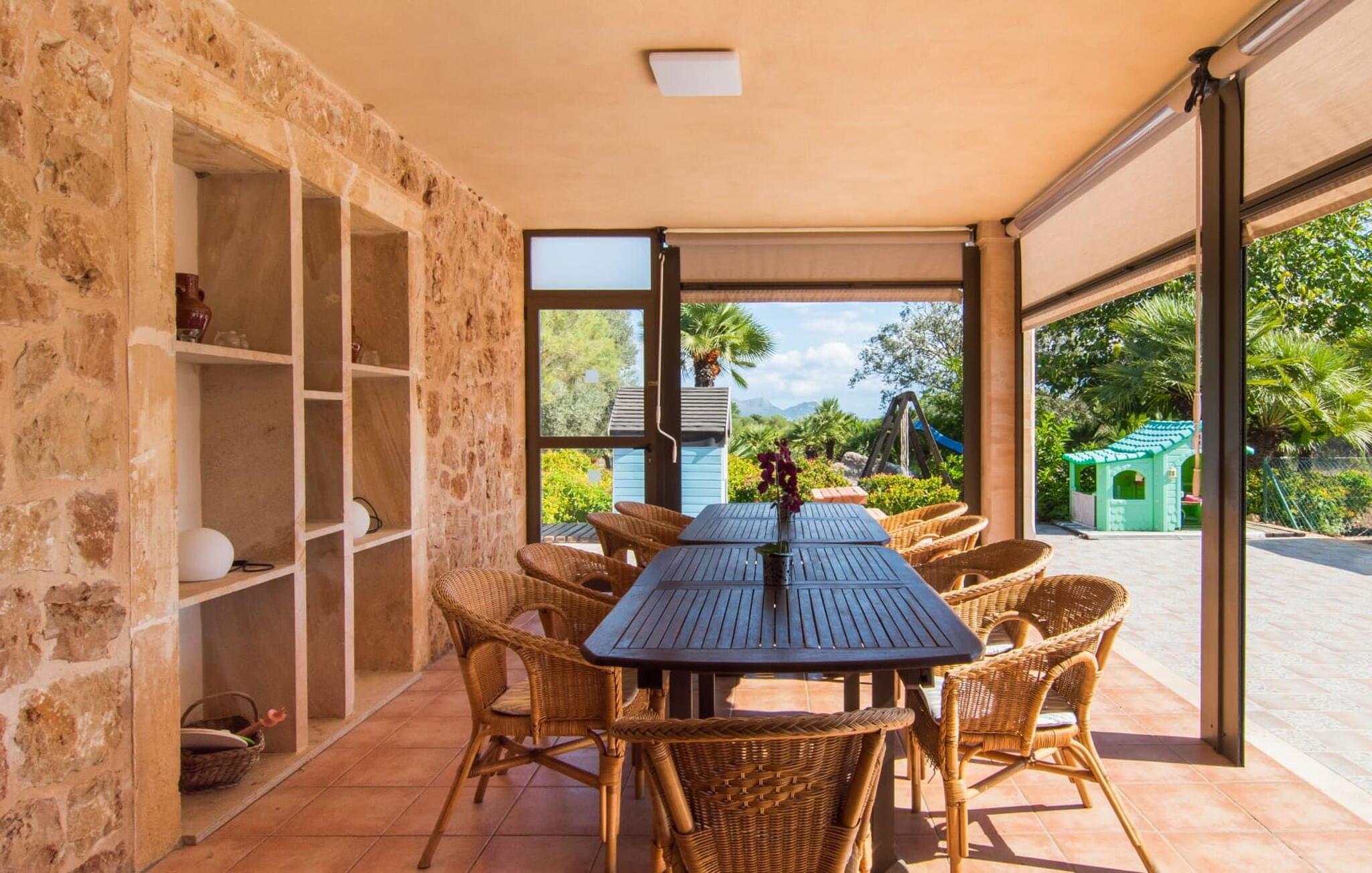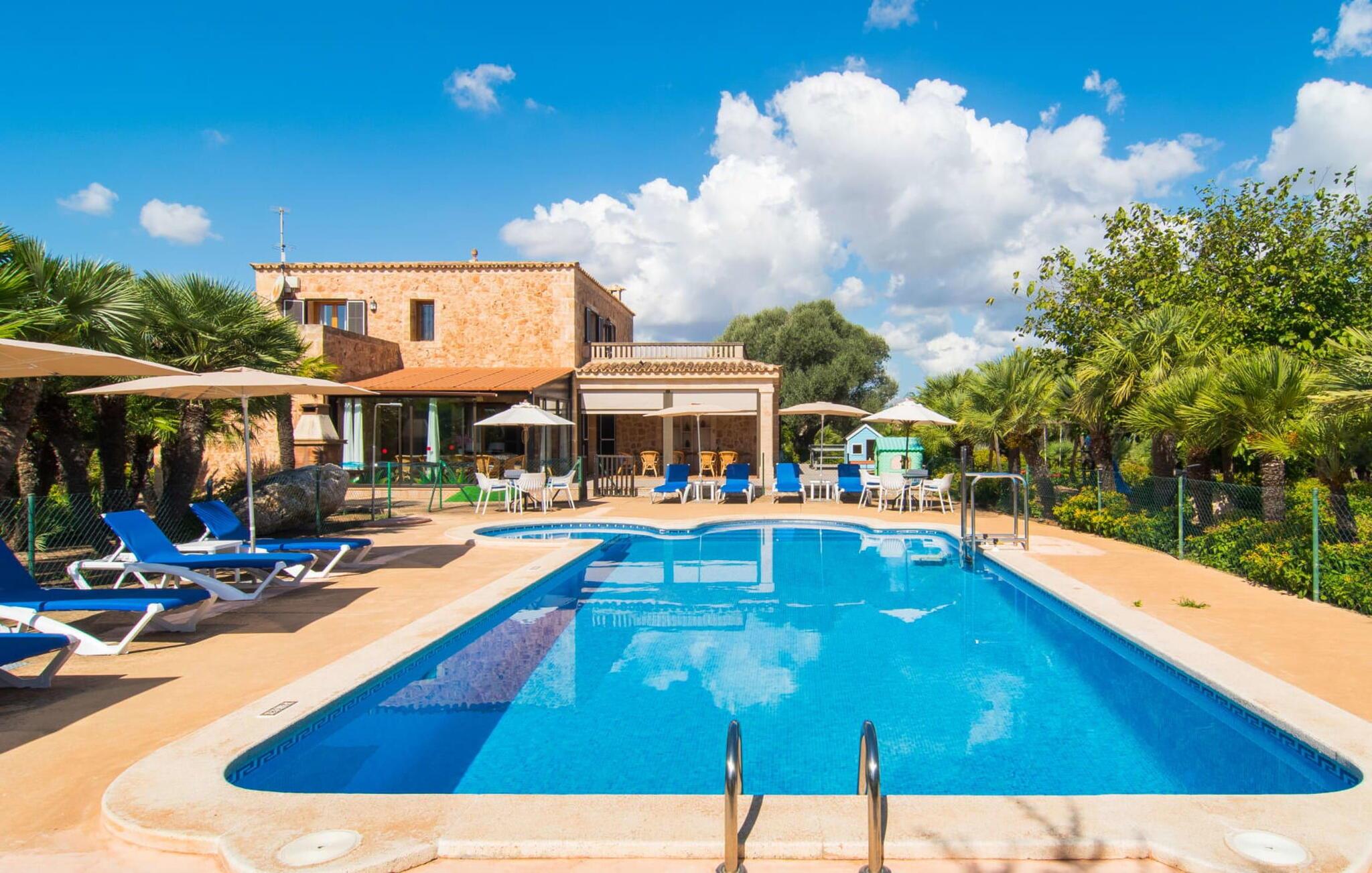 Beliggende midt i en frodig palmehave fanger naturstensvillaen "Sa Palmaria" essensen af den mallorcanske stil. Dette er et feriehus i Fincallorca. De rummelige terrasser, som er grupperet omkring en ren pool, flyder problemfrit ind i den luftige vinterhave. Nyd en afslappet morgenmad ved langbordet, slap af i skyggen på lune eftermiddage eller forkæl dig selv med en grillaften på den fantastiske terrasse. For familier er poolen forsvarligt indhegnet med stiger, og der er en stolelift for nem adgang. Indvendigt oversvømmer store vinduer villaen med naturligt lys, og de åbne planløsninger og det fuldt udstyrede køkken giver en lys, indbydende atmosfære. Der er fem soveværelser med dobbeltsenge og fire badeværelser, herunder et soveværelse i stueetagen, som er særligt rummeligt, med et king-size badeværelse og ekstra brede døråbninger. Denne villa er det perfekte feriehus for alle. Den rummelige finca "Sa Palmaria" ligger kun 2 km fra de smukke strande i Alcúdia-bugten, cirka i samme højde som "Son Baulo". Can Picafort kan nås på få minutter i bil, så du hurtigt kan klare dine daglige indkøb. Vi anser denne bolig for at være tilgængelig for vores gæster med nedsat mobilitet, men vi opfordrer alle gæster til at tjekke boligens egnethed ud fra deres egne behov. Bemærk venligst, at denne ejendom ikke accepterer ungdomsgrupper eller polterabender. En ungdomsgruppe på denne ejendom består af personer under 25 år. Book ikke denne ejendom, hvis du er en ungdomsgruppe eller polterabend, da din reservation vil blive afvist, når den er booket, hvilket kan være ved ankomsten til ejendommen eller under dit ophold, og du vil ikke modtage en refusion.