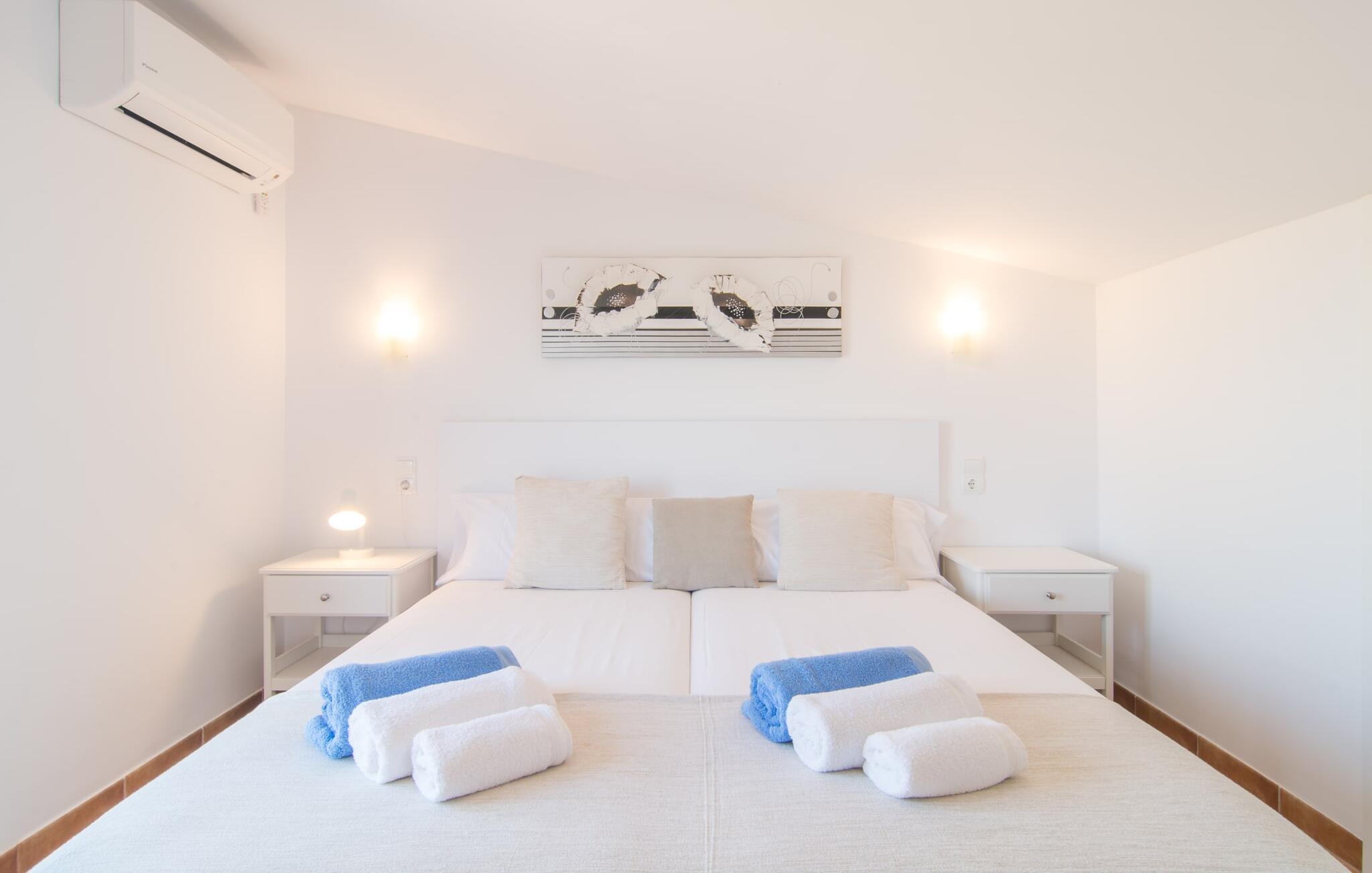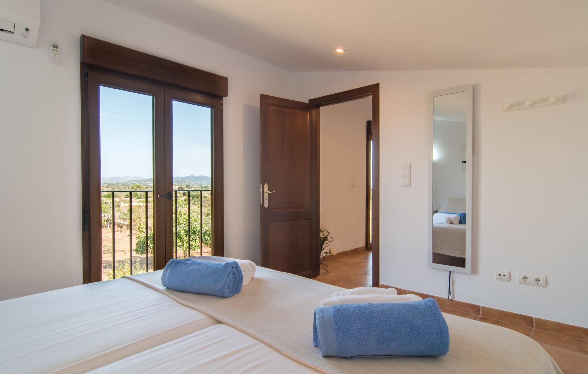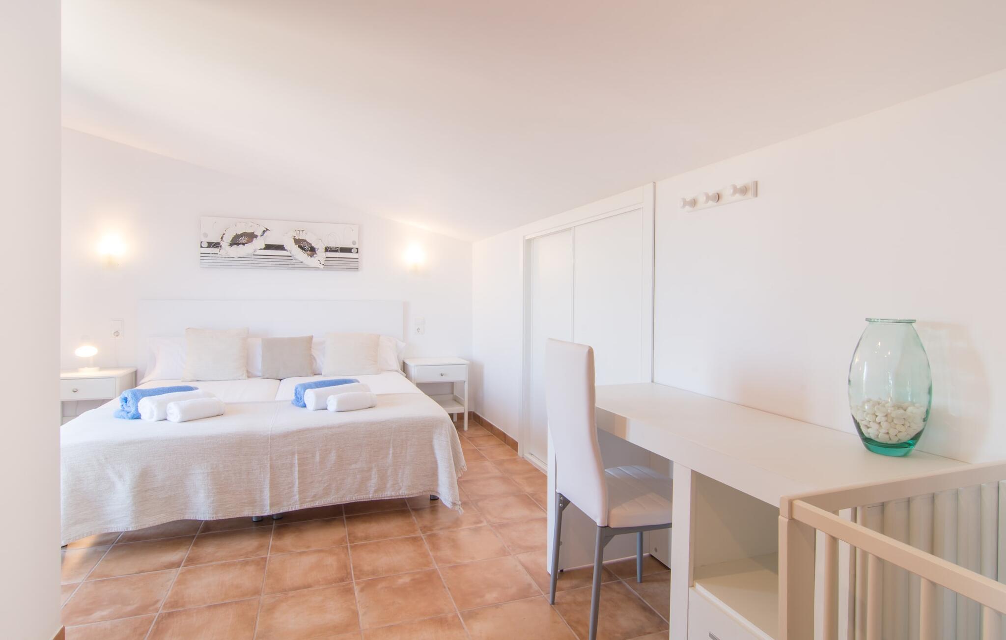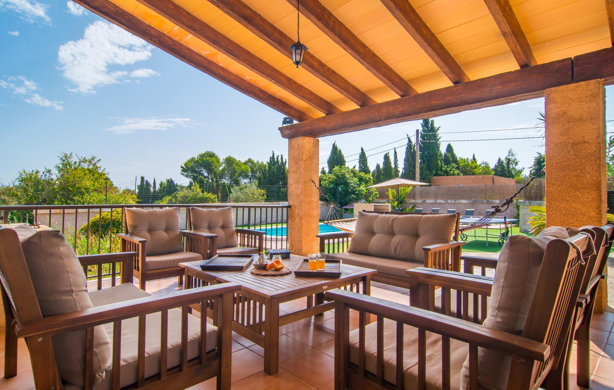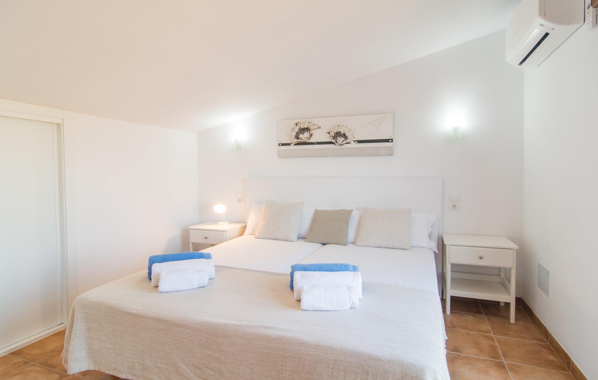 Villaen "Sa Pedrera d'es Turó" er en oase tæt på havet og byder på en masse variation på østkysten. Det gælder også for selve villaen: Det rummelige udendørsareal lokker jer til at tilbringe tidløse, solrige eftermiddage med en vidunderlig forfriskende pool. Omgivet af frodigt grønt kunstgræs kan I efter at have plasket rundt gøre jer godt tilpas på en af de komfortable liggestole, indtil den varme brise tørrer jeres solbeskinnede hud, og I måske får lyst til at spille bordtennis. Den overdækkede verandaterrasse byder på en hængekøje, en gyngestol, en verandagynge og et afslappende opholdsområde - attraktive steder at slappe af i den afslappende ro. Der er også en indbygget grill til jeres rådighed, så I kan bruge meget tid i den friske luft. Selve huset er smukt og komfortabelt indrettet. Et rustikt værelse med accent af mørke trætoner er udstyret med et sofahjørne, hvorfra I kan se en film sidst på dagen. Der er også et spisebord og, noget adskilt, et fremragende udstyret køkken med gaskomfur, så jeres opvaske bliver helt rigtige. Udover et badeværelse med et luksuriøst badekar byder stueetagen på et soveværelse med dobbeltseng. De yderligere to soveværelser med dobbeltsenge er placeret på øverste etage og har hver en børneseng, så unge familier vil finde ideelle ferieforhold i villaen. Der er også et badeværelse på denne etage. Diskrete kunstværker på væggene skaber en behagelig, behagelig atmosfære i hele huset. I kan blot snuppe en af cyklerne ved Villa "Sa Pedrera d'es Turó" for at køre de 1,5 km til Porto Cristo. Fra den smukke promenade er skuet af lystyachter og sejlbåde, der kommer og går, fascinerende at se. Der er en vej i nærheden af villaen, som nogle gange kan høres, men som giver god adgang til infrastruktur. I kan hurtigt nå smukke, fine sandstrande, hvoraf de fleste har en lavvandet indgang til havet, så familier kan tilbringe dejlige dage ved vandet. Manacor, 13 km væk, er en glimrende mulighed, hvis I ønsker at tilbringe en dag med shopping og caféer. I kan selvfølgelig også køre til øens hovedstad Palma, en time væk. Den søde villa "Sa Pedrera d'es Turó" er kun en kilometer væk fra en strand, og Porto Cristo, 2 km væk, lover maritim flair på jeres ferie. Her kan I slentre langs havnepromenaden og planlægge, hvilken af de attraktive østkyststrande, I gerne vil besøge næste gang. Om søndagen vækker det farverige ugentlige marked på Passeig de la Sirena opsigt.