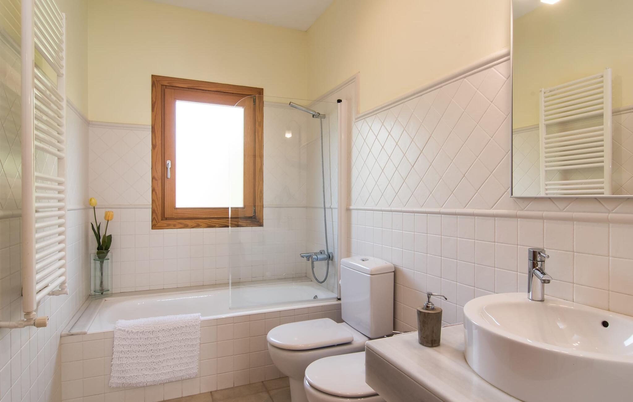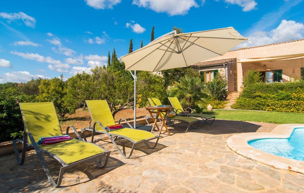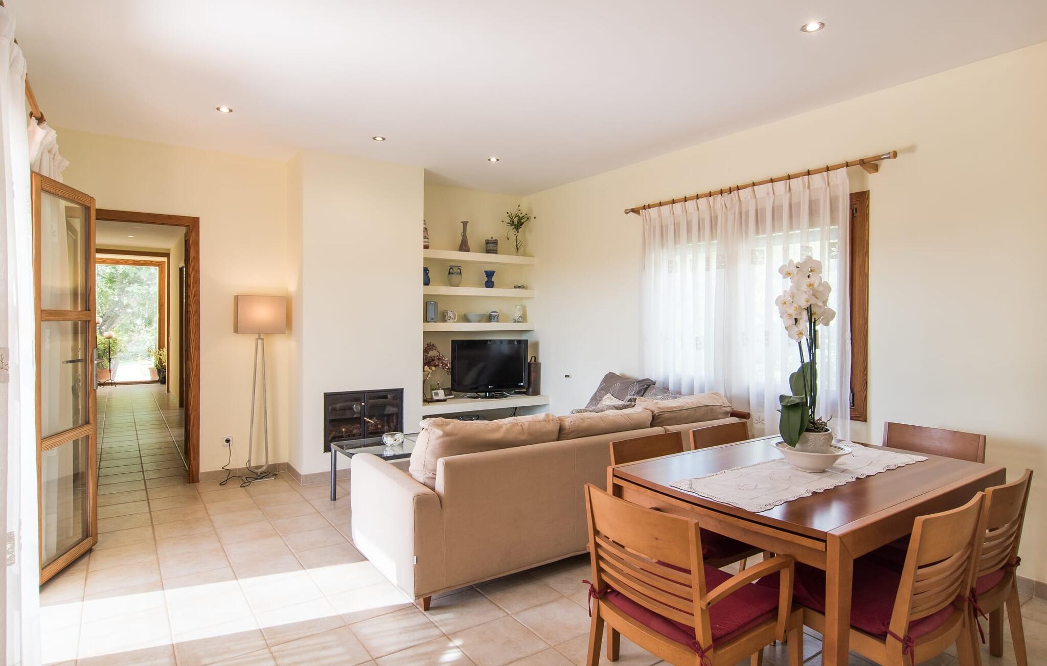 "Sa Plana de Ses Roques" vil overbevise jer på ingen tid. Med sin fortryllende beliggenhed garanterer det smukke landsted familievenlig komfort og en jordnær forbindelse. Dette er igen den perfekte symbiose af livet på landet med et strejf af urban flair og en knivspids havluft. I kan også nyde vandsjov på ejendommen, da en skrånende pool omgivet af stenmure er indlejret i den frodige grønne græsplæne og byder på en række muligheder for en siesta på en af liggestolene (også med parasol hvis det ønskes). Hængekøjen under de gamle træer inviterer jer også til at slappe af. En smuk have omkranser huset og skaber en særlig privat atmosfære - cypresser, palmer, oliventræer, citrustræer og johannesbrødtræer præger ikke kun strukturen i dette usædvanligt velholdte kompleks, men giver også skygge på de forskellige siddemuligheder på flere terrasser. Fra villaen har I udsigt til hele floraens pragt - herunder fra den forteltoverdækkede veranda med spiseplads. Det er et glimrende supplement til det fuldt udstyrede køkken, som giver direkte adgang til både udearealet og spisestuen. Det betyder, at I kan vælge, hvor I vil spise jeres måltider ud fra jeres personlige præferencer. Murstensgrillen understøtter selvstændigheden af selvforsyning og sikrer variation i daglige måltider. I den kombinerede stue og spisestue sørger en pejs indbygget i væggen for komfort på køligere aftener. Men blot gennem brugen af træ og moderne, lyse landstedstilbehør udstråler denne fortryllende villa en hyggelig atmosfære. Dette ukomplicerede drømmehus er ideelt for hele familien, ikke kun på grund af den lave lejepris; Soveværelsesindretningen er også perfekt til voksne og børn. Tre vidunderlige afslapningsværelser tilbyder jer den højeste kvalitet af ophold. De to moderne badeværelser har hver et badekar eller bruser. Alle værelser er indrettet i ét plan, hvilket også kan anbefales, når man rejser med bedsteforældre. I den nordøstlige region kan I nyde en betagende udsigt - og det refererer ikke kun til udsigten til en afslappende ferie, men også til områdets geografiske karakter, præget af foden af de blidt bølgende Llevant-bjerge. Udover små byer med restauranter, caféer og butikker, der dækker alle jeres daglige behov, kan I også opdage adskillige kystbyer som Costa des los Pinos eller Cala Bona. Når I går en tur ved vandet, føler I automatisk, at I er på ferie. Golfspillere vil få noget for pengene her, da der er tre udsøgte golfbaner i nærheden. Cykling, vandretur langs kysten eller udforske de omkringliggende byer - I bestemmer selv, hvordan jeres dag skal se ud, og fra tid til anden kan I bare følge strømmen. Dette inkluderer helt sikkert muligheden for at nyde en dag ved poolen i haveparadiset "Sa Plana de Ses Roques". Det smukke landsted "Sa Plana des Ses Roques" med sin smukt anlagte middelhavshave ligger i en vidunderlig, afsondret beliggenhed mellem Son Servera og den nordøstlige kyst. I kan gøre jeres indkøb i de små byer Port Verd, Son Servera eller Cala Millor, alle kun få minutter væk i bil. Stranden Sa Marjal, også kaldet Costa des los Pinos, ligger kun 1,6 km væk. I kan nemt nå det til fods.