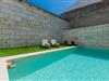 Privat udendørs tilflugtssted Slap af i din egen private oase med en glitrende klorpool (6,3 m x 2,7 m, dybde 1,35-1,7 m) omgivet af en frodig græsplæne og komfortable liggestole. Terrassen er perfekt til langsomme morgener eller solbeskinnede eftermiddage, mens den udendørs bruser og badeværelset ved poolen tilføjer ekstra bekvemmelighed. En skyggefuld terrasse indbyder til afslappede grillaftener, aftensamtaler eller blot en stille stund med en bog, hvilket gør udendørsrummene lige så indbydende som interiøret. Rummelig og komfortabel stue Træd indenfor til et varmt mallorcansk hjem, hvor tradition møder praktisk. Stuen med satellit-tv og aircondition flyder gennem en bred bue ind i spisepladsen og et generøst køkken udstyret med en gaskomfur i industriel stil, rigelig bordplads og siddepladser til familiens måltider. Med tre soveværelser med aircondition - to dobbeltværelser og et med to enkeltsenge - plus en barneseng og høj stol efter anmodning, passer villaen både par og familier. To badeværelser, vaskefaciliteter og centralvarme sikrer komfort og lethed året rundt. Autentisk landsbyatmosfære Beliggende i hjertet af Sa Pobla, ligger dette hjem kun få skridt fra livlige pladser, lokale butikker og caféer, der serverer traditionelle tapas. Søndage bringer det ugentlige marked, fyldt med friske råvarer og håndværksvarer. Playa de Muros gyldne sand er kun 11 km væk, mens golfspillere kan tage til Alcanada Golf inden for 20 km. Med en togstation i nærheden og Alcúdias havn kun en kort køretur, er det nemt at udforske øen.