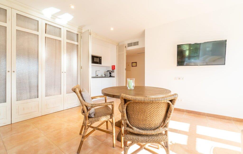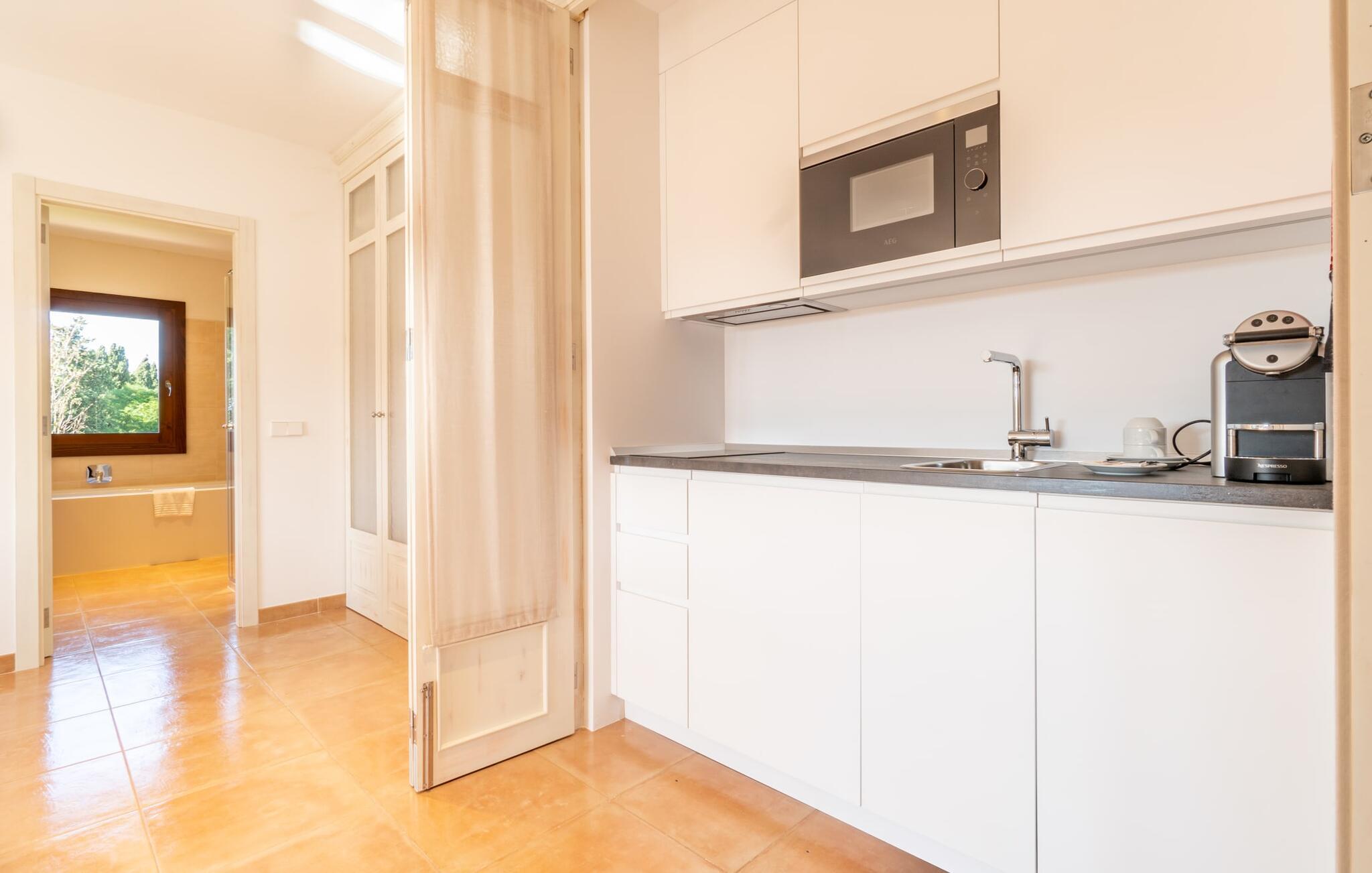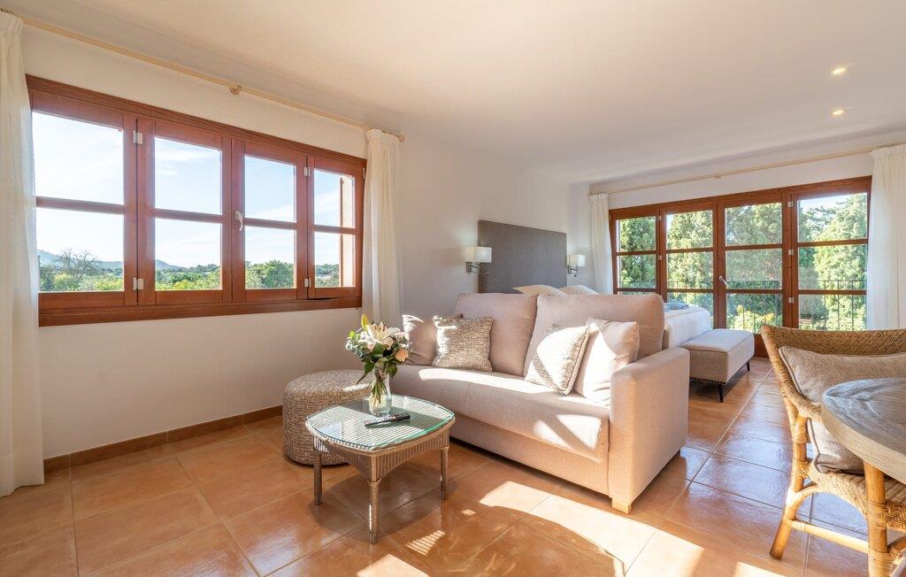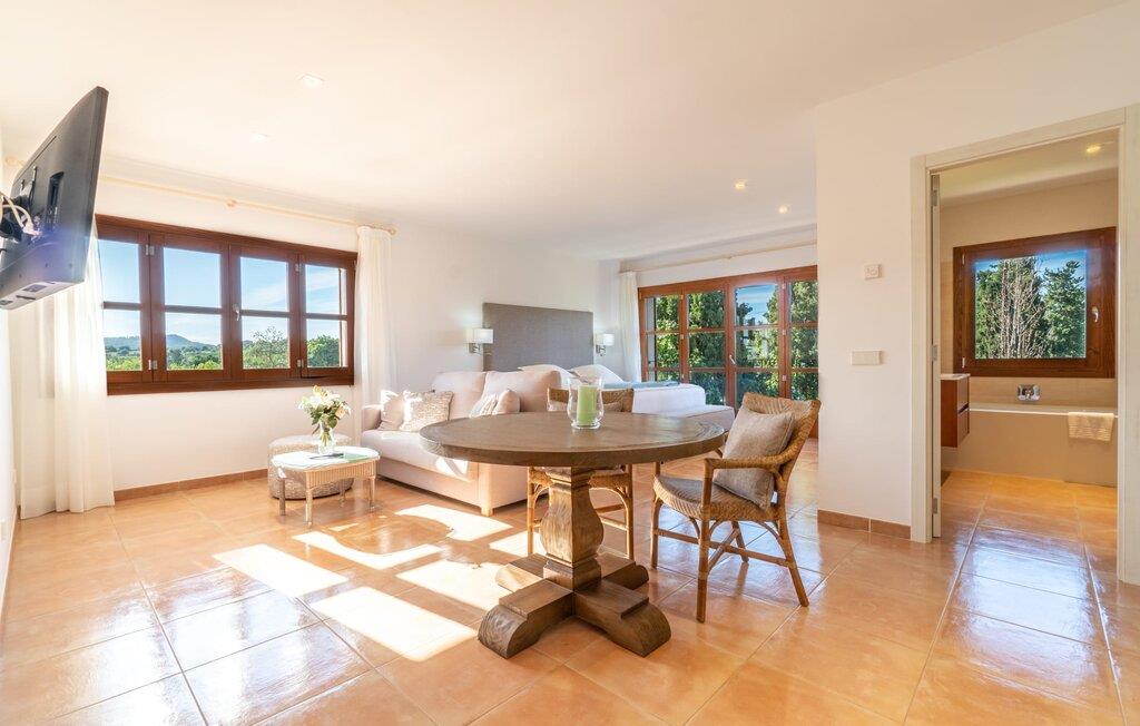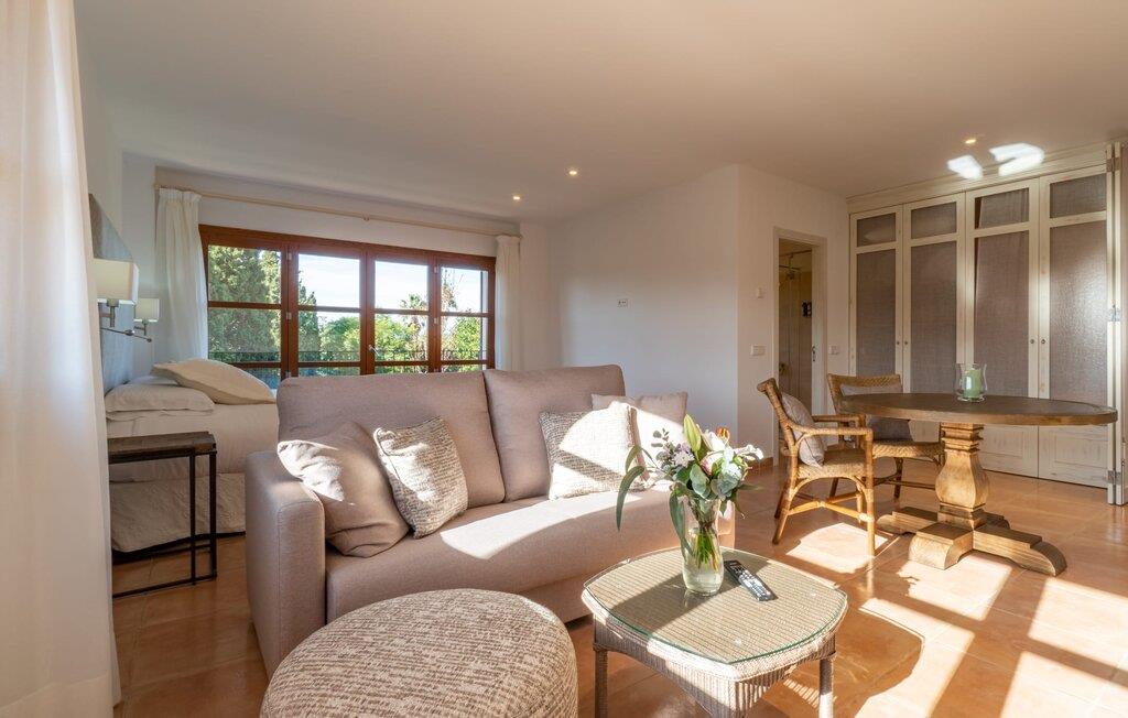 En unik ro omgiver ejendommen, hvor lejligheden "Sa Posada d'Aumallia 31" ligger. Græsplæner, små stier og mange middelhavsplanter, herunder århundredgamle træer, præger området og giver altid luftig, naturlig skygge. Forskellige områder inviterer jer til at tilbringe afslappende timer udendørs: komfortable liggestole, lounge, spisebord og hyggelige siddepladser. Fra alle steder kan I nyde en vidunderlig udsigt over landskabet. Den 18 meter lange pool, som er omgivet af prydplanter og områder til solbadning, lover en behagelig forfriskning. Hvis I kan lide sport, kan I bruge tennisbanen eller fitnesscentret. Til wellness-øjeblikke er der en omfattende spa med sauna og tyrkisk bad. I kan også bruge et alsidigt mødelokale efter aftale. Den rummelige lejlighed med en stor fransk altan imponerer med sin klassiske elegance. En hyggelig opholdsstue med en komfortabel sovesofa, tv og spisebord samt et moderne tekøkken og selvfølgelig en stor seng og et tilhørende badeværelse med badekar og bruser. Denne lejlighed i det sydlige Mallorca er ideel til et roligt wellness-ophold. Lejligheden "Sa Posada d'Aumallia 31" er en del af "Aumallia Hotel & Spa", et charmerende landhotel med en rolig beliggenhed. Det er tæt på Porto Colom og golfbanen Vall d'Or. Det store område fuld af flair er ideelt til en afslappende ferie på Mallorca. Porto Colom-stranden og de berømte Dragon Caves kan nås på 10 minutter i bil.