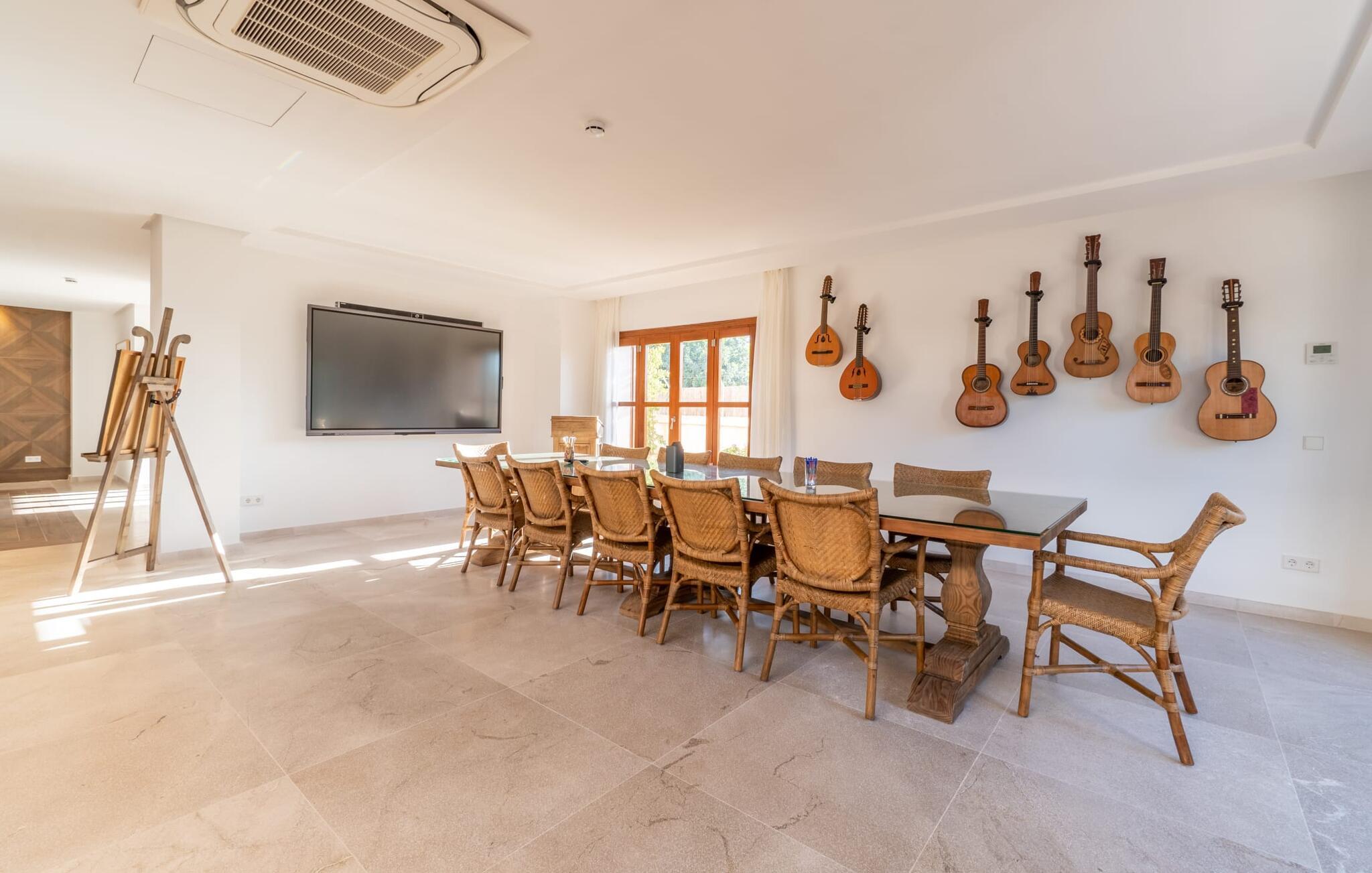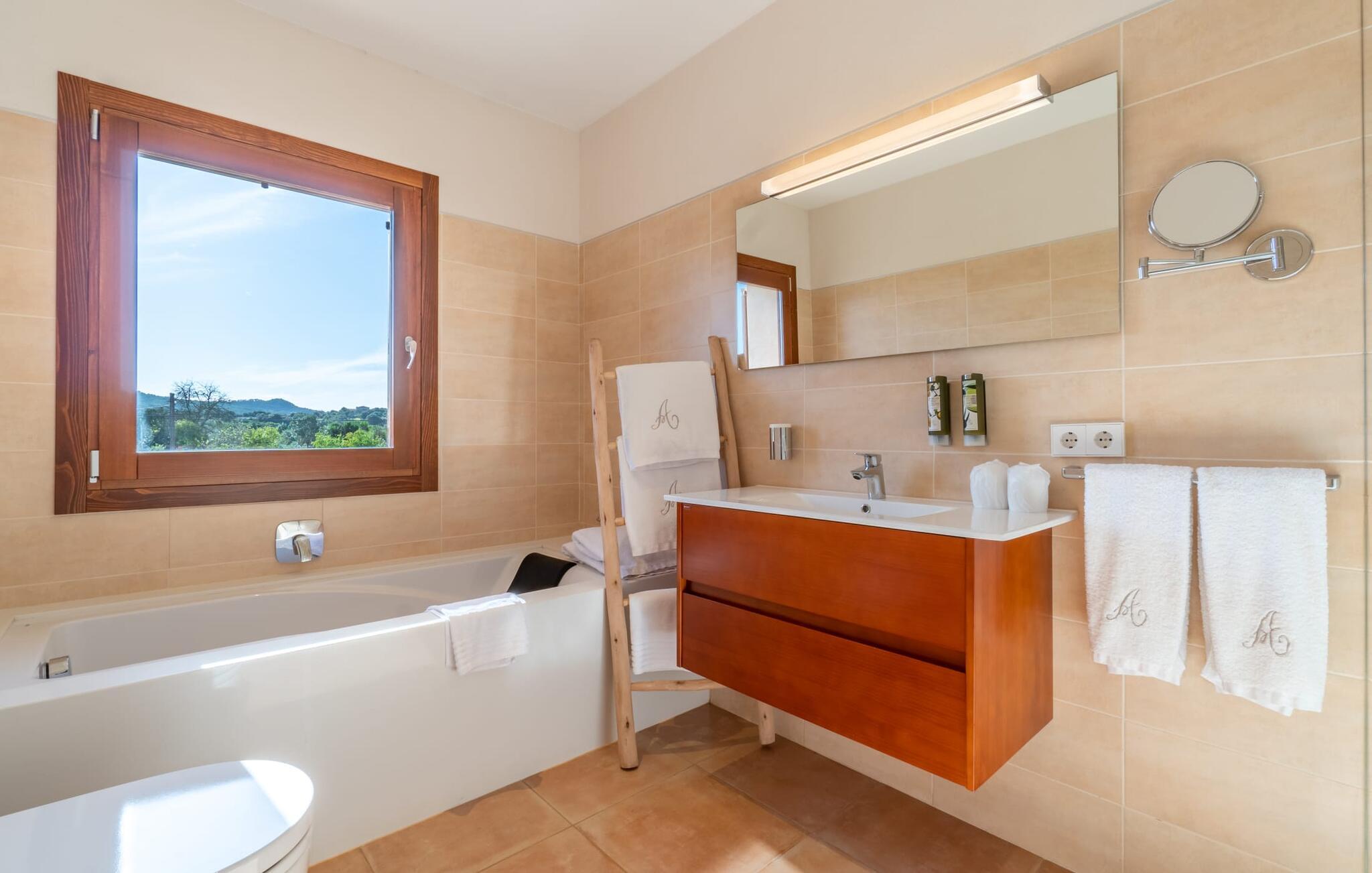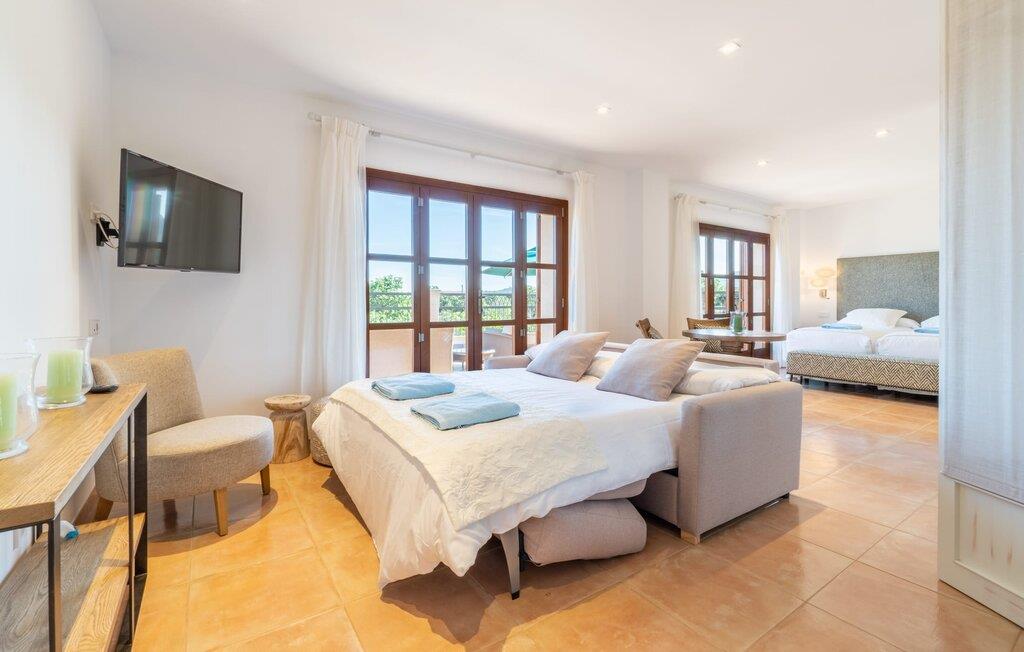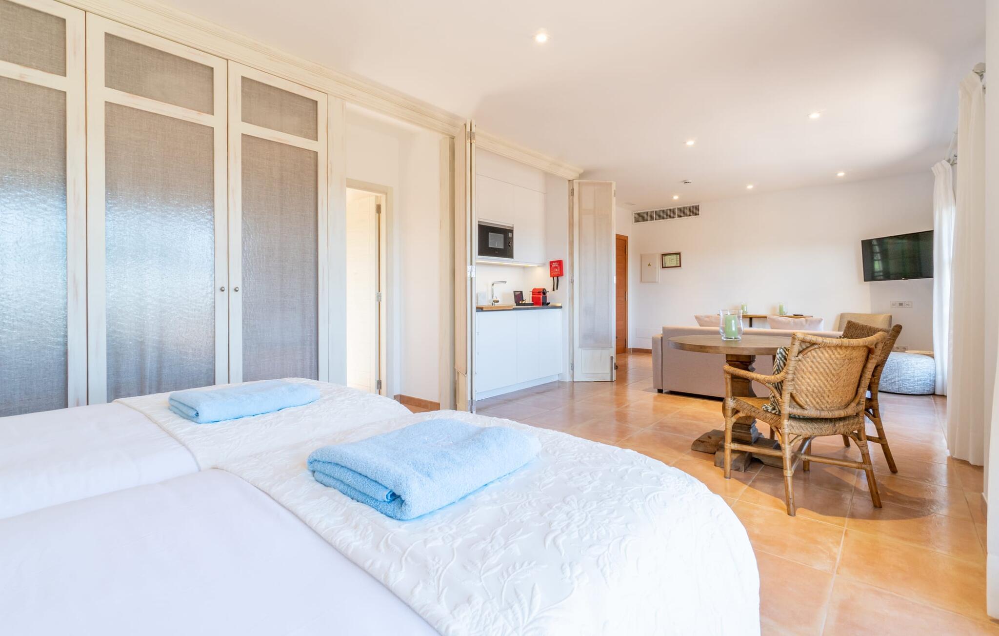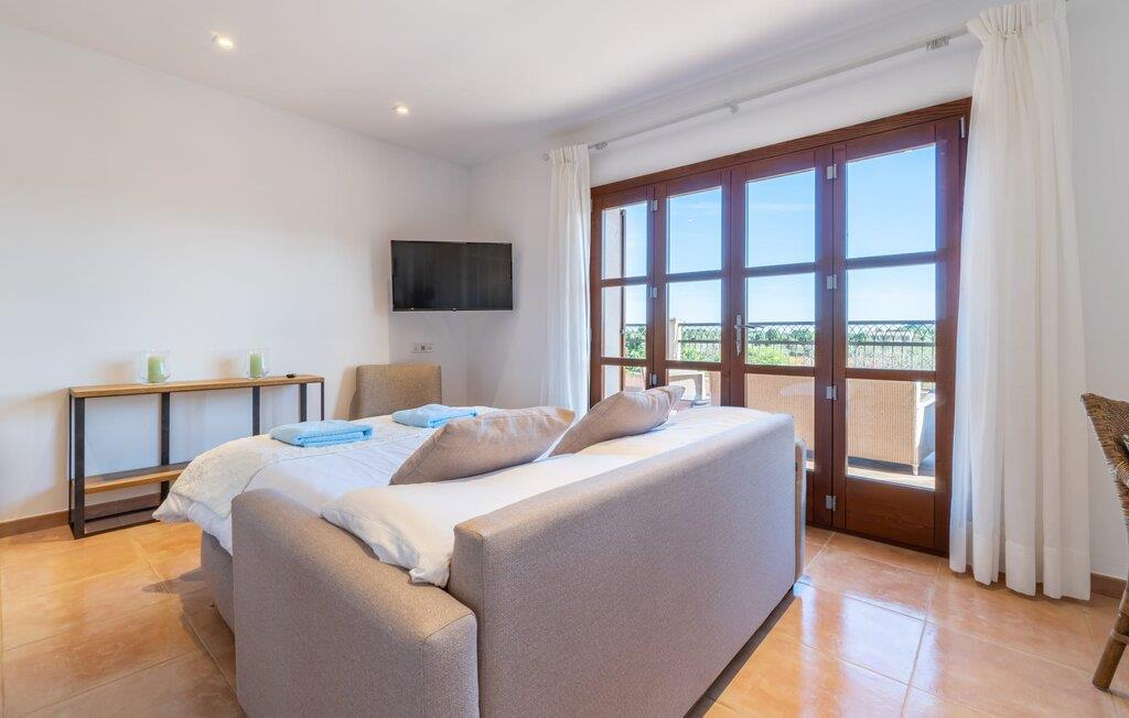 En unik ro omgiver ejendommen, hvor lejligheden "Sa Posada d'Aumallia 32" ligger. Græsplæner, små stier og mange middelhavsplanter, herunder århundredgamle træer, præger området og giver altid luftig, naturlig skygge. Forskellige områder inviterer jer til at tilbringe afslappende timer udendørs: komfortable liggestole, lounge, spisebord og hyggelige siddepladser. Fra alle steder kan I nyde en vidunderlig udsigt over landskabet. Den 18 meter lange pool, som er omgivet af prydplanter og solbadeområder, lover en behagelig forfriskning. Hvis I kan lide sport, kan I bruge tennisbanen eller fitnesscentret. Til wellness-øjeblikke er der en omfattende spa med sauna og tyrkisk bad. I kan også bruge et alsidigt mødelokale efter aftale. Den rummelige lejlighed med en stor panoramaterrasse imponerer med sin klassiske elegance. En hyggelig opholdsstue med en komfortabel sovesofa, tv og spisebord samt et moderne tekøkken og selvfølgelig en stor seng og et tilhørende badeværelse med badekar og bruser. Denne lejlighed i det sydlige Mallorca er ideel til et roligt wellness-ophold. Lejligheden "Sa Posada d'Aumallia 32" er en del af "Aumallia Hotel & Spa", et charmerende landhotel med en rolig beliggenhed. Det er tæt på Porto Colom og golfbanen Vall d'Or. Det store område fuld af flair er ideelt til en afslappende ferie på Mallorca. Porto Colom-stranden og de berømte Dragon Caves kan nås på 10 minutter i bil.