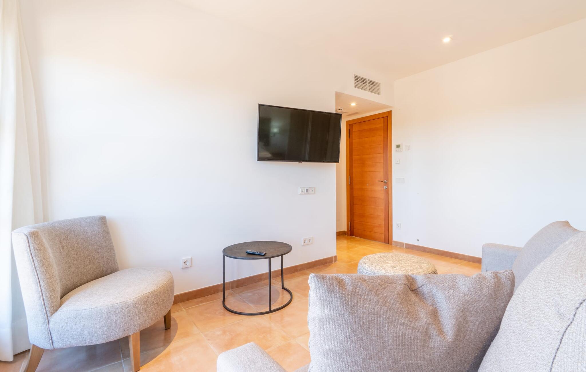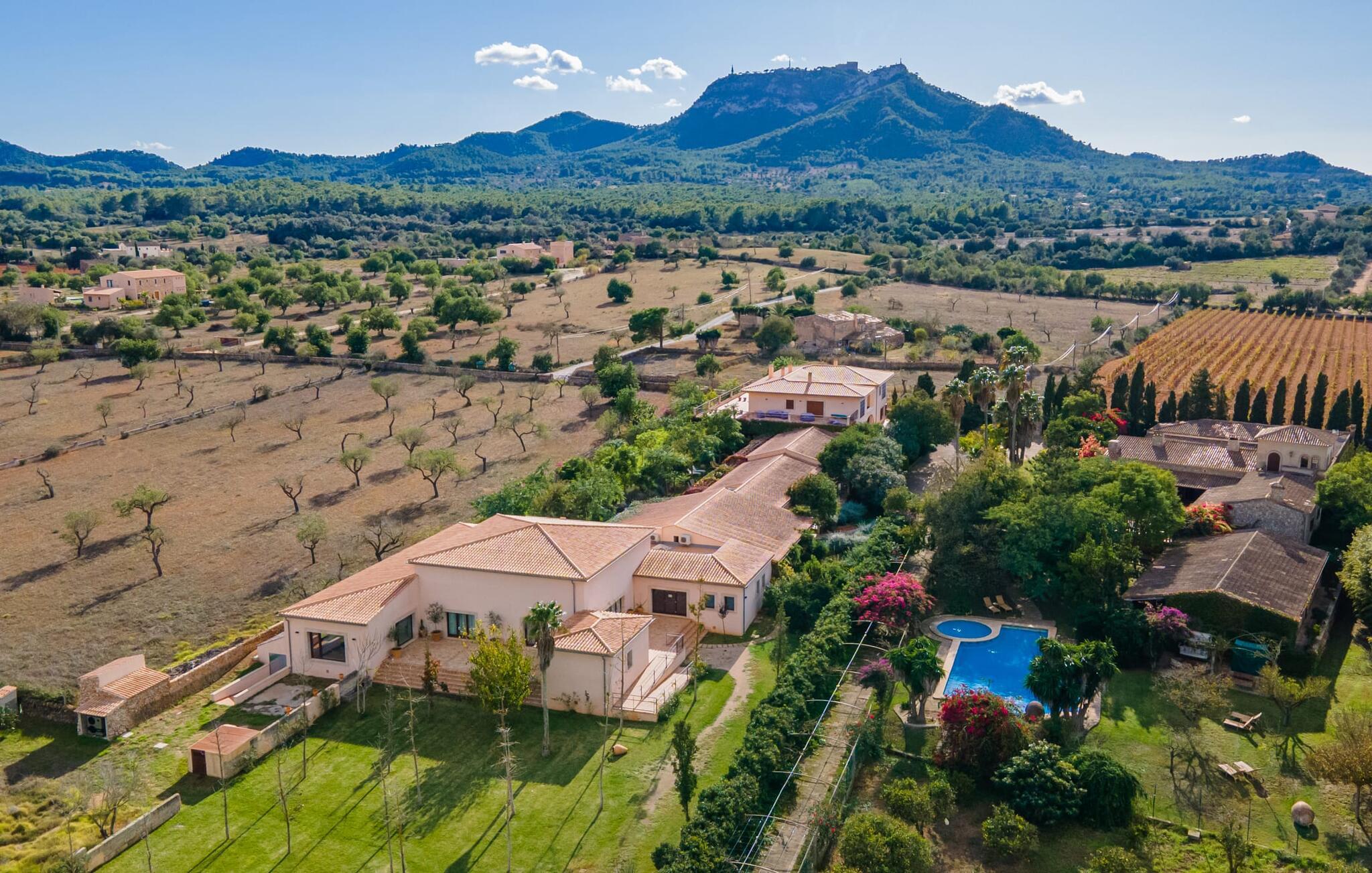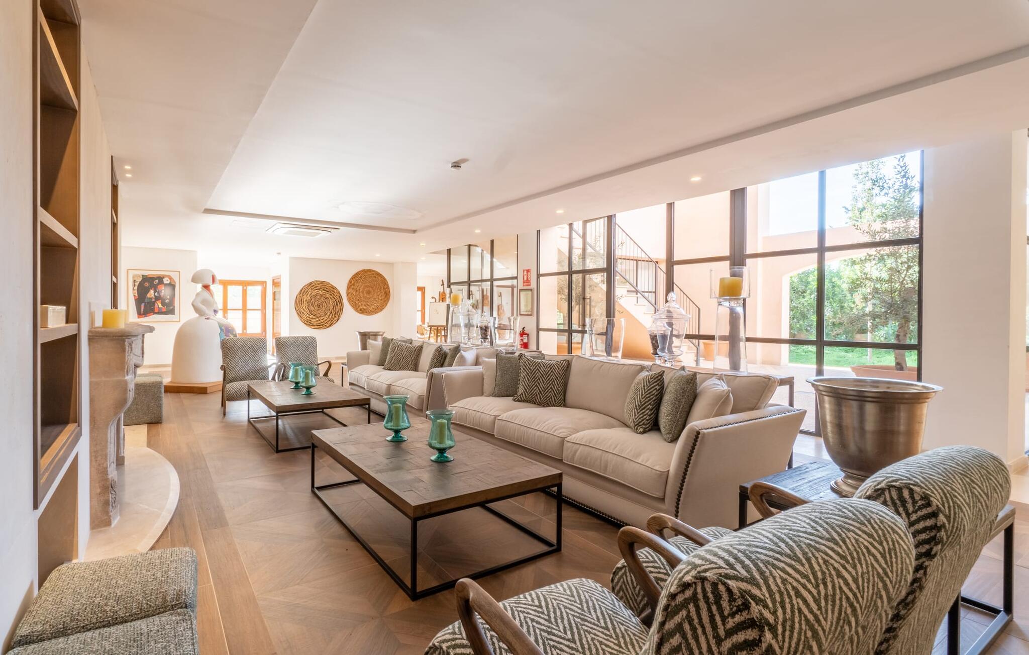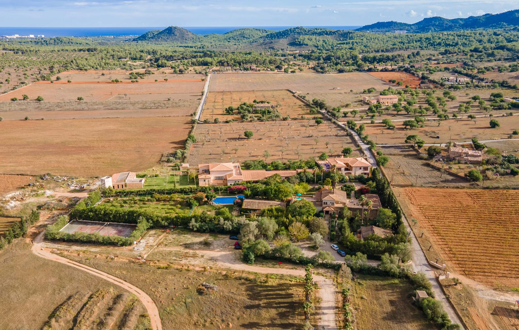 En unik ro omgiver ejendommen, hvor lejligheden "Sa Posada d'Aumallia 33" ligger. Græsplæner, små stier og mange middelhavsplanter, herunder århundredgamle træer, præger området og giver altid luftig, naturlig skygge. Forskellige områder inviterer jer til at tilbringe afslappende timer udendørs: komfortable liggestole, lounge, spisebord og hyggelige siddepladser. Fra alle steder kan I nyde en vidunderlig udsigt over landskabet. Den 18 meter lange pool, som er omgivet af prydplanter og solbadeområder, lover en behagelig forfriskning. Hvis I kan lide sport, kan I bruge tennisbanen eller fitnesscentret. Til wellness-øjeblikke er der en omfattende spa med sauna og tyrkisk bad. I kan også bruge et alsidigt mødelokale efter aftale. Den rummelige lejlighed med en stor panoramaterrasse imponerer med sin klassiske elegance. En hyggelig opholdsstue med en komfortabel sovesofa, tv og spisebord samt et moderne tekøkken og selvfølgelig en stor seng og et tilhørende badeværelse med badekar og bruser. Denne lejlighed i det sydlige Mallorca er ideel til et roligt wellness-ophold. Lejligheden "Sa Posada d'Aumallia 33" er en del af "Aumallia Hotel & Spa", et charmerende landhotel med en rolig beliggenhed. Det er tæt på Porto Colom og golfbanen Vall d'Or. Det store område fuld af flair er ideelt til en afslappende ferie på Mallorca. Porto Colom-stranden og de berømte Dragon Caves kan nås på 10 minutter i bil.