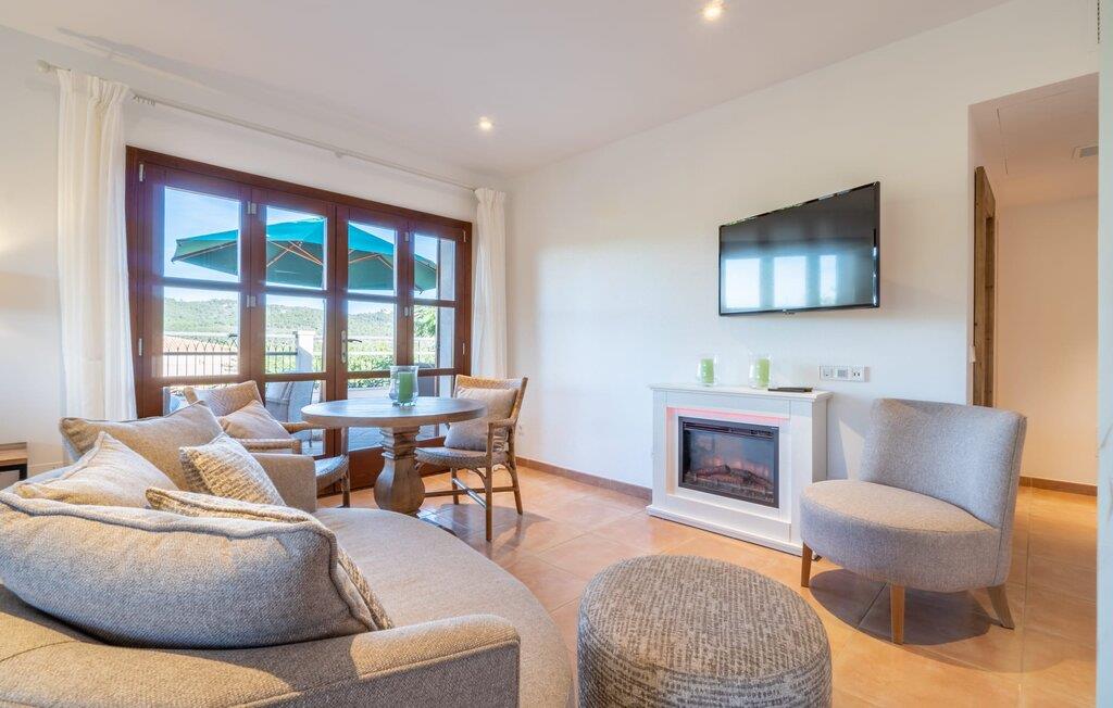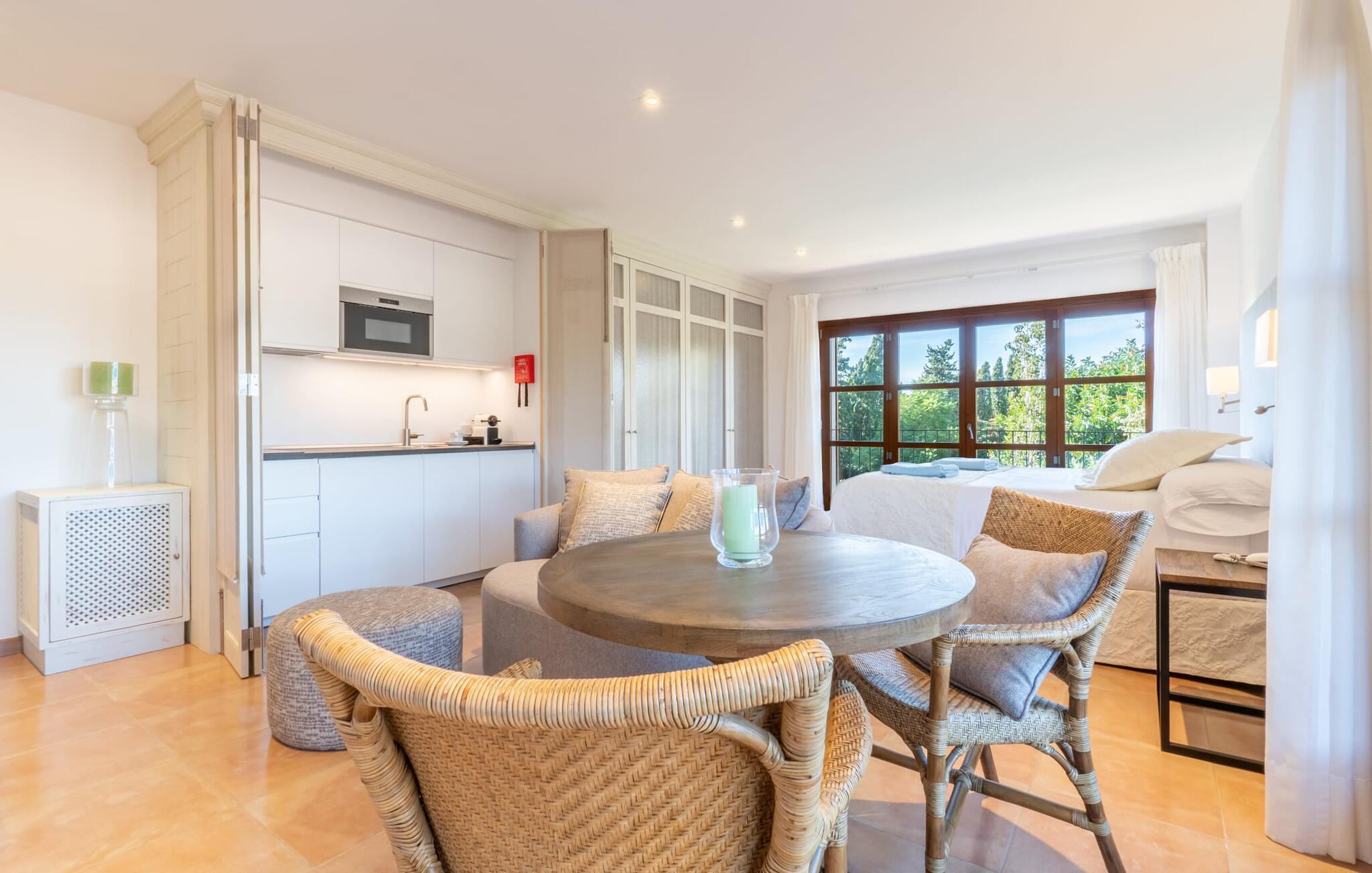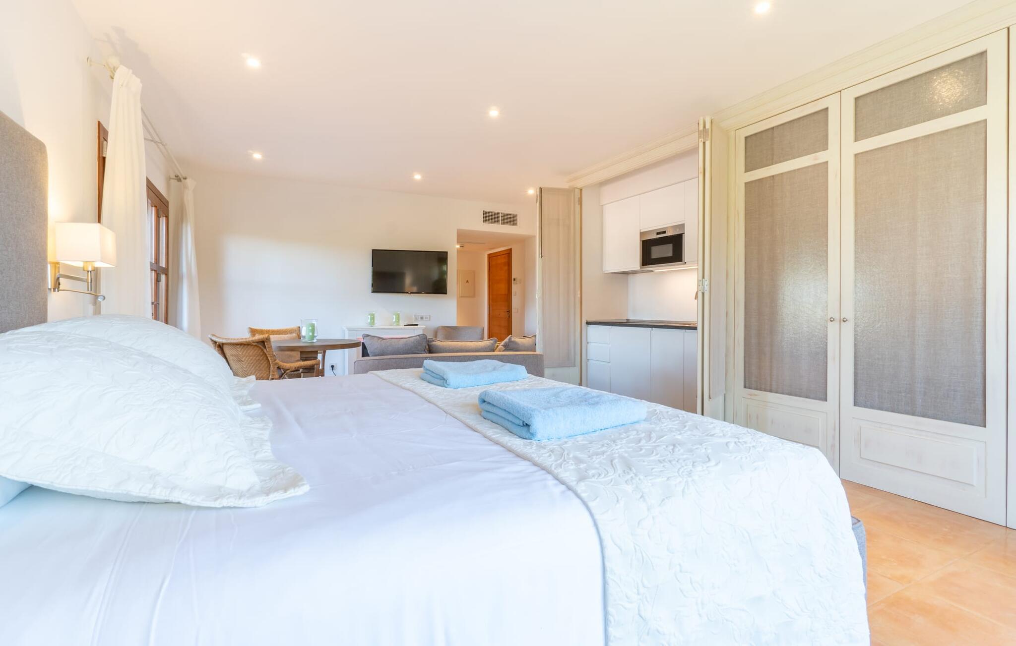 En unik ro omgiver ejendommen, hvor lejligheden "Sa Posada d'Aumallia 34" ligger. Græsplæner, små stier og mange middelhavsplanter, herunder århundredgamle træer, præger området og giver altid luftig, naturlig skygge. Forskellige områder inviterer jer til at tilbringe afslappende timer udendørs: komfortable liggestole, lounge, spisebord og hyggelige siddepladser. Fra alle steder kan I nyde en vidunderlig udsigt over landskabet. Den 18 meter lange pool, som er omgivet af prydplanter og solbadeområder, lover en behagelig forfriskning. Hvis I kan lide sport, kan I bruge tennisbanen eller fitnesscentret. Til wellness-øjeblikke er der en omfattende spa med sauna og tyrkisk bad. I kan også bruge et alsidigt mødelokale efter aftale. Den rummelige lejlighed med en stor panoramaterrasse imponerer med sin klassiske elegance. En hyggelig opholdsstue med komfortable siddepladser, tv og spisebord samt et moderne tekøkken og selvfølgelig en stor seng og et tilhørende badeværelse med badekar og bruser. Denne lejlighed på det sydlige Mallorca er ideel til et roligt wellness-ophold for to. Lejligheden "Sa Posada d'Aumallia 34" er en del af "Aumallia Hotel & Spa", et charmerende landhotel med en rolig beliggenhed. Det er tæt på Porto Colom og golfbanen Vall d'Or. Det store område fuld af flair er ideelt til en afslappende ferie på Mallorca. Porto Colom-stranden og de berømte Dragon Caves kan nås på 10 minutter i bil.