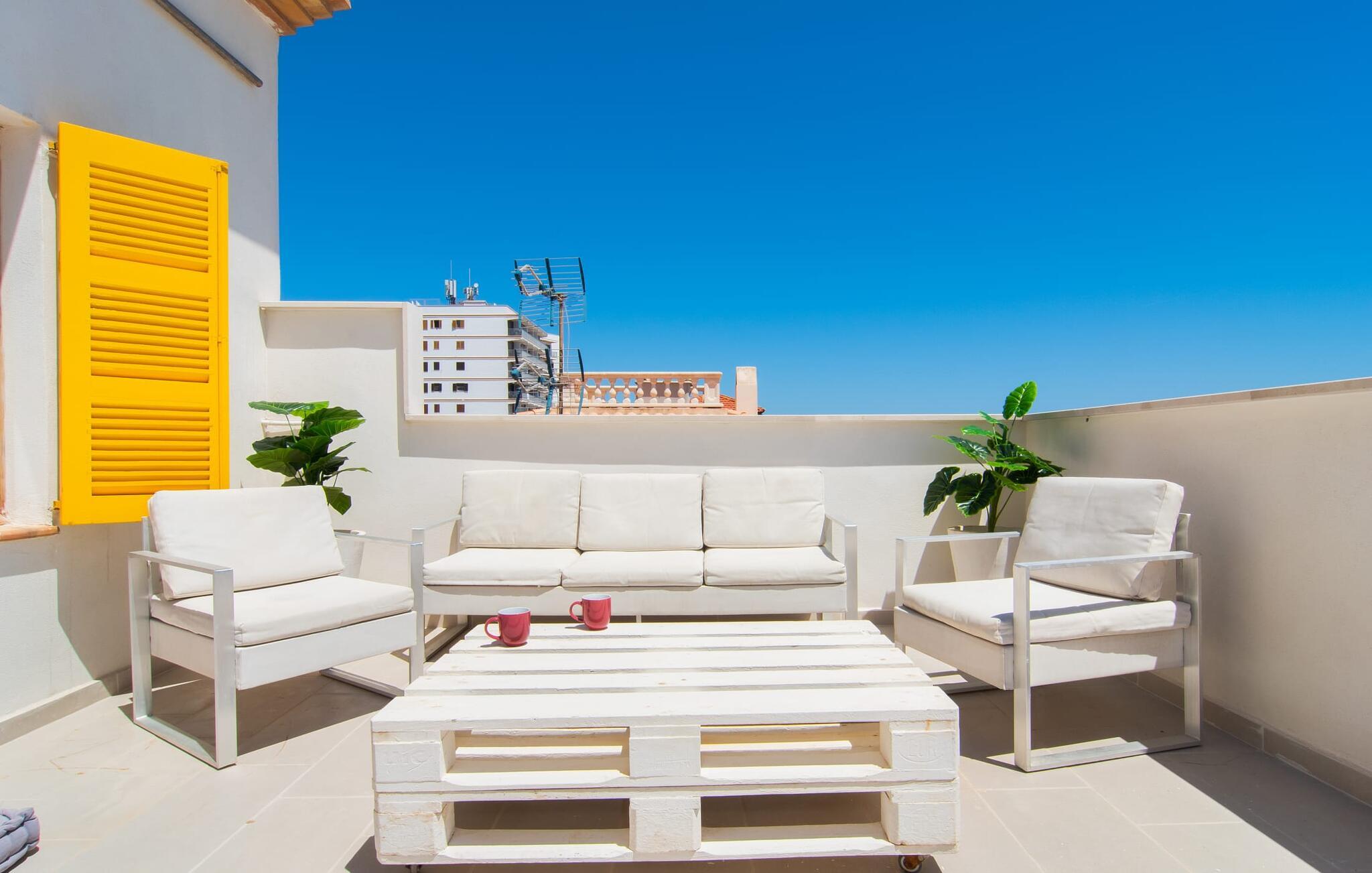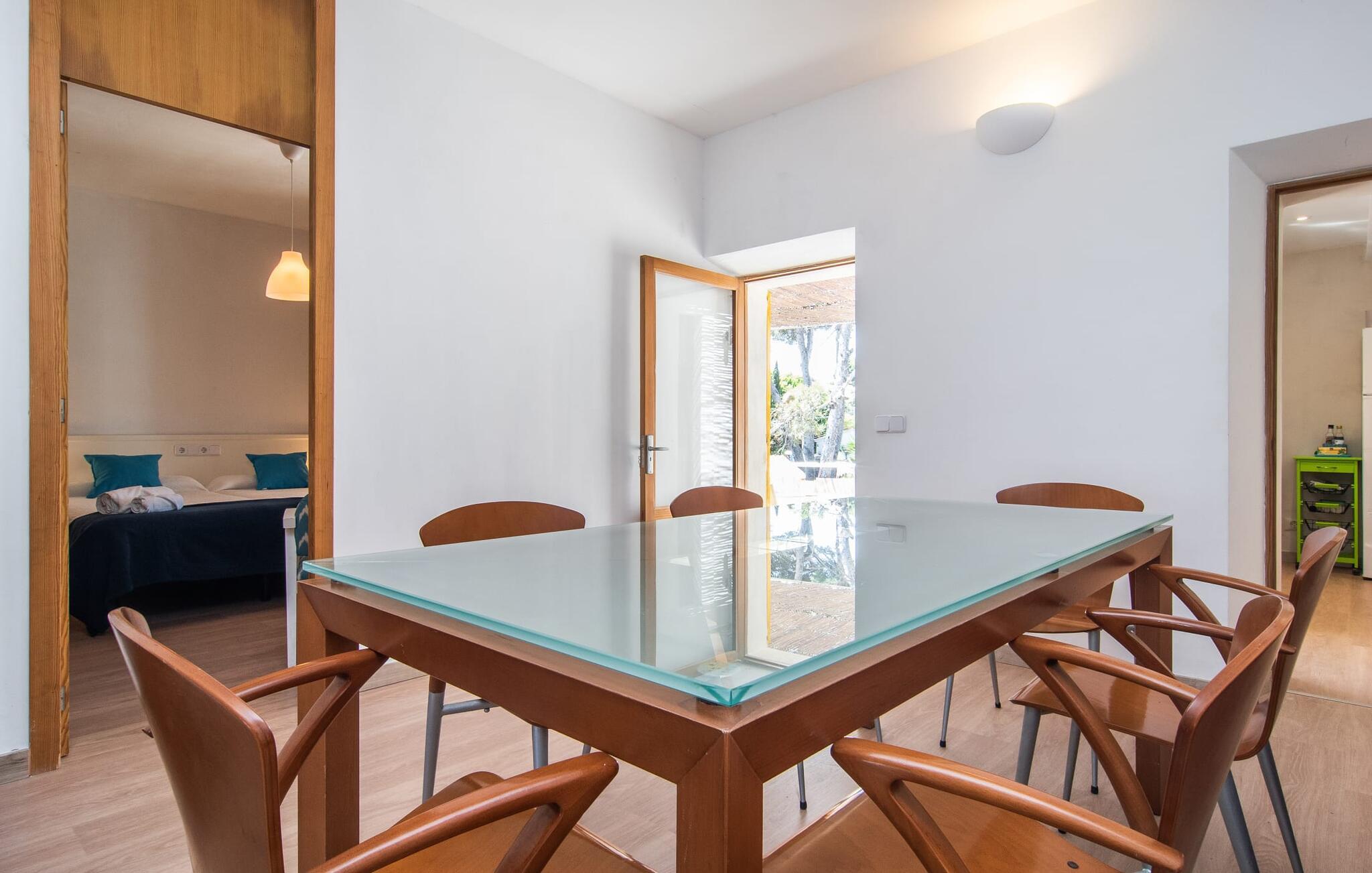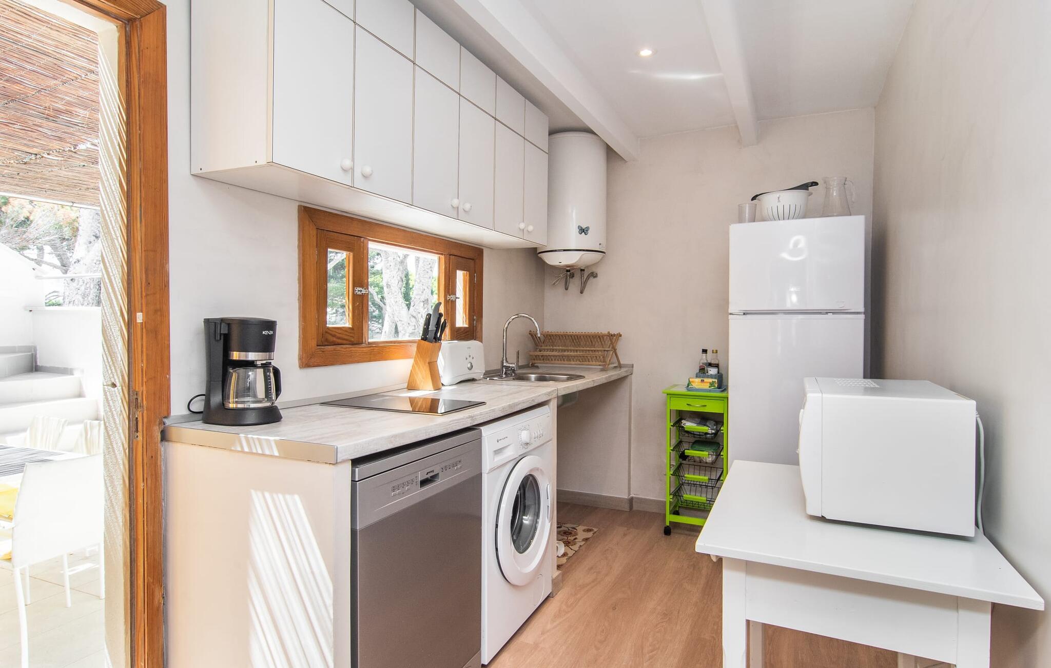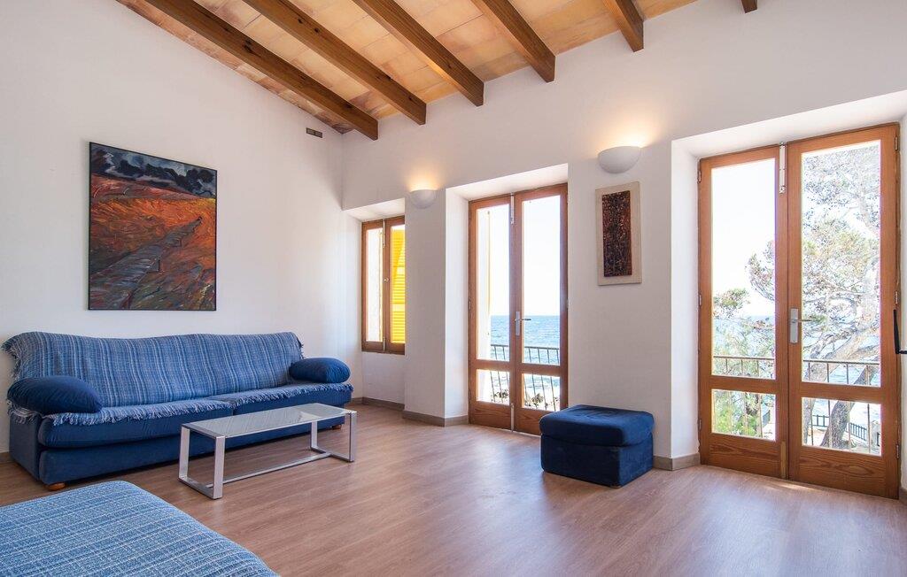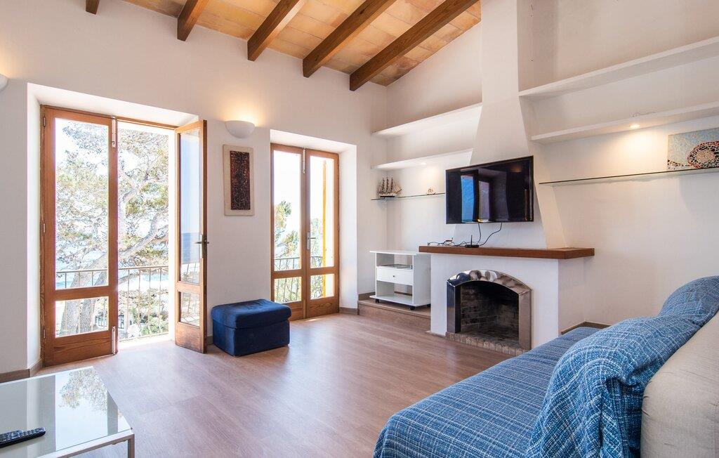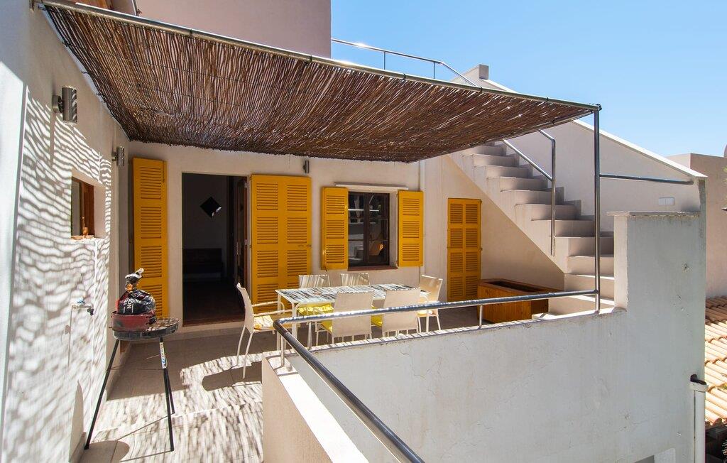 Den charmerende finca "Sa Punta Dúplex" er perfekt placeret på strandpromenaden i Cala Ratjada, med sin lyse hvide facade og solgule skodder, der fremkalder den enkle charme af et traditionelt fiskerhus. Nyd to terrasser og en balkon med en fantastisk udsigt over den forrevne kystlinje, kun adskilt af promenaden. For strandelskere ligger villaen kun få skridt fra Playa Na Ferradura, en stille bugt perfekt til en morgensvømning. Start jeres dag med en kop kaffe med udsigt over den hesteskoformede bugt Cala Ratjada eller nyd morgenmaden på den private overdækkede terrasse. Om aftenen er tagterrassen med fortelt og bar-agtig atmosfære ideel til en afslappet BBQ og sundowner. Interiøret i "Sa Punta Dúplex" er spredt over to niveauer. Den hyggelige stue med åben pejs er perfekt til køligere aftener og åbner ud til en lille altan med udsigt over promenaden. Spisestuen og et veludstyret køkken er også på denne etage. Hovedbadeværelset er placeret ved siden af køkkenet og er let tilgængeligt fra alle terrasser. På øverste etage byder det store soveværelse med eget brusebad på et roligt tilflugtssted. Denne villa er perfekt til en eller to familier eller venner, der leder efter en ferie ved havet med nem adgang til byen. Fra de smukke terrasser i det centralt beliggende rækkehus, "Sa Punta Dúplex", kan I nyde udsigten over havet og nærheden til talrige restauranter, barer og indkøbsmuligheder i Cala Ratjada. Lige foran huset ligger Playa Na Ferradura, et lille badeområde omkranset af klipper. Andre strande som bystranden Platja de Son Moll eller den fyrretræsklædte Cala Agulla er ca. 3 km væk.