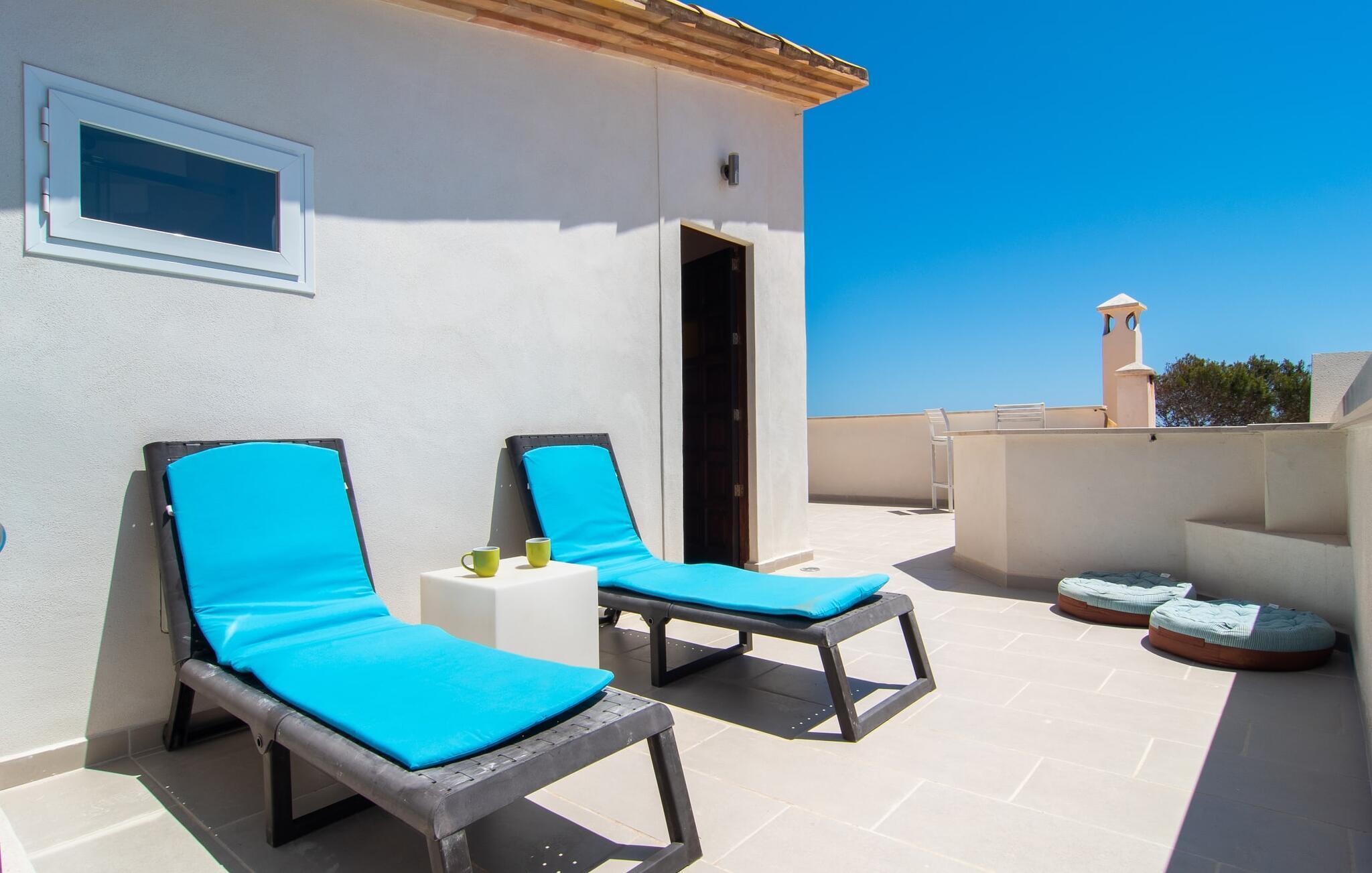 Den charmerende finca "Sa Punta Dúplex" er perfekt placeret på strandpromenaden i Cala Ratjada, med sin lyse hvide facade og solgule skodder, der fremkalder den enkle charme af et traditionelt fiskerhus. Dette er et feriehus i Fincallorca. Nyd to terrasser og en balkon med en fantastisk udsigt over den forrevne kystlinje, kun adskilt af promenaden. For strandelskere ligger villaen kun få skridt fra Playa Na Ferradura, en stille bugt perfekt til en morgensvømning. Start din dag med en kop kaffe med udsigt over den hesteskoformede bugt Cala Ratjada eller nyd morgenmaden på den private overdækkede terrasse. Om aftenen er tagterrassen med fortelt og bar-agtig atmosfære ideel til en afslappet BBQ og sundowner. Interiøret i "Sa Punta Dúplex" er spredt over to niveauer. Den hyggelige stue med åben pejs er perfekt til køligere aftener og åbner ud til en lille altan med udsigt over promenaden. Spisestuen og et veludstyret køkken er også på denne etage. Hovedbadeværelset er placeret ved siden af køkkenet og er let tilgængeligt fra alle terrasser. På øverste etage byder det store soveværelse med eget brusebad på et roligt tilflugtssted. Denne villa er perfekt til en eller to familier eller venner, der leder efter en ferie ved havet med nem adgang til byen. Fra de smukke terrasser i det centralt beliggende rækkehus, "Sa Punta Dúplex", kan du nyde udsigten over havet og nærheden til talrige restauranter, barer og indkøbsmuligheder i Cala Ratjada. Lige foran huset ligger Playa Na Ferradura, et lille badeområde omkranset af klipper. Andre strande såsom bystranden Platja de Son Moll eller den fyrretræsklædte Cala Agulla er ca. 3 km væk.