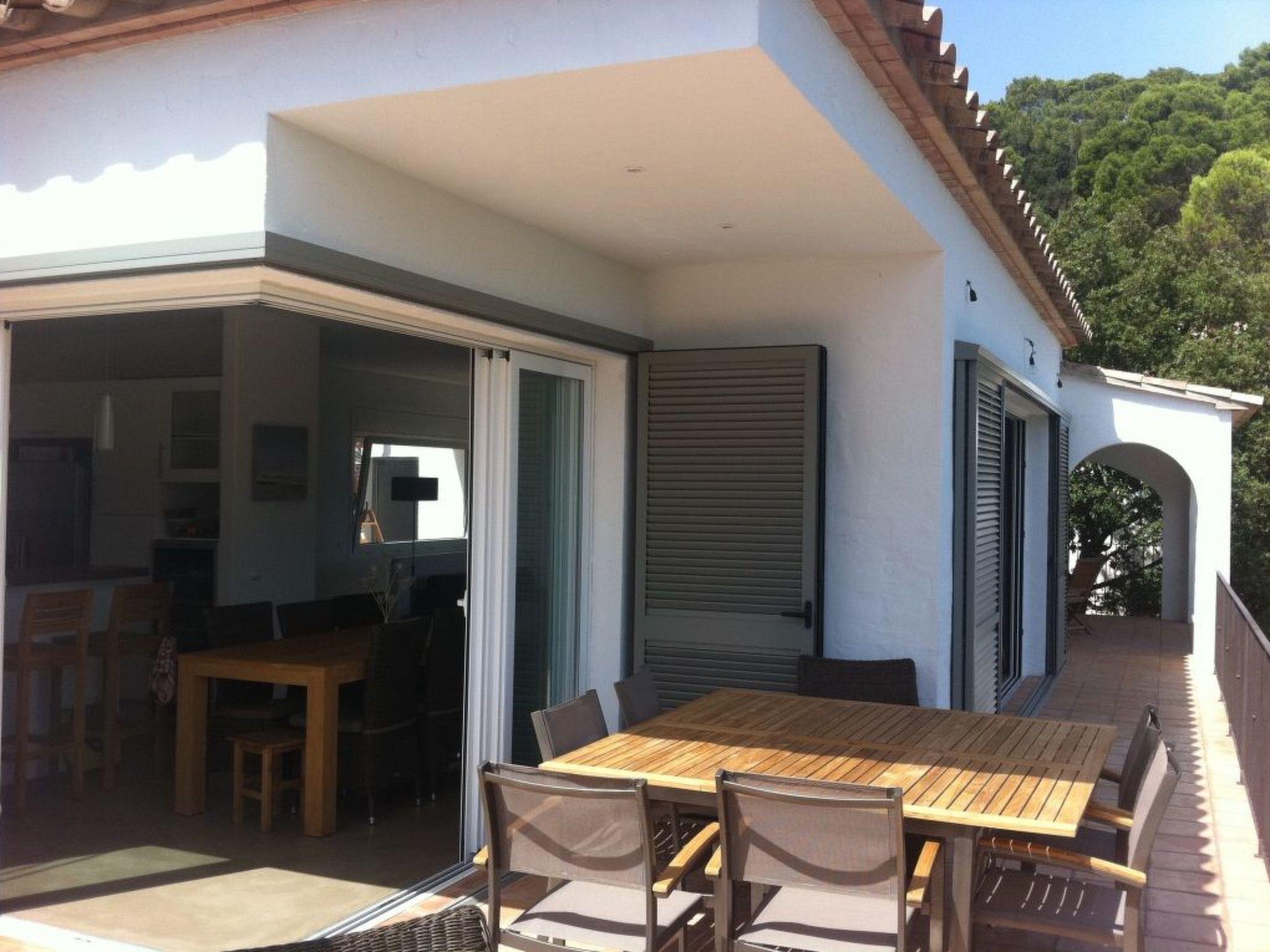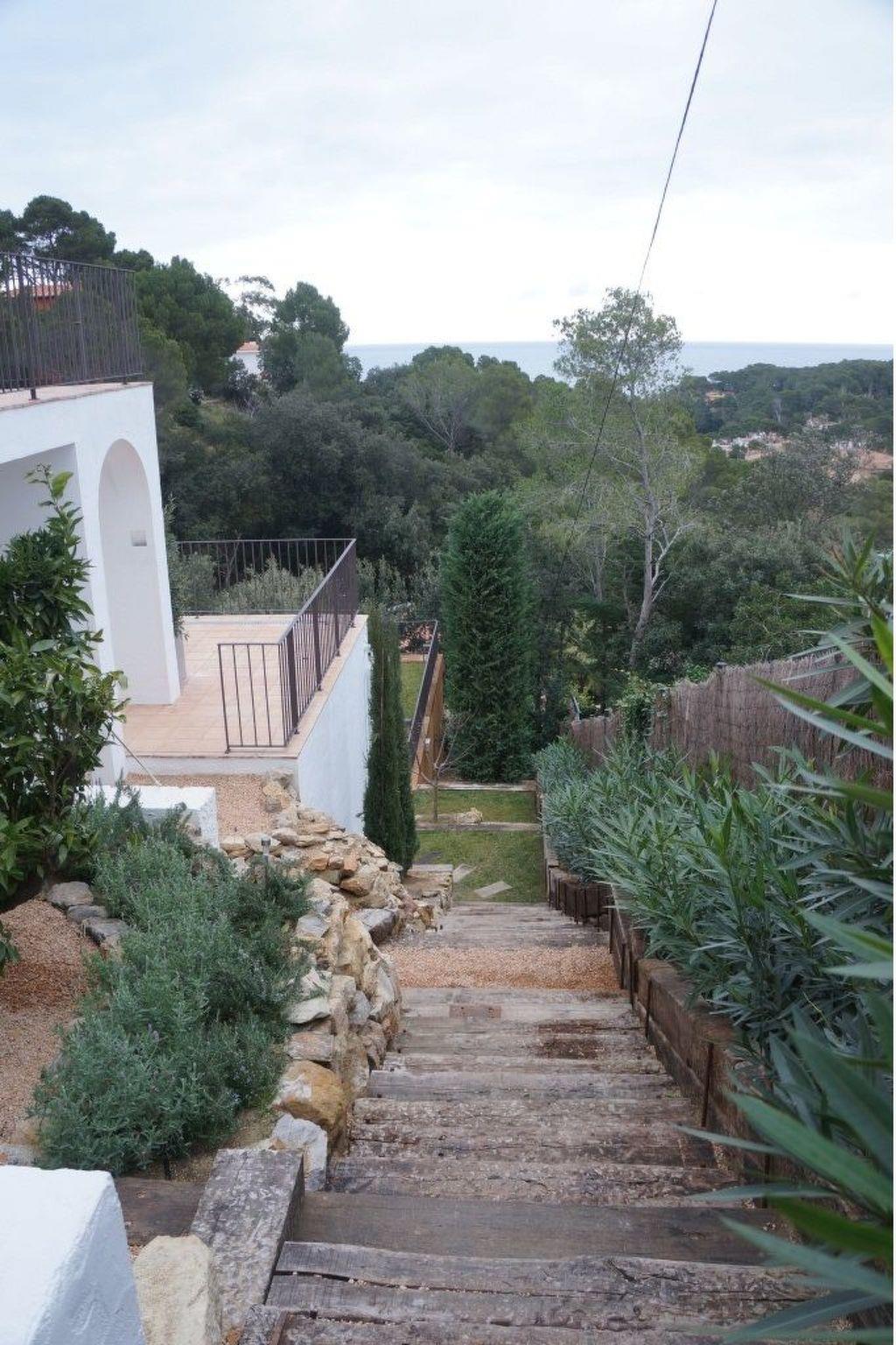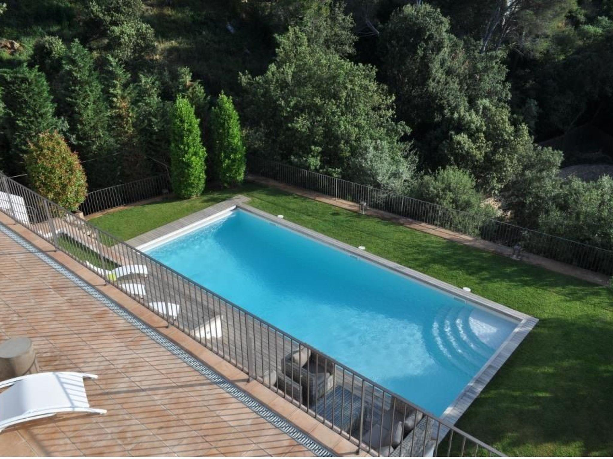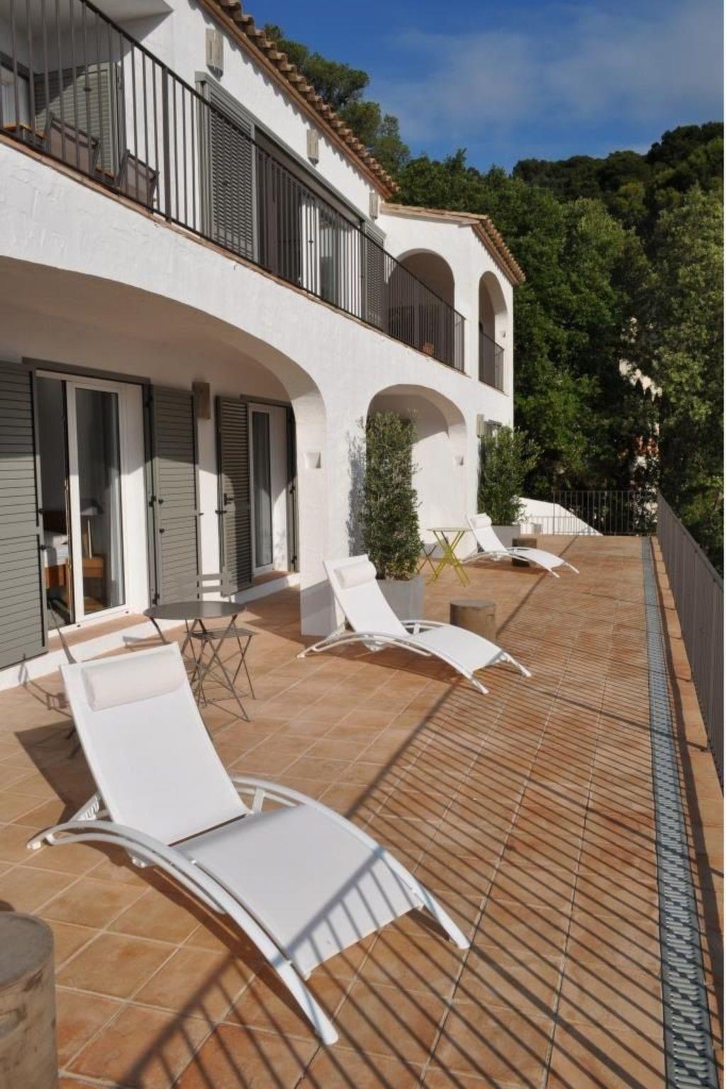 High-standard detached villa, completely renovated in 2012, in the charming and peaceful Mas Mato district, 5 minutes' walk from Sa Riera beach and 3 km from the pretty medieval village of Begur. It offers excellent accommodation for 12 people and has a 5x12m private swimming pool, a garden with landscaped area, numerous terraces and an awning; ideal for holidays with family or friends. The 3-storey villa is set in beautifully landscaped grounds. - The ground floor comprises a living room with fireplace, a dining room and an open-plan kitchen, which open onto a large terrace with magnificent sea views. - The lower floor comprises 5 bedrooms: a master suite with its own bathroom (walk-in shower, bath and WC), 3 bedrooms each with 2 single beds that can be converted into double beds. These bedrooms open onto a large terrace with sea views. They are completed by a children's bedroom with 2 beds. There are 3 shower rooms and 2 separate WCs on this level. - The pool level floor comprises a double bedroom with shower room and separate WC and a large lounge with open-plan kitchen, opening onto a large teak terrace by the pool. This level also includes a large open awning housing garden furniture and a pool table. - The 5 x 12 m swimming pool, protected by an automatic cover, is surrounded by lawns and offers a large space for relaxation. - On the roof of the house, a vast solarium offers a breathtaking view over the bay of Sa Riera.