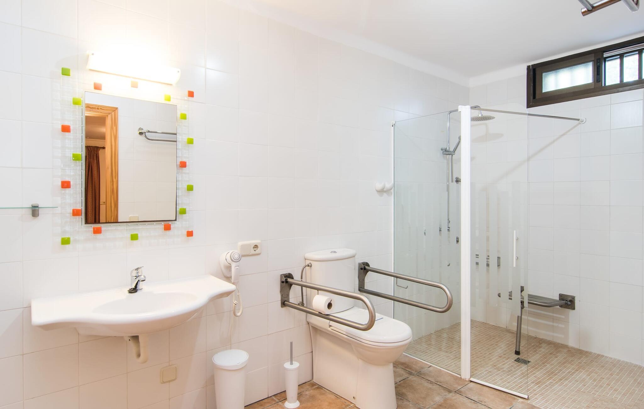 Finca "Sa Riera" er en af fire upåklageligt møblerede ejendomme, der ejes og administreres af en mallorcansk hotelejerfamilie, som er stolte af deres enestående opmærksomhed på detaljer og service. Villaen er perfekt til familier og tilbyder et fuldt tilgængeligt miljø for ældre og handicappede gæster med en alternativ rampe for alle trin, der fører til villaens hovedindgang og haveområde. Poolområdet har trappetrin, en stolelift og en anden lavvandet pool, og villaens store terrasse har masser af liggestole, parasoller og siddepladser. Villaens indre er lyst og luftigt med en kombineret opholds- og spisestue og et fuldt udstyret køkken. Det rummelige soveværelse nedenunder har et overdimensioneret badeværelse og brede døråbninger med håndtag på badeværelset. Med fem ekstra dobbeltværelser og badeværelser er den designet til komfort og bekvemmelighed. Fincaen "Sa Riera" ligger ca. 2.000 m fra drømmestrandene i Playa de Muro og strandene i Can Picafort. Butikker, strandbarer og restauranter ligger også kun få minutter væk i bil. Vi anser denne bolig for at være tilgængelig for vores gæster med nedsat mobilitet, men vi opfordrer alle gæster til at tjekke boligens egnethed ud fra deres egne behov. Bemærk venligst, at denne ejendom ikke accepterer ungdomsgrupper eller polterabender. En ungdomsgruppe på denne ejendom består af personer under 25 år. Book ikke denne ejendom, hvis I er en ungdomsgruppe eller polterabend, da jeres reservation vil blive afvist, når den er booket, hvilket kan være ved ankomsten til ejendommen eller under jeres ophold, og I vil ikke modtage en refusion.