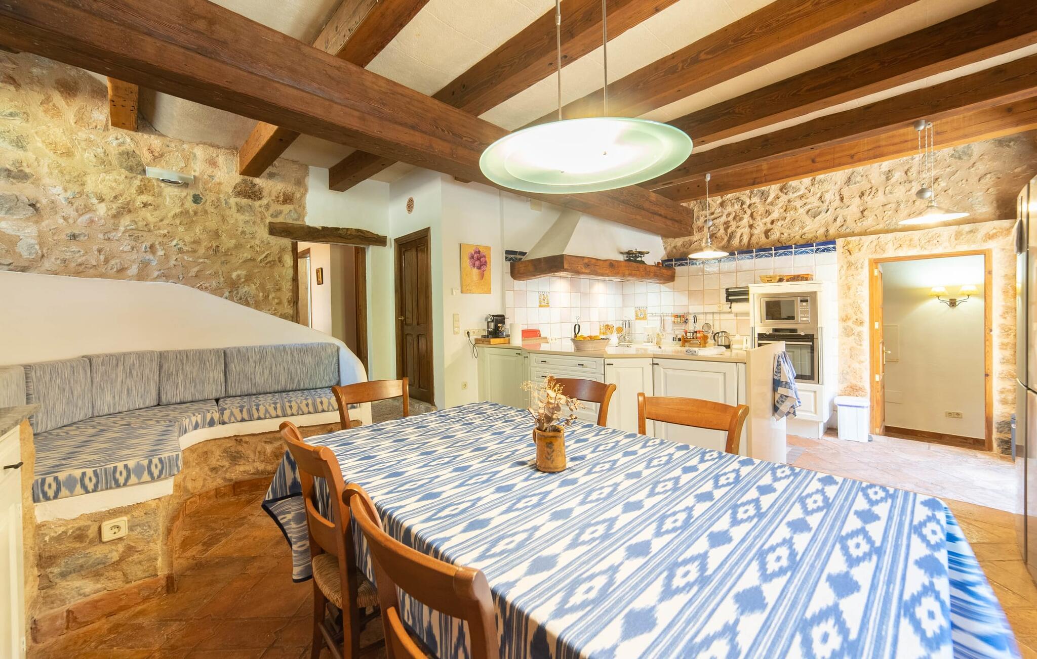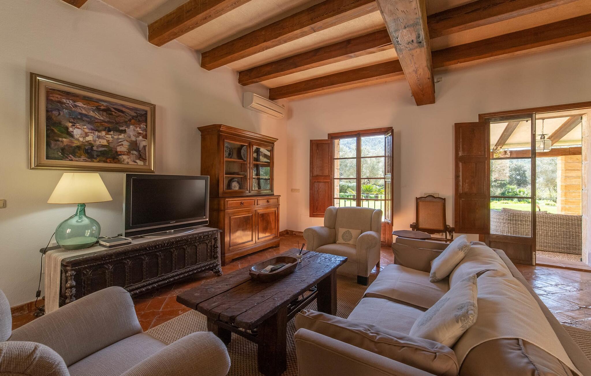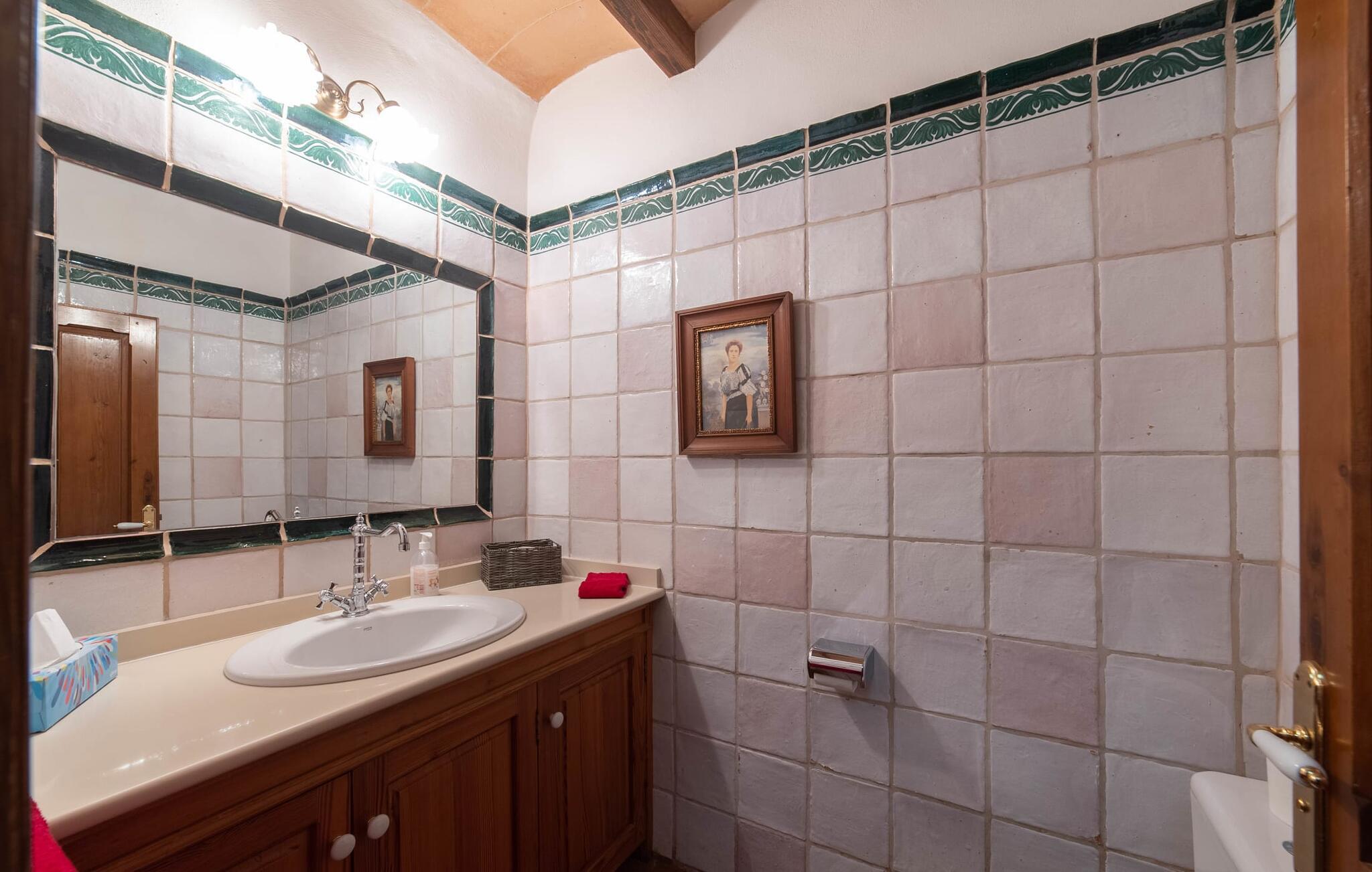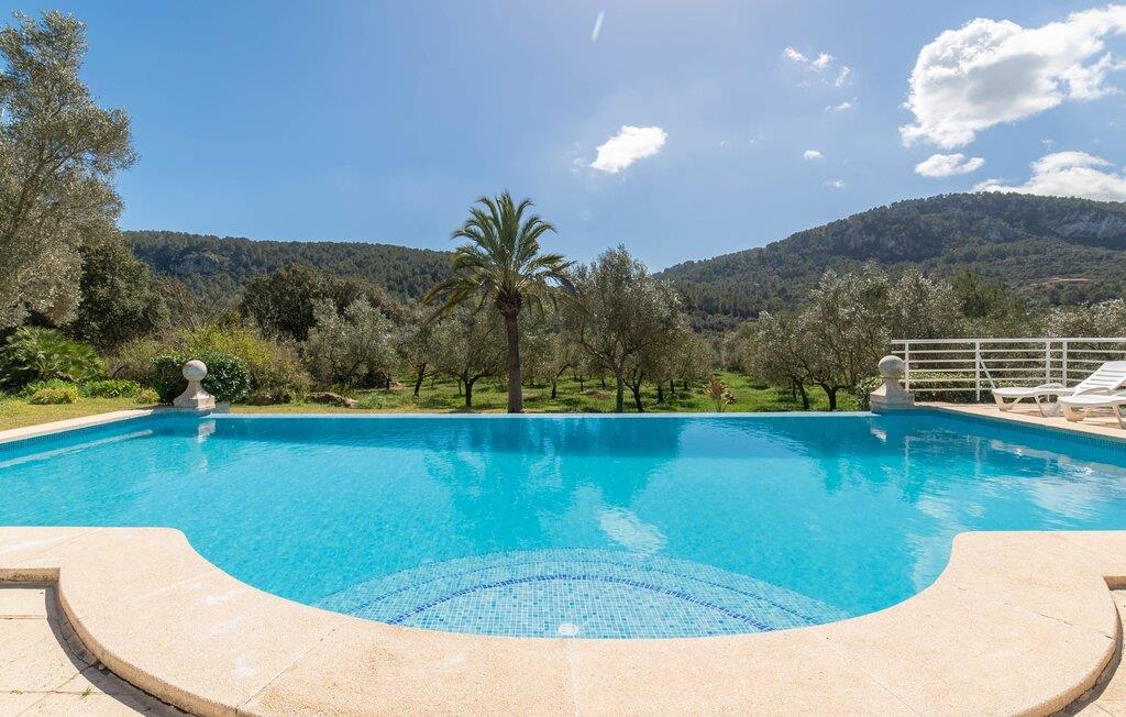Oplev fuldstændig privatliv og betagende udsigt over bjergene i denne smukt designede bondegård på Mallorca. Omgivet af frodig middelhavsvegetation og modne træer er den indbydende atmosfære ideel for alle aldre. Ejendommen har stilfulde terrasseområder, både åbne og overdækkede, perfekt til afslapning udenfor. Nyd en dukkert i den lavvandede pool eller spil sport på stedets paddle-tennisbane, et unikt tilbud. Liggestole på poolterrassen er et behageligt sted at slappe af under middelhavssolen. Ejendommen var oprindeligt en olivenfarm og vedligeholdes stadig af personale til olivenproduktion og anlægsinspektioner. Det rummelige hus, udstyret med aircondition og gulvvarme, byder på masser af plads til individuel nydelse. Traditionelle terracotta-fliser, synlige bjælkelofter og naturstenselementer understreger den hyggelige atmosfære. Stuen med pejs og fjernsyn samt fuldt udstyret køkken med spiseplads er perfekte til sammenkomster. Stuehuset har seks soveværelser - fire dobbeltværelser og to singler - samt fire badeværelser og et gæstetoilet for at sikre privatlivets fred for alle gæster. En separat boligenhed består af et af soveværelserne med dobbeltsenge, et badeværelse og en lille stue med integreret køkken. En udendørs sauna giver wellness og giver jeres ferieoplevelse et afslappende præg. Dette eksklusive bondehus i natursten ligger i smukke landlige omgivelser midt i Tramuntana-bjergene. Esporles med butikker, flere restauranter og barer kan nås på 5 minutter i bil, den nærmeste strand på cirka 20 minutter.