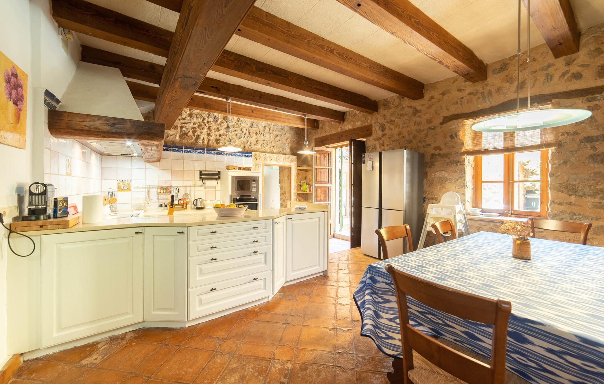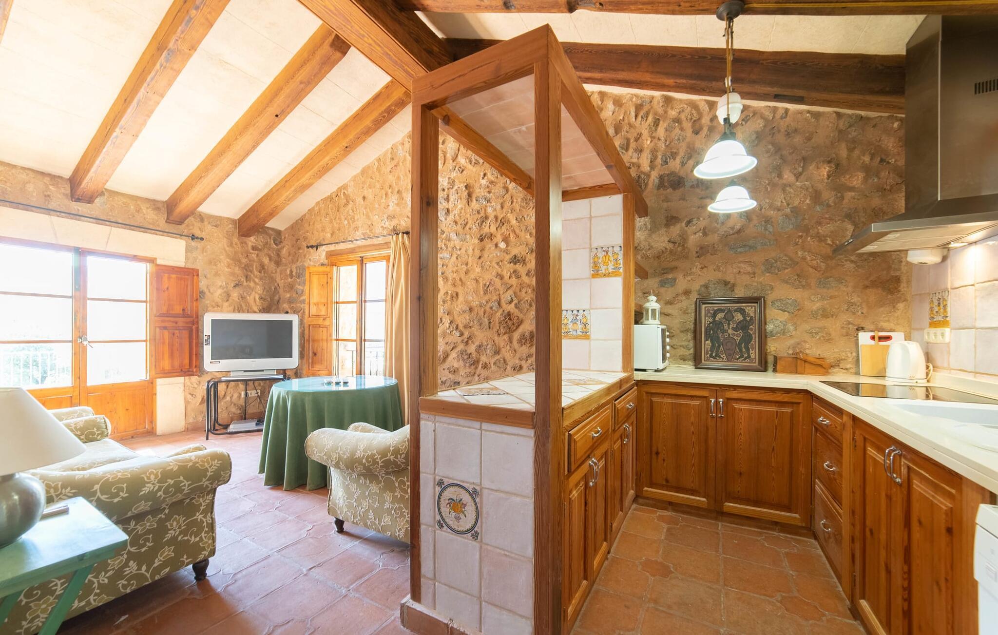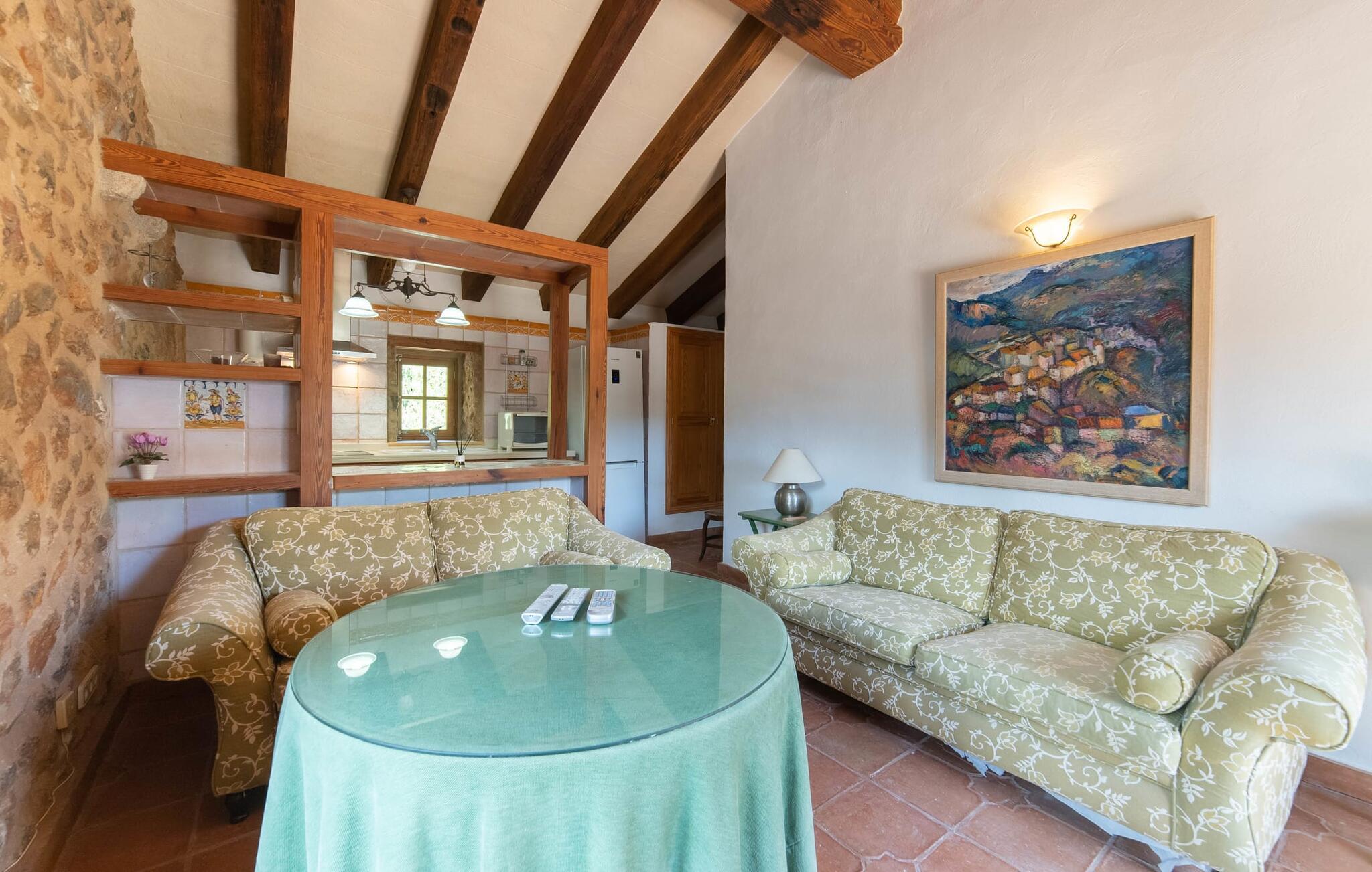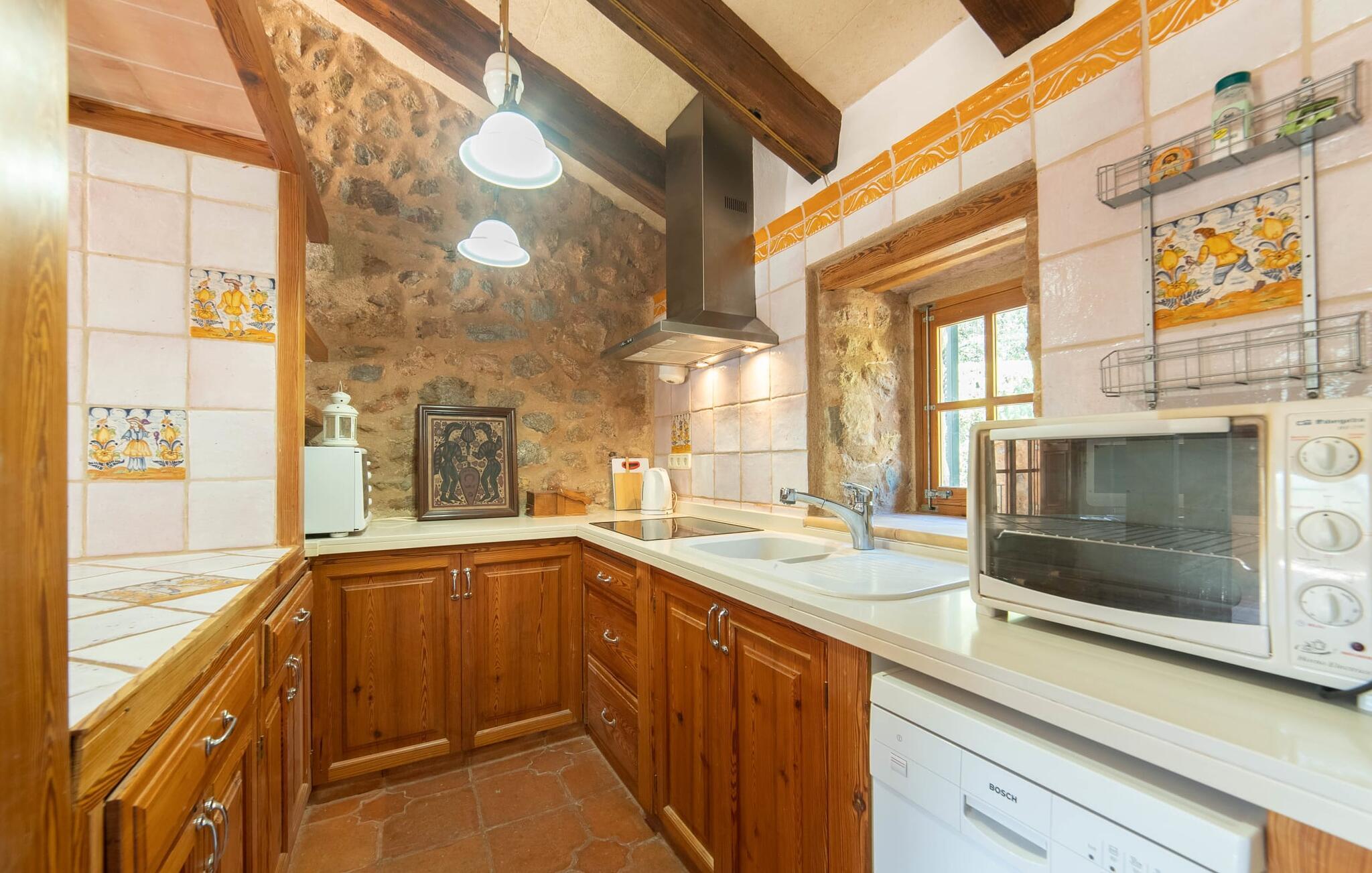 Oplev fuldstændig privatliv og betagende udsigt over bjergene i denne smukt designede bondegård på Mallorca. Omgivet af frodig middelhavsvegetation og modne træer er den indbydende atmosfære ideel for alle aldre. Ejendommen har stilfulde terrasseområder, både åbne og overdækkede, perfekt til afslapning udenfor. Nyd en dukkert i den lavvandede pool eller spil sport på stedets paddle-tennisbane, et unikt tilbud. Liggestole på poolterrassen er et behageligt sted at slappe af under middelhavssolen. Ejendommen var oprindeligt en olivenfarm og vedligeholdes stadig af personale til olivenproduktion og anlægsinspektioner. Det rummelige hus, udstyret med aircondition og gulvvarme, byder på masser af plads til individuel nydelse. Traditionelle terracotta-fliser, synlige bjælkelofter og naturstenselementer understreger den hyggelige atmosfære. Stuen med pejs og fjernsyn samt fuldt udstyret køkken med spiseplads er perfekte til sammenkomster. Stuehuset har seks soveværelser - fire dobbeltværelser og to singler - samt fire badeværelser og et gæstetoilet for at sikre privatlivets fred for alle gæster. En separat boligenhed består af et af soveværelserne med dobbeltsenge, et badeværelse og en lille stue med integreret køkken. En udendørs sauna giver wellness og giver jeres ferieoplevelse et afslappende præg. Dette eksklusive bondehus i natursten ligger i smukke landlige omgivelser midt i Tramuntana-bjergene. Esporles med butikker, flere restauranter og barer kan nås på 5 minutter i bil, den nærmeste strand på cirka 20 minutter.