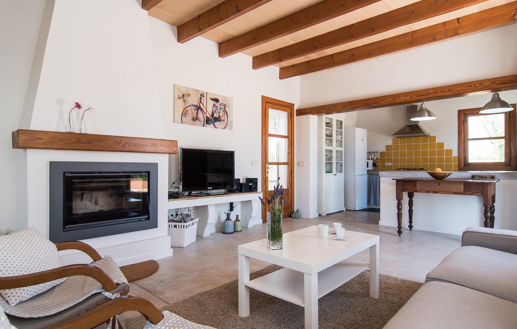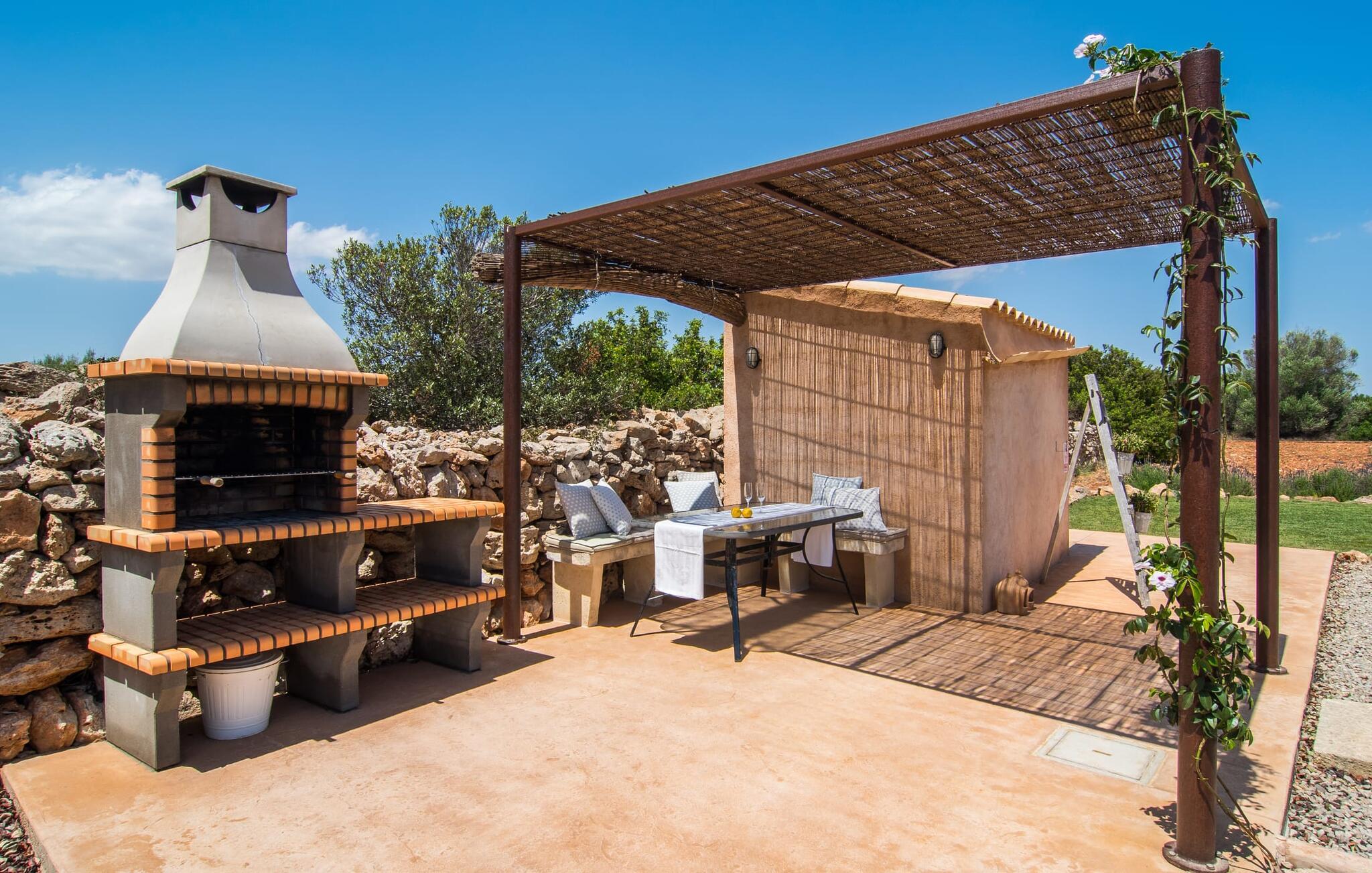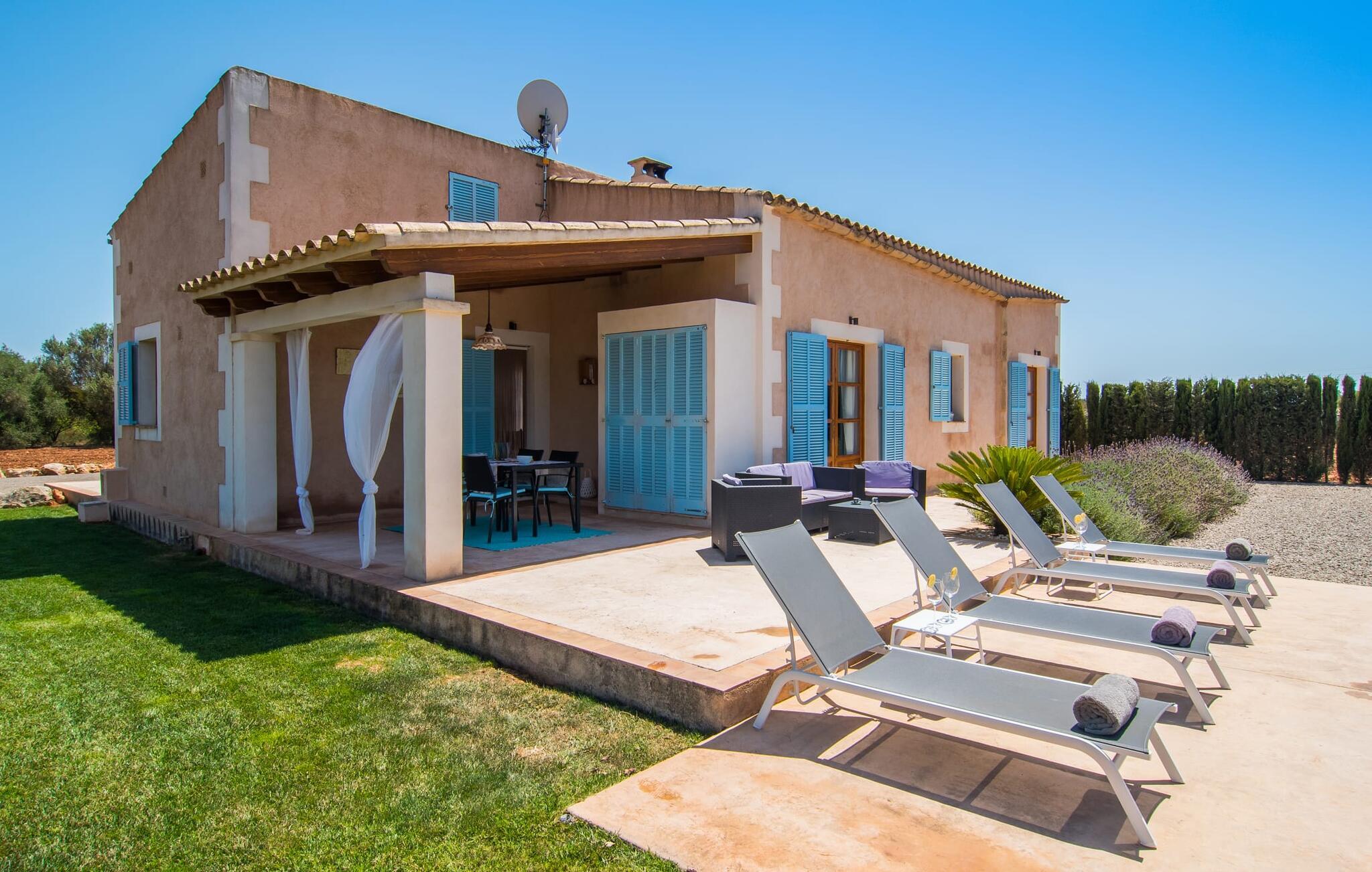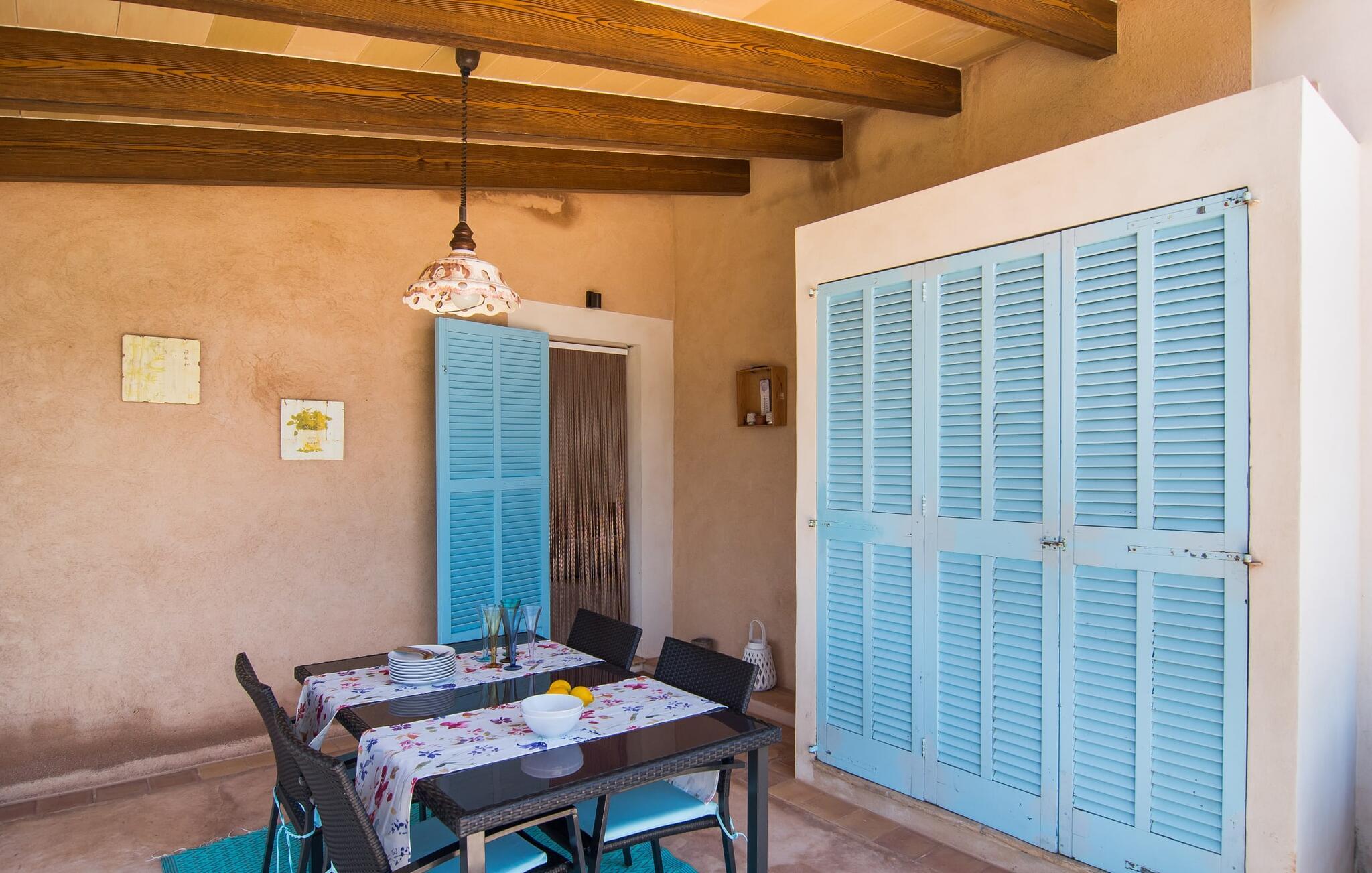 Den smukke feriefinca "Sa Tanca Gran" byder på plads til op til fire gæster. Det er omgivet af marker i det landlige lavland i det smukke sydlige Mallorca. Her er I helt for jer selv og alligevel er indkøbsmuligheder og smukke strande ikke langt væk. Det pæne, minimalistiske design af udendørsområdet inviterer jer til at blive hængende i timevis under middelhavssolen. Den vidunderlige pool er udstyret med liggestole og parasoller. Lige ved siden af huset er der en hyggelig, overdækket terrasse, hvor I kan nyde jeres måltider i skyggen. På den modsatte side af poolen er der en muret grill og endnu en solbeskyttet udendørs spiseplads under en pergola. Afhængigt af vindretningen kan der høres kørestøj i det fjerne fra landstedet, men det betyder også, at kystdestinationer som Cala D'Or eller Portocolom er let tilgængelige. Sommerhuset i stueetagen byder velkommen med en lys, smagfuldt indrettet opholdsstue. Rustikke elementer blev kombineret med moderne komfort. Det fuldt udstyrede køkken er integreret i en charmerende stue og spisestue i åbent plan med pejs. De to dobbeltværelser er udstyret med overskabe og kan nemt mørklægges med rulleskodder. Både soveværelserne og det primære opholdsrum er udstyret med aircondition. Et moderne badeværelse med bruser fuldender rummet. Feriehuset har stabilt internet og er også velegnet til hjemmearbejde. Ferieboligen ligger på det sydlige Mallorca, 6,5 km nordvest for Felanitx. Her finder I flere supermarkeder og indkøbsmuligheder. De nærmeste sandstrande Cala Murada, Cala Tropicana og Cala Marçal ligger omkring 25 minutter væk i bil. Aircondition er inkluderet i prisen i stuen fra 12:00 til 22:00 og i soveværelserne fra 22:00 til 06:00. Brug uden for disse tider vil blive faktureret kontant på stedet.