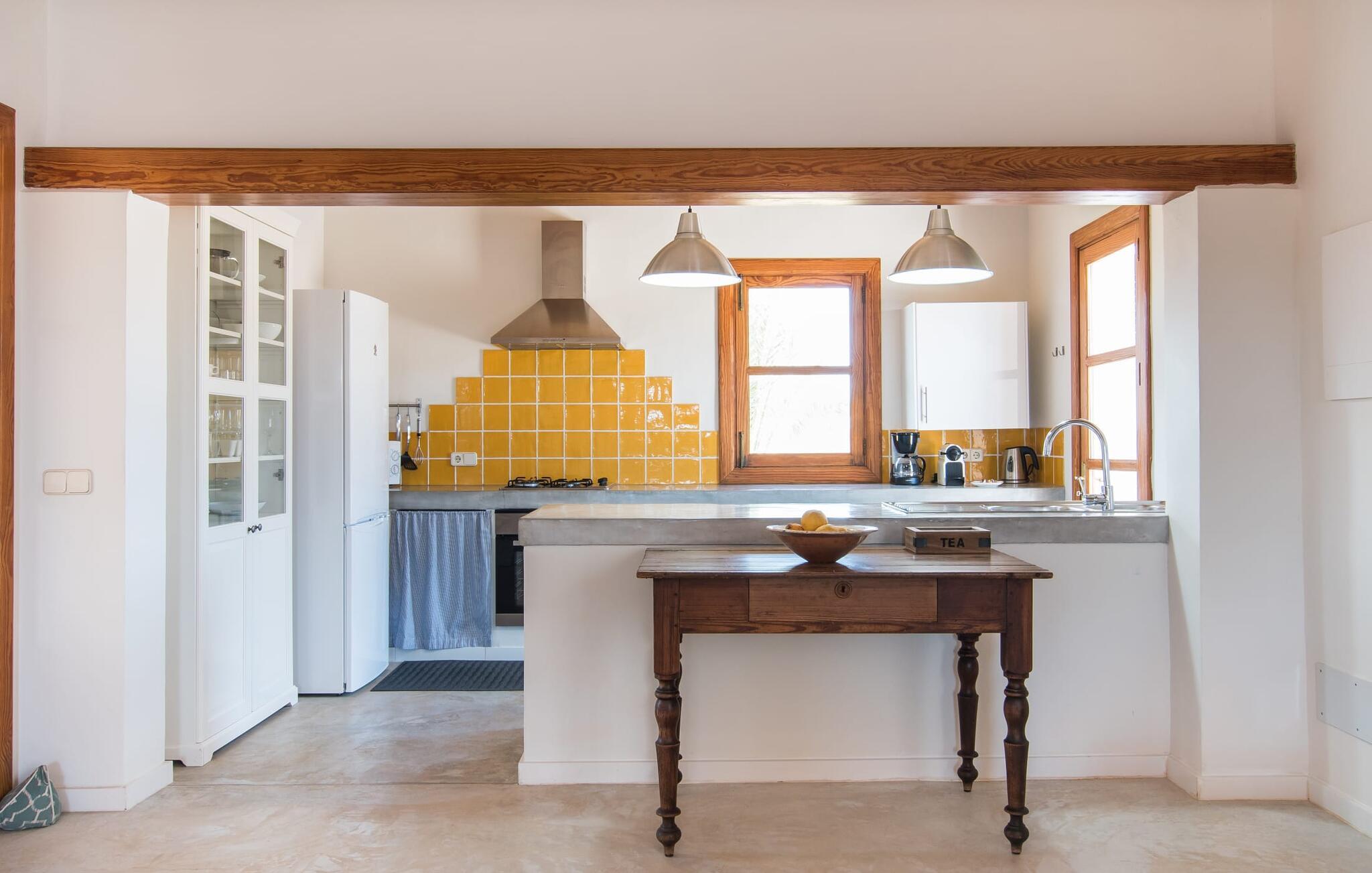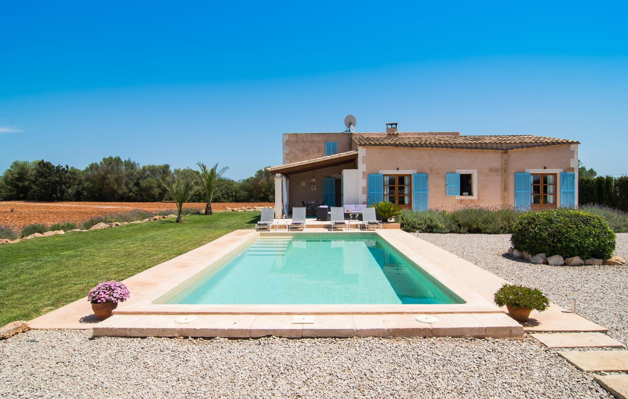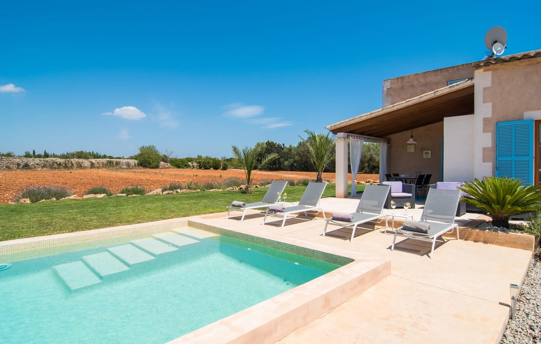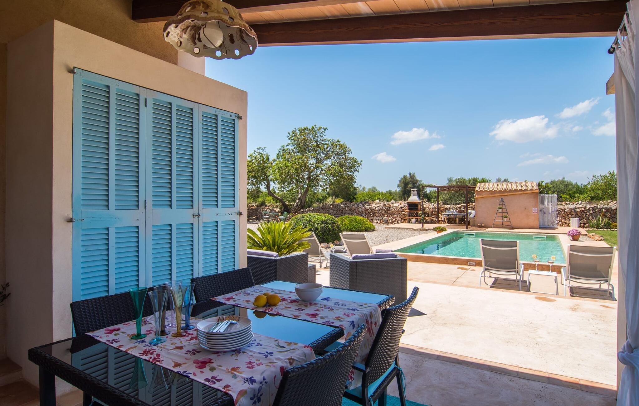 Den smukke feriefinca "Sa Tanca Gran" byder på plads til op til fire gæster. Det er omgivet af marker i det landlige lavland i det smukke sydlige Mallorca. Her er I helt for jer selv og alligevel er indkøbsmuligheder og smukke strande ikke langt væk. Det pæne, minimalistiske design af udendørsområdet inviterer jer til at blive hængende i timevis under middelhavssolen. Den vidunderlige pool er udstyret med liggestole og parasoller. Lige ved siden af huset er der en hyggelig, overdækket terrasse, hvor I kan nyde jeres måltider i skyggen. På den modsatte side af poolen er der en muret grill og endnu en solbeskyttet udendørs spiseplads under en pergola. Afhængigt af vindretningen kan der høres kørestøj i det fjerne fra landstedet, men det betyder også, at kystdestinationer som Cala D'Or eller Portocolom er let tilgængelige. Sommerhuset i stueetagen byder velkommen med en lys, smagfuldt indrettet opholdsstue. Rustikke elementer blev kombineret med moderne komfort. Det fuldt udstyrede køkken er integreret i en charmerende stue og spisestue i åbent plan med pejs. De to dobbeltværelser er udstyret med overskabe og kan nemt mørklægges med rulleskodder. Både soveværelserne og det primære opholdsrum er udstyret med aircondition. Et moderne badeværelse med bruser fuldender rummet. Feriehuset har stabilt internet og er også velegnet til hjemmearbejde. Ferieboligen ligger på det sydlige Mallorca, 6,5 km nordvest for Felanitx. Her finder I flere supermarkeder og indkøbsmuligheder. De nærmeste sandstrande Cala Murada, Cala Tropicana og Cala Marçal ligger omkring 25 minutter væk i bil. Aircondition er inkluderet i prisen i stuen fra 12:00 til 22:00 og i soveværelserne fra 22:00 til 06:00. Brug uden for disse tider vil blive faktureret kontant på stedet.