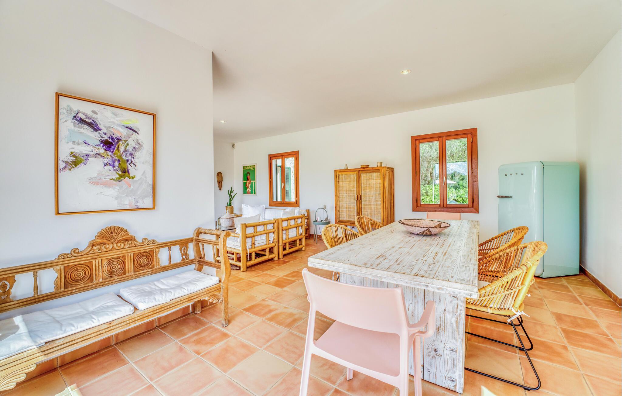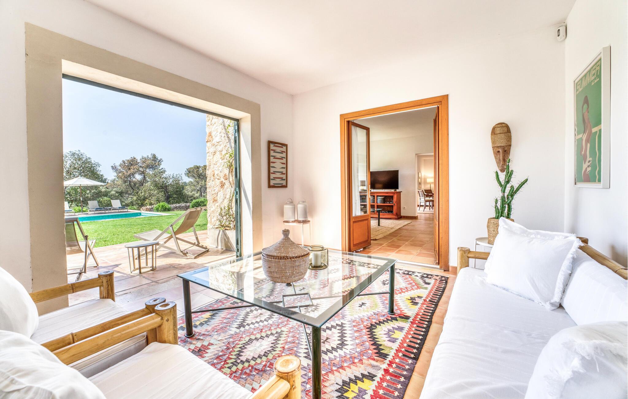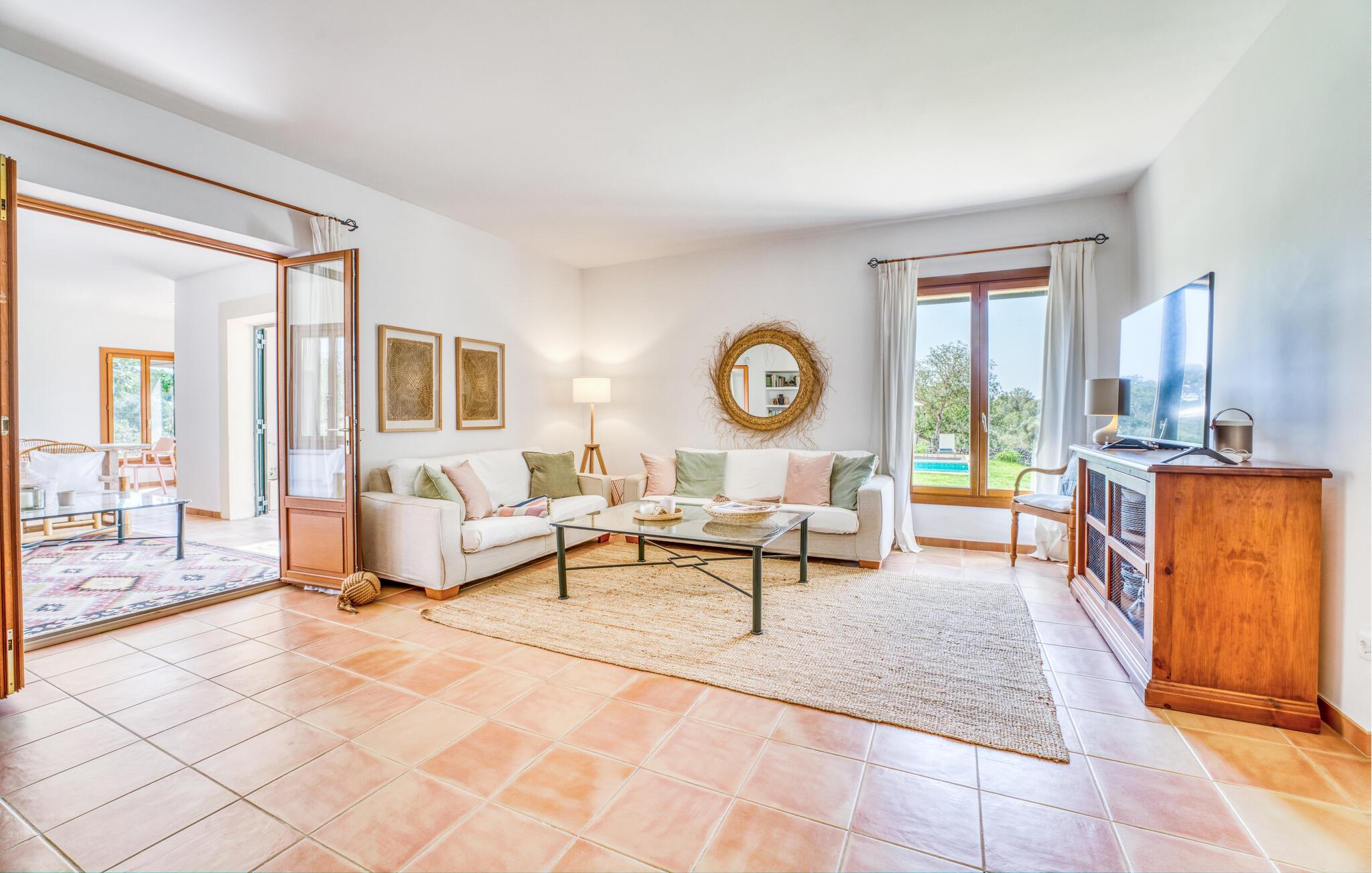 Villaen “Sa Tanca” ligger meget stille og idyllisk i den smukke østlige del af Mallorca, hvor de blidt stigende bakker i Serra Levanten præger et typisk middelhavslandskab, enestående smukt kystlandskab. Her kan I nyde jeres privatliv uden at føle jer begrænset af mure eller hegn. Den lange pool er omgivet af græsplæner, hvor I kan slappe af i solen, og børnene kan løbe rundt og lege. Høje hække giver ekstra komfort og ser attraktive ud på samme tid. Der er en særlig smuk sydvendt siddeplads foran huset. Herfra har I en fantastisk udsigt over haven og kan også fuldt ud nyde Middelhavslyset. Om morgenen eller sent om aftenen – det er et smukt sted med en faktor. I kan slappe af ved det runde spisebord eller nyde et måltid sammen. Om aftenen kan I fejre solide grillfester og tilberede og nyde friske regionale specialiteter på grillen. Poolen er let tilgængelig via en stige. For at beskytte jer, hvis UV-strålingen bliver for stærk, er der to parasoller til rådighed. Uanset tidspunktet på dagen er der altid en luftig, naturlig skygge på ejendommen for at nyde de smukke omgivelser. Der er en parkeringsplads til jeres bil foran huset. I husets lysfyldte interiør kan I forvente et boligareal på 302 m². Lyse vægge harmonerer med terracotta fliserne samt trævinduer og møbler med deres smukke, farverige stoffer. Udvalgte billeder på væggene forskønner rummene. Denne dygtige sammensætning skaber en særlig smagfuld og hyggelig stemning, hvor I hurtigt føler jer hjemme. En stor kombineret stue/spisestue med lille bibliotek og pejs opfylder alle jeres indendørs afslapningsbehov. Et andet indbydende sted at sidde og nyde er en slags vinterhave, som helt kan åbnes til en overdækket terrasse i de varmere måneder og er udstyret med en ekstra sofa og spisebord. Det rummelige, moderne køkken er fuldt udstyret og byder på alt det nødvendige til jeres ferie. Faciliteterne omfatter en opvaskemaskine, en kedel, en italiensk kaffemaskine og en filterkaffemaskine. Fire slående renoverede og klimatiserede soveværelser, hver med sit eget badeværelse, fuldender de afslappende funktioner i dette feriehus. Badeværelserne er lyse og venlige. For nemheds skyld er strygejern og hårtørrer tilgængelige. Fra villaen "Sa Tanca" er der mindre end 4 km til den nærmeste kystby Portocristo, med sin egen fejende havn og strandbugter, over hvilken der er en smuk promenade med butikker, caféer, barer og restauranter. Der er også et ugentligt marked, der er værd at se, og flere store, velassorterede supermarkeder til jeres daglige behov. En udflugt, som I bestemt bør tage på i Portocristo, er de såkaldte Caves of Drac, en unik drypstensgrotte med Europas største underjordiske sø. Ud over denne lille by er der også adskillige fantastiske strande inden for rækkevidde. De er alle fine hvide sandstrande, og de fleste har lavvandet adgang til havet. Villaen tilbyder et ideelt udgangspunkt for en varieret badeferie. Den smukt beliggende villa "Sa Tanca" ligger mindre end 4 km fra porten til den maleriske havneby Portocristo. Talrige strande, de såkaldte "Calas de Mallorca", er meget nemme at nå. Portocristo ligger kun omkring 5 minutter væk i bil, og her finder I alt, hvad I behøver for at shoppe og tilbringe en aften. Bemærk venligst, at denne ejendom ikke accepterer ungdomsgrupper eller polterabender. En ungdomsgruppe på denne ejendom består af personer under 30 år. Book ikke denne ejendom, hvis I er en ungdomsgruppe eller en polterabendgruppe, da jeres reservation vil blive afvist, når den er booket, hvilket også kan være tilfældet ved ankomst til ejendommen eller under jeres ophold, og I vil ikke modtage en refusion.