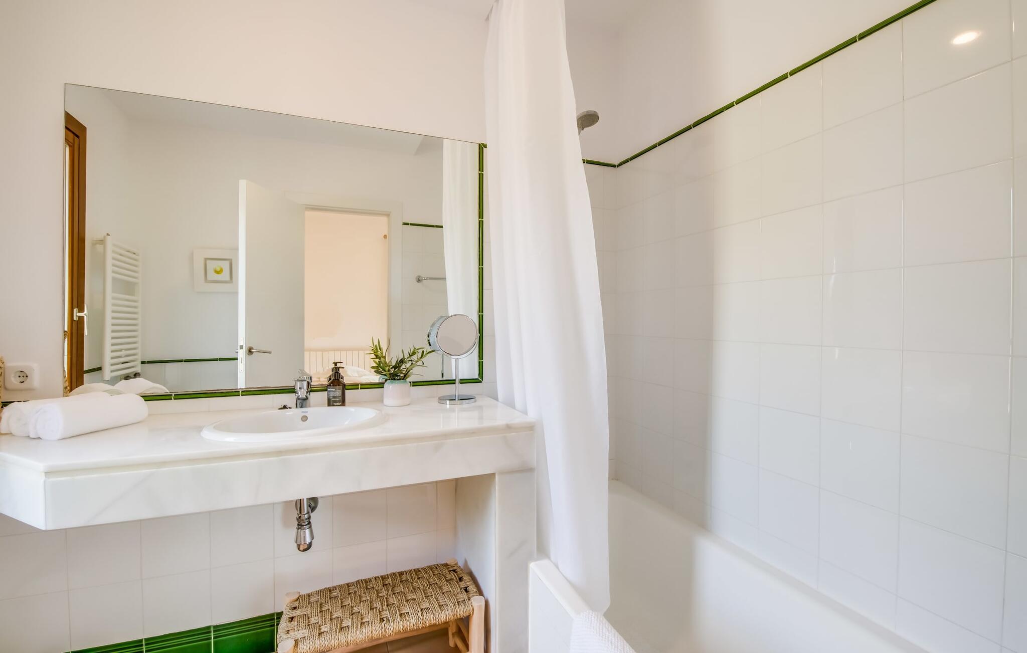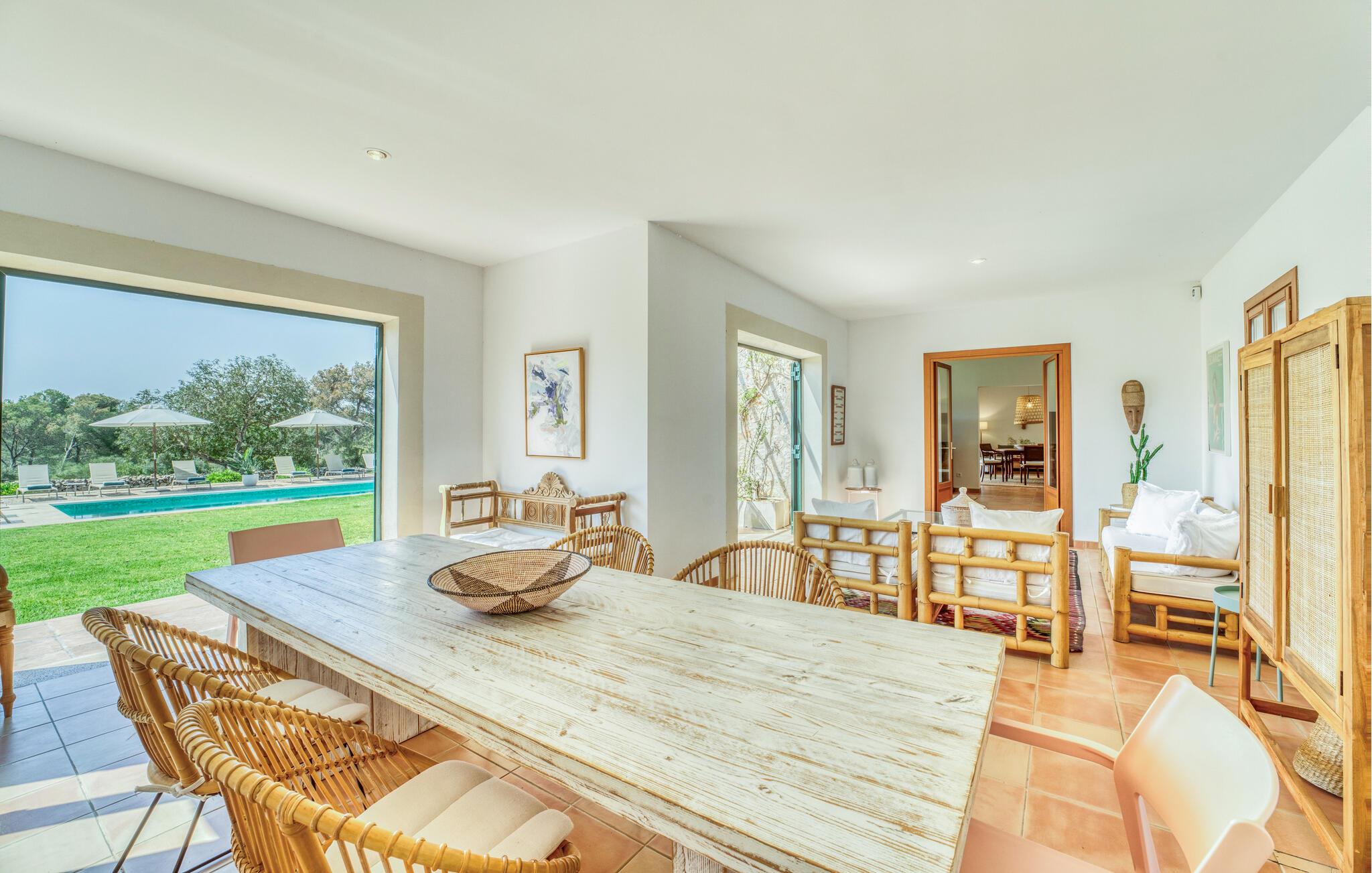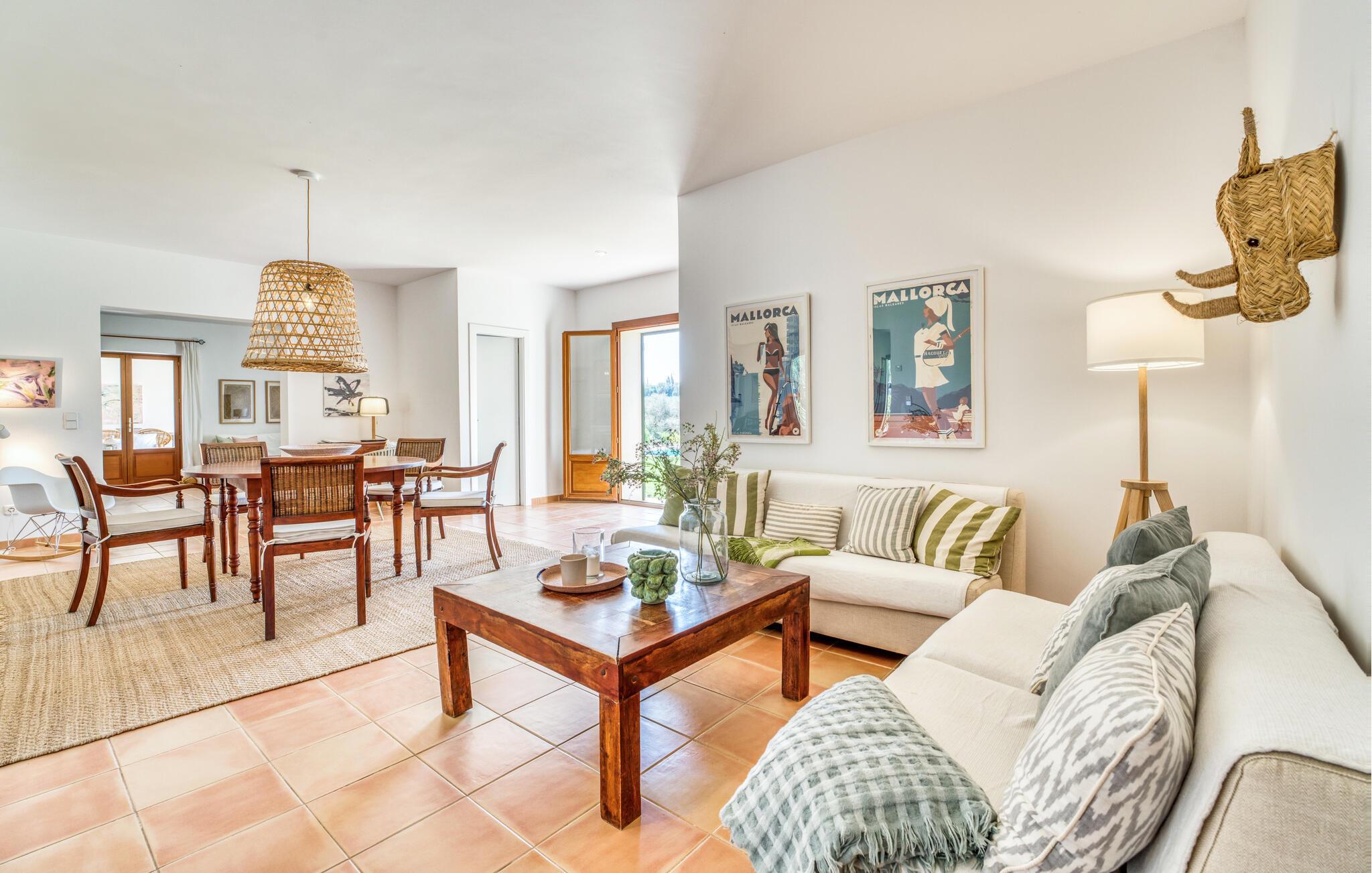 Villaen “Sa Tanca” ligger meget stille og idyllisk i den smukke østlige del af Mallorca, hvor de blidt stigende bakker i Serra Levanten præger et typisk middelhavslandskab, enestående smukt kystlandskab. Her kan I nyde jeres privatliv uden at føle jer begrænset af mure eller hegn. Den lange pool er omgivet af græsplæner, hvor I kan slappe af i solen, og børnene kan løbe rundt og lege. Høje hække giver ekstra komfort og ser attraktive ud på samme tid. Der er en særlig smuk sydvendt siddeplads foran huset. Herfra har I en fantastisk udsigt over haven og kan også fuldt ud nyde Middelhavslyset. Om morgenen eller sent om aftenen – det er et smukt sted med en faktor. I kan slappe af ved det runde spisebord eller nyde et måltid sammen. Om aftenen kan I fejre solide grillfester og tilberede og nyde friske regionale specialiteter på grillen. Poolen er let tilgængelig via en stige. For at beskytte jer, hvis UV-strålingen bliver for stærk, er der to parasoller til rådighed. Uanset tidspunktet på dagen er der altid en luftig, naturlig skygge på ejendommen for at nyde de smukke omgivelser. Der er en parkeringsplads til jeres bil foran huset. I husets lysfyldte interiør kan I forvente et boligareal på 302 m². Lyse vægge harmonerer med terracotta fliserne samt trævinduer og møbler med deres smukke, farverige stoffer. Udvalgte billeder på væggene forskønner rummene. Denne dygtige sammensætning skaber en særlig smagfuld og hyggelig stemning, hvor I hurtigt føler jer hjemme. En stor kombineret stue/spisestue med lille bibliotek og pejs opfylder alle jeres indendørs afslapningsbehov. Et andet indbydende sted at sidde og nyde er en slags vinterhave, som helt kan åbnes til en overdækket terrasse i de varmere måneder og er udstyret med en ekstra sofa og spisebord. Det rummelige, moderne køkken er fuldt udstyret og byder på alt det nødvendige til jeres ferie. Faciliteterne omfatter en opvaskemaskine, en kedel, en italiensk kaffemaskine og en filterkaffemaskine. Fire slående renoverede og klimatiserede soveværelser, hver med sit eget badeværelse, fuldender de afslappende funktioner i dette feriehus. Badeværelserne er lyse og venlige. For nemheds skyld er strygejern og hårtørrer tilgængelige. Fra villaen "Sa Tanca" er der mindre end 4 km til den nærmeste kystby Portocristo, med sin egen fejende havn og strandbugter, over hvilken der er en smuk promenade med butikker, caféer, barer og restauranter. Der er også et ugentligt marked, der er værd at se, og flere store, velassorterede supermarkeder til jeres daglige behov. En udflugt, som I bestemt bør tage på i Portocristo, er de såkaldte Caves of Drac, en unik drypstensgrotte med Europas største underjordiske sø. Ud over denne lille by er der også adskillige fantastiske strande inden for rækkevidde. De er alle fine hvide sandstrande, og de fleste har lavvandet adgang til havet. Villaen tilbyder et ideelt udgangspunkt for en varieret badeferie. Den smukt beliggende villa "Sa Tanca" ligger mindre end 4 km fra porten til den maleriske havneby Portocristo. Talrige strande, de såkaldte "Calas de Mallorca", er meget nemme at nå. Portocristo ligger kun omkring 5 minutter væk i bil, og her finder I alt, hvad I behøver for at shoppe og tilbringe en aften. Bemærk venligst, at denne ejendom ikke accepterer ungdomsgrupper eller polterabender. En ungdomsgruppe på denne ejendom består af personer under 30 år. Book ikke denne ejendom, hvis I er en ungdomsgruppe eller en polterabendgruppe, da jeres reservation vil blive afvist, når den er booket, hvilket også kan være tilfældet ved ankomst til ejendommen eller under jeres ophold, og I vil ikke modtage en refusion.