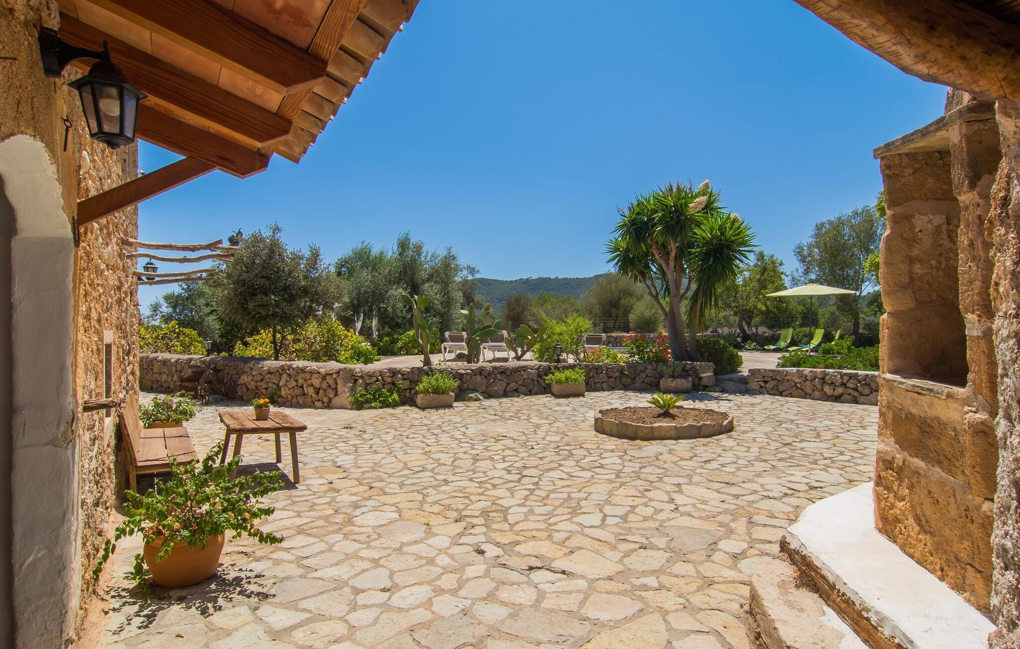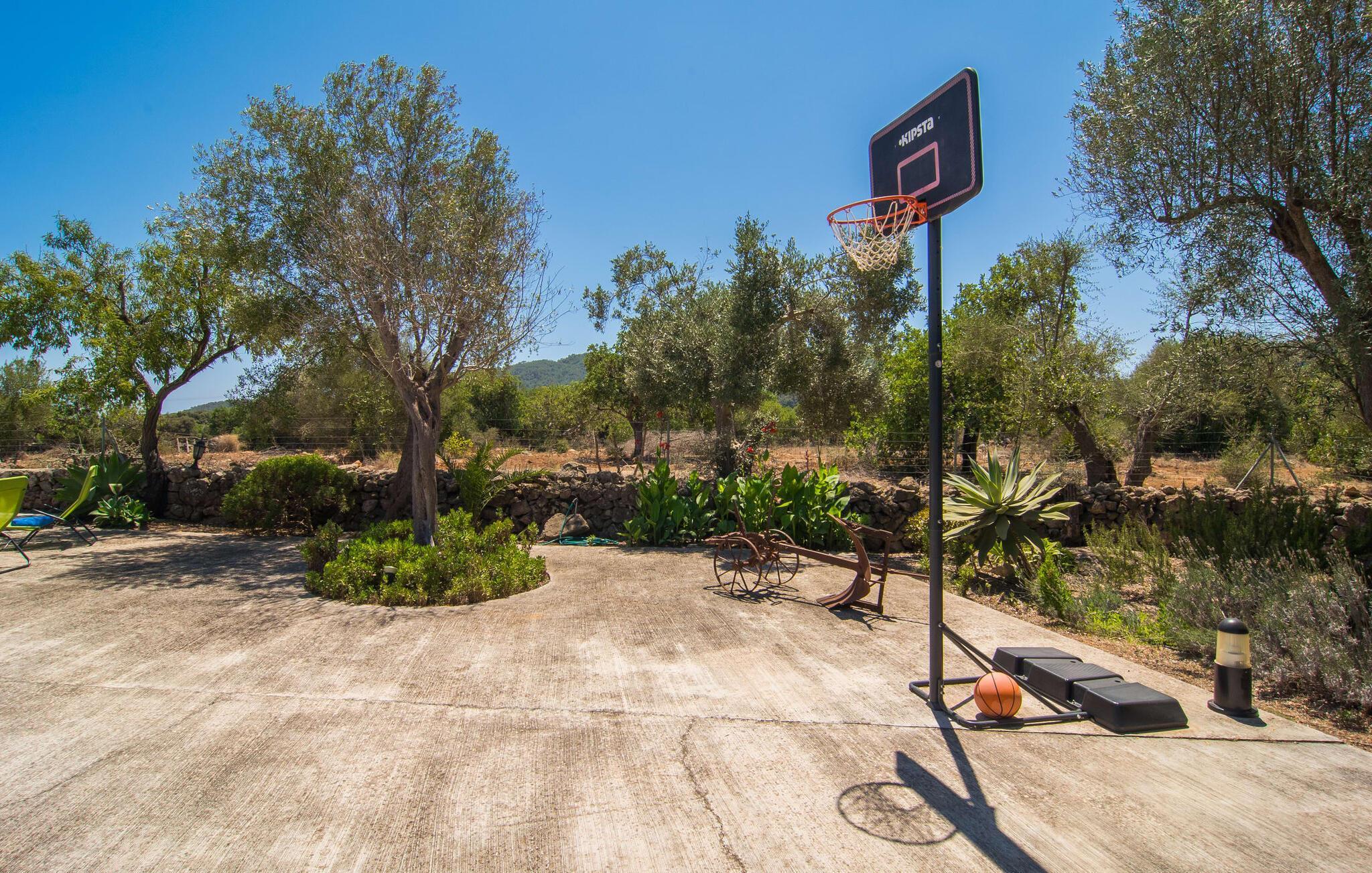 Har I altid drømt om at sove under stjernerne? Så er villaen "Sa Torre de Canyamel" det rigtige sted for jer! Det skønne udendørsområde har den store fordel, at I takket være de mange træer, palmer og kaktusser er i godt selskab, når I bruger udendørssengen en lun aften. Øvinden blæser bestemt ikke så hårdt, at den blæser jer omkuld, som den gjorde i en af Theodor Storms børnehistorier. Det venlige klima er trods alt en af hovedårsagerne til, at en storslået have som denne er et vigtigt kriterium for denne villa: Her kan I boltre jer i poolen lige så meget, I vil, beundre museumsploven, som... har kom fra svundne dage i Snik ind i haven eller brug de hyggelige siddepladser til en hyggelig snak. Særligt attraktivt og typisk for de naturlige grundakkorder, der definerer denne villas karakter, er siddeområdet, hvis træoprindelse stadig tydeligt ses. Der er endda en indbygget grill, hvor I kan tilberede delikatesser beskyttet under en pergola med bambustag og finde alt, hvad I skal bruge til at servere maden. Lille sidestentrappe fører til det lidt højere terrasseområde. Basketkurven giver de mindste mulighed for at slippe dampen ud, mens de spiller. På bænkene foran fincafacadens smukke, landlige murværk kan I lade den varme eftermiddagssol skinne på jeres ansigter.