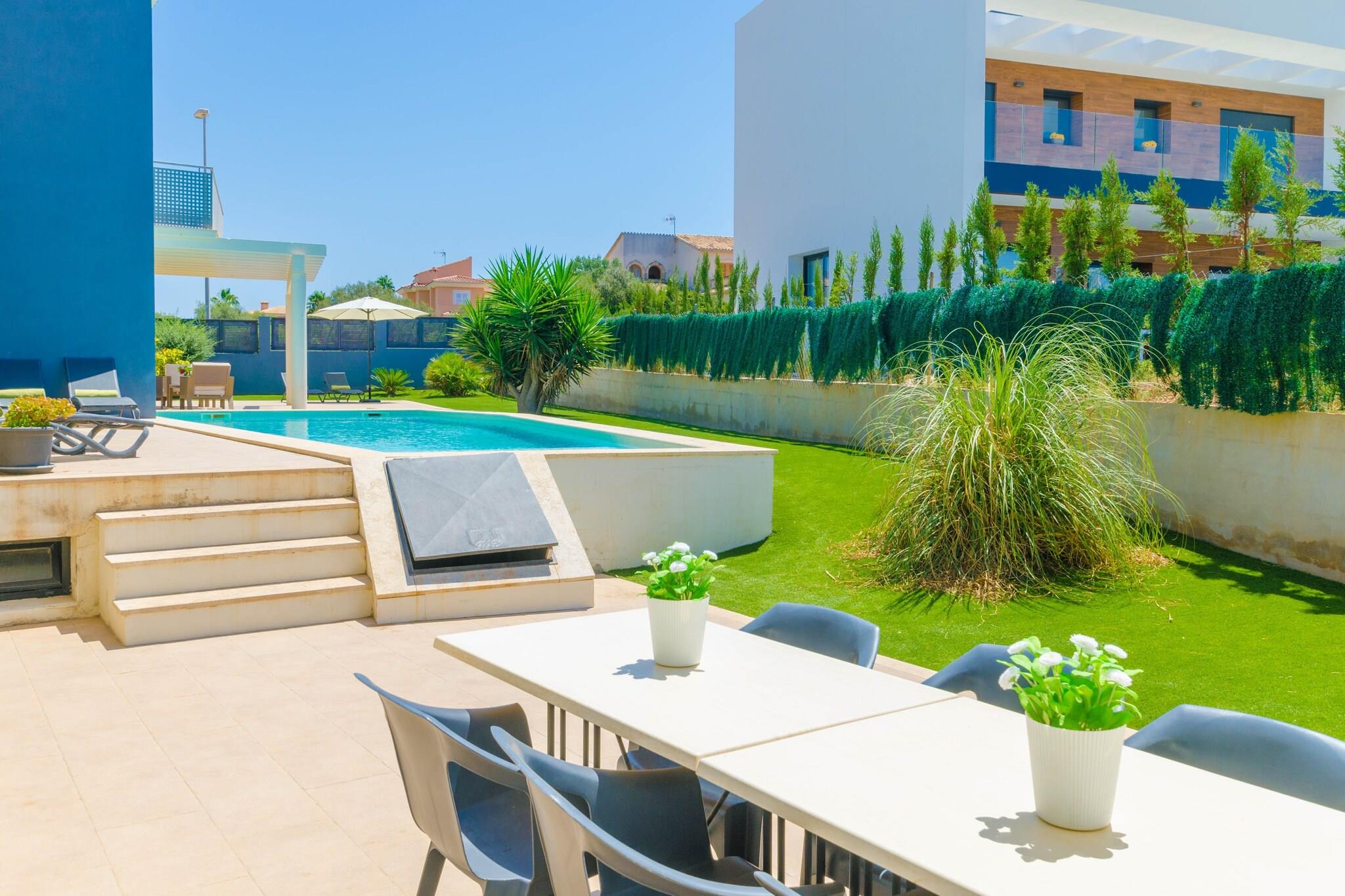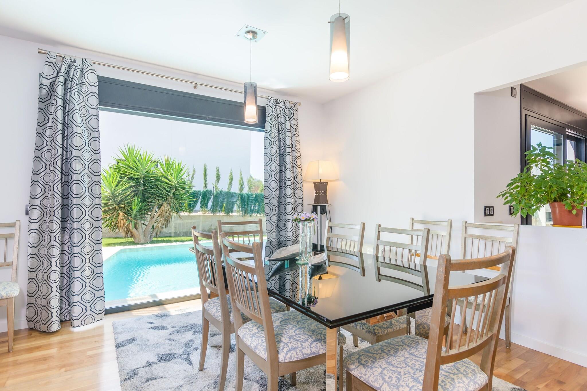 De buitenkant is prachtig, het heeft een chloorzwembad van 13 x 5 m en een diepte variërend van 0,5 tot 1,6 m, 4 ligstoelen, 3 terrassen en een volledig uitgeruste veranda, en zelfs een barbecue voor liefhebbers van buitenkoken. En voor golfliefhebbers is er een kleine golfbaan waar u geweldige momenten kunt doorbrengen. Het huis van 240 m2 verdeeld over 3 verdiepingen heeft 3 slaapkamers, één op de eerste verdieping met een tweepersoonsbed en een en-suite badkamer met douche, en twee op de begane grond met elk een tweepersoonsbed. Ze zijn allemaal voorzien van airconditioning. Er is beschikbaarheid voor een kinderbedje en een kinderstoel. Naast de en-suite badkamer zijn er op de begane grond nog twee badkamers die het hele huis bedienen, waarvan één met douche en toilet. De woon-eetkamer is zeer modern, licht en gezellig en heeft twee banken, een kleine tafel, TV-Sat, een tafel met stoelen en airconditioning. De keuken, onafhankelijk en op gas, is volledig uitgerust om zonder enig probleem te kunnen koken. Er is een wasmachine, strijkijzer en strijkplank. Sa Torre is een urbanisatie die behoort tot Llucmajor. Het is een zeer rustige omgeving en zeer goed verbonden. In de omgeving vindt u alles wat u nodig heeft tijdens uw verblijf. Op slechts 1 km afstand vindt u de Maioris Golf en op 8 km van het strand van S'Arenal. Palma is een hele mooie en gastvrije stad, waar je allerlei lokale en internationale bedrijven vindt. Winkelliefhebbers kunnen genieten van verschillende winkelcentra en een grote hoeveelheid winkels. Zowel 's avonds als overdag is er een grote verscheidenheid aan entertainment. Overdag kunt u door de prachtige centrale straten van de stad wandelen, de kathedraal "La Seu" bezoeken met een prachtig uitzicht op de zee, langs de boulevard wandelen, een ritje maken op een kombuis of fiets, verschillende musea of ??kunstgalerijen bezoeken, het "Castell de Bellver", enz. En 's avonds vindt u verschillende tapasbars, clubs, bars, pubs, enz. Met de auto kunt u prachtige stranden bereiken en nabijgelegen steden bezoeken, zoals onder andere Esporles of Valldemossa. Aan de rand van de stad zijn er verschillende waterparken zoals Aqualand, Westernpark en een bezoek aan Palma Aquarium mag je niet missen. Er zijn golfclubs en ballen. Voor eventuele extra kosten kunt u contact opnemen met de adverteerder. Wij accepteren geen huisdieren. Het vieren van evenementen is niet toegestaan. Er is buiten parkeergelegenheid voor 1 auto. Afstanden Strand: 7,9 km - S'Arenal Luchthaven: 15,6 km - Son Sant Joan Golfbaan: 1,2 km - Golf Maioris Stad: 0,001 km - Sa Torre Treinstation: 23,3 km - Palma Bushalte: 0,290 km - Av. Regne de Mallorques (Sa Torre) Veerboot: 23,1 km - Palma Ziekenhuis: 20,1 km - Son Epases Toeristenvergunning: ETV/3401 Bij de ingang moet u de Ecotasa (toeristenbelasting van de Balearen) contant betalen. Het bedrag varieert tussen EURO 0,55 / per nacht per persoon in het laagseizoen en EURO 2,2 / per nacht per persoon in het hoogseizoen. Vanaf de negende dag wordt het met de helft verminderd. Personen onder de 16 jaar uitgesloten. Bij de ingang dient u de borg rechtstreeks aan de eigenaar te betalen.