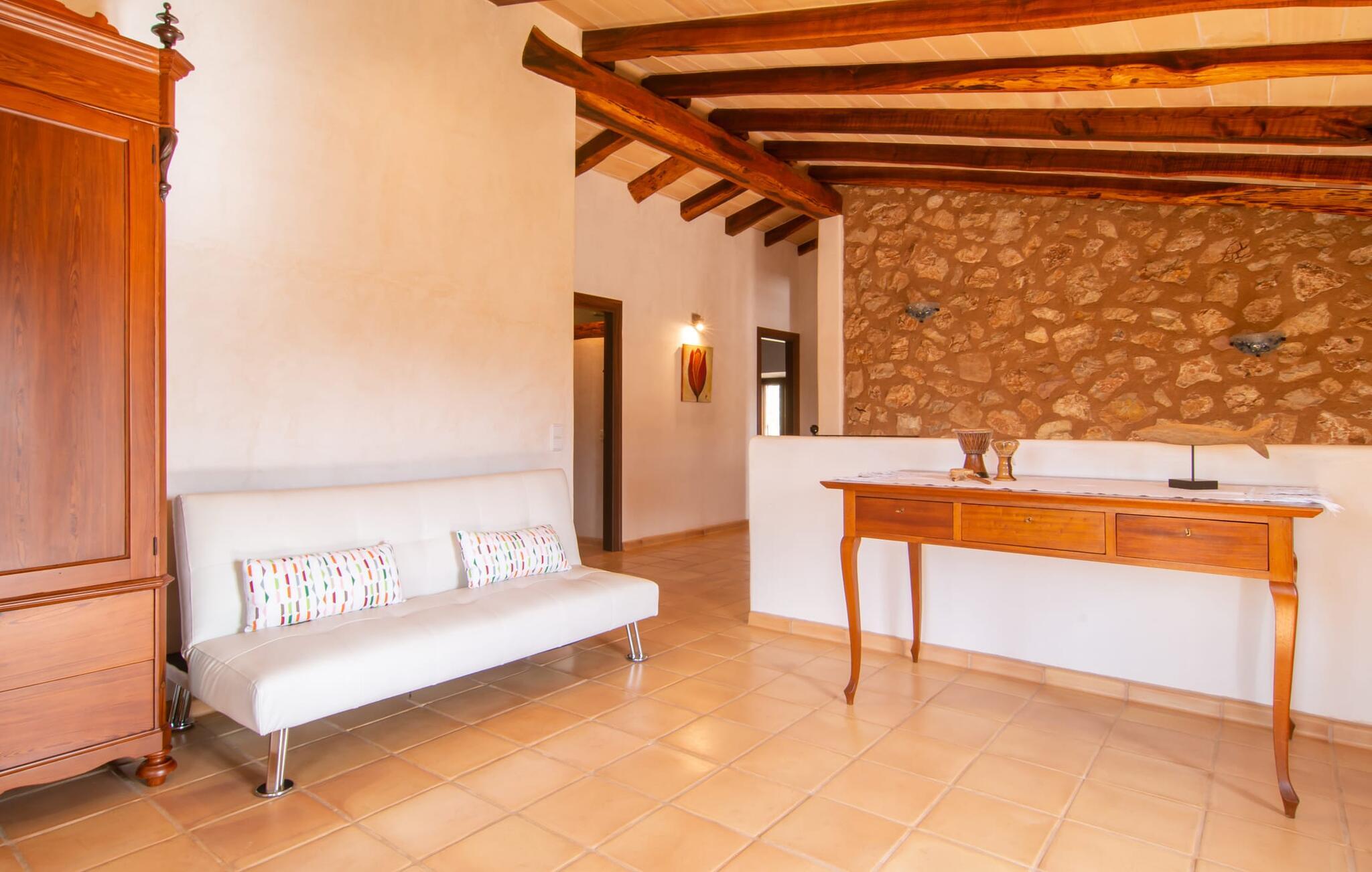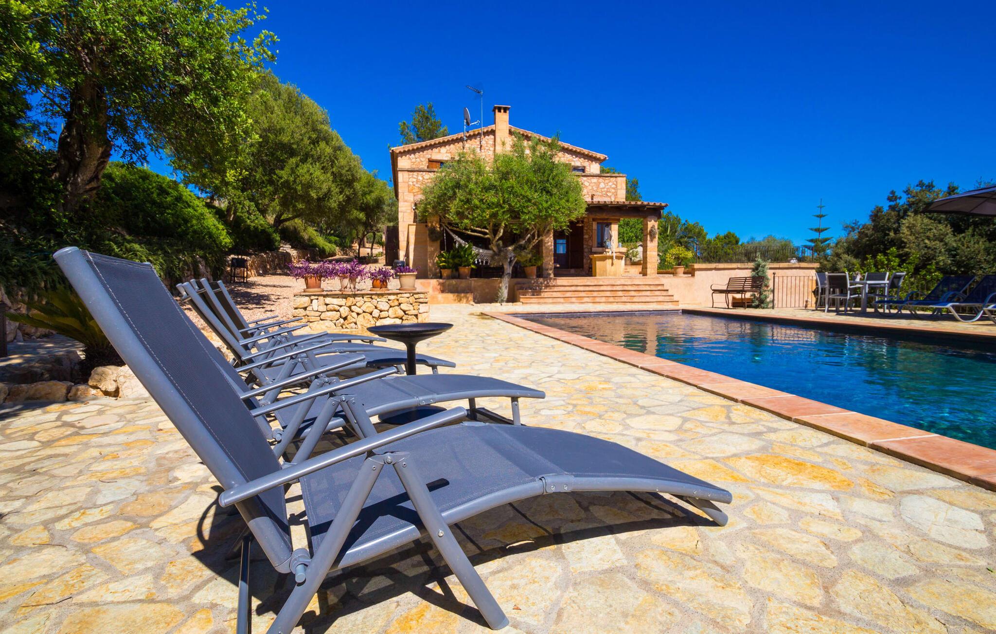 Bemærk - dette er en ejendom for elskere. For elskere af god smag og levende æstetik, der vil bemærke fra første øjeblik, de træder ind i ejendommen, at denne villa opfylder deres behov. Det smukke område er præget af en helt speciel stemning; Den er designet, så den omgiver huset som en meget smuk have med frodige træer og emmer af en hyggelig idyl. Blomster og grønne planter i bede, små vægge, terrassearealer på adskilte plan og individuelle dekorative stykker skaber et indbydende helhedsbillede. Udendørsområdets virkelige blikfang er naturligvis den imponerende pool med en længde på 12 m. Den har trapper for meget behagelig adgang og er stemningsfuldt oplyst om natten. Solterrassen, belagt med natursten, ligger lige ved siden af poolen; De komfortable liggestole inviterer jer til at slappe af af hjertens lyst under middelhavshimlen. De to medfølgende parasoller beskytter jer mod overdreven UV-stråling. Andre indbydende siddemuligheder på den store terrasse omfatter sofaen og det lille bord, som kan rumme middag for op til fire personer. Terrassen, designet med flodsten, byder ikke kun på masser af siddepladser, men også en sensationelt smuk udsigt over poolområdet og videre. Hvis I har lyst, skal I bare slappe af i hængekøjen og lade blikket vandre i det fjerne. Grillen inviterer jer til at nyde solide grillaftener, hvor I kan nyde de udsøgte regionale specialiteter, som I måske har købt på markedet tidligere på dagen. Den skønne altan på øverste etage giver endnu en mulighed for uforstyrret solbadning. Det er simpelthen skønt at sidde her ved solopgang eller solnedgang og nyde den fantastiske udsigt. Fra terrassen i stueplan kommer I ind i huset gennem to dobbeltdøre. Denne indgang fører til det store køkken-alrum, som byder på et behageligt rum til at blive hængende og tilberede og nyde måltider sammen. Køkkenet er rummeligt nok til også at rumme et stort solidt spisebord, der kan rumme op til otte personer til middag. Det moderne køkken er let at rengøre og fuldt udstyret, inklusive en filterkaffemaskine og elkedel. En stor gang, som kan lukkes med en glasskydedør, fører til den hyggelige stue. Forskellige komfortable sofaer og lænestole giver jer mulighed for at slappe af og måske ikke gøre noget i et stykke tid. De massive synlige bjælker udstråler en hjemlig og rustik atmosfære og inviterer jer til at blive hængende. Rent praktisk kan pejsen også bruges og ses fra spise- og opholdsstue. I den kølige årstid kan I finde jer tilpas ved den knitrende pejs og varme jer op, mens I kigger ind i de dansende flammer. Tre brede trin fører fra opholdsrummet ind i gangen og opgangen, der gør et herskabeligt indtryk med sin naturstensvæg og markante støttepiller. Dobbeltværelserne formidler en elegant charme og imponerer med lyse farver, der er dygtigt kombineret med nogle førsteklasses kontraster. Badeværelserne med dagslys imponerer med deres meget individuelle, funktionelle og moderne design. De smukkeste strande på Mallorca, den berømte Calas de Mallorca, kan også nemt nås fra villaen "Sa Tartova". Nogle af de følgende strande er rigtige insider-tips med uberørt karakter. Efter en vellykket dag fuld af ferieaktiviteter, kan I slappe af i privatlivets fred i jeres egen villa, måske svømme et par strækninger og afslutte dagen med lyst. Villaen "Sa Tortava" er en særlig slående ferieejendom, der opfylder selv de højeste standarder for komfort og stil. Det har en idyllisk beliggenhed, kun omkring 3 kilometer sydøst for centrum af Manacor. Manacor har en god infrastruktur. En af de bedste strande i nærheden er Cala Mendia, omkring 13 km væk. Køreturen til Palma de Mallorca Lufthavn tager cirka 45 minutter.