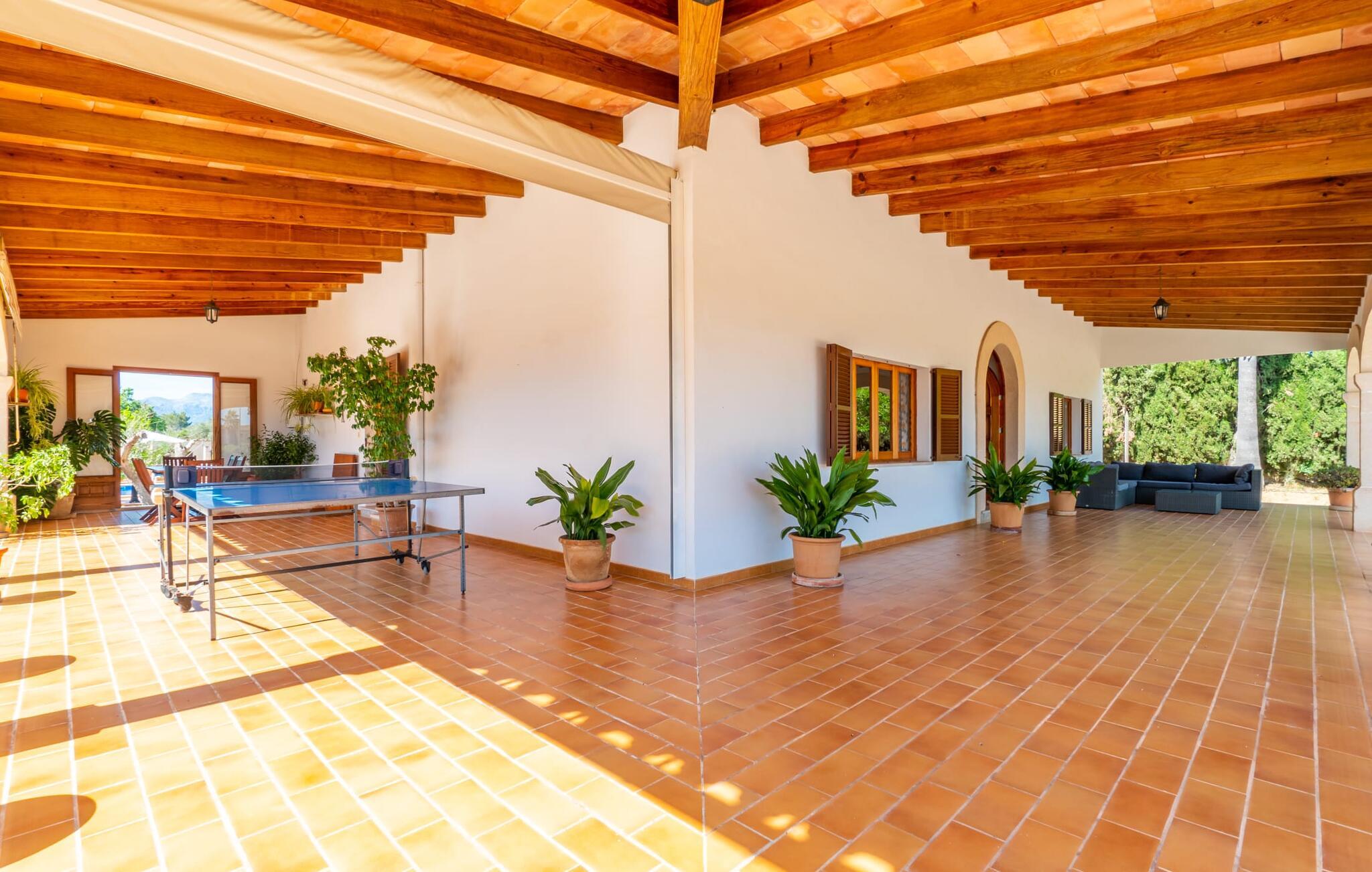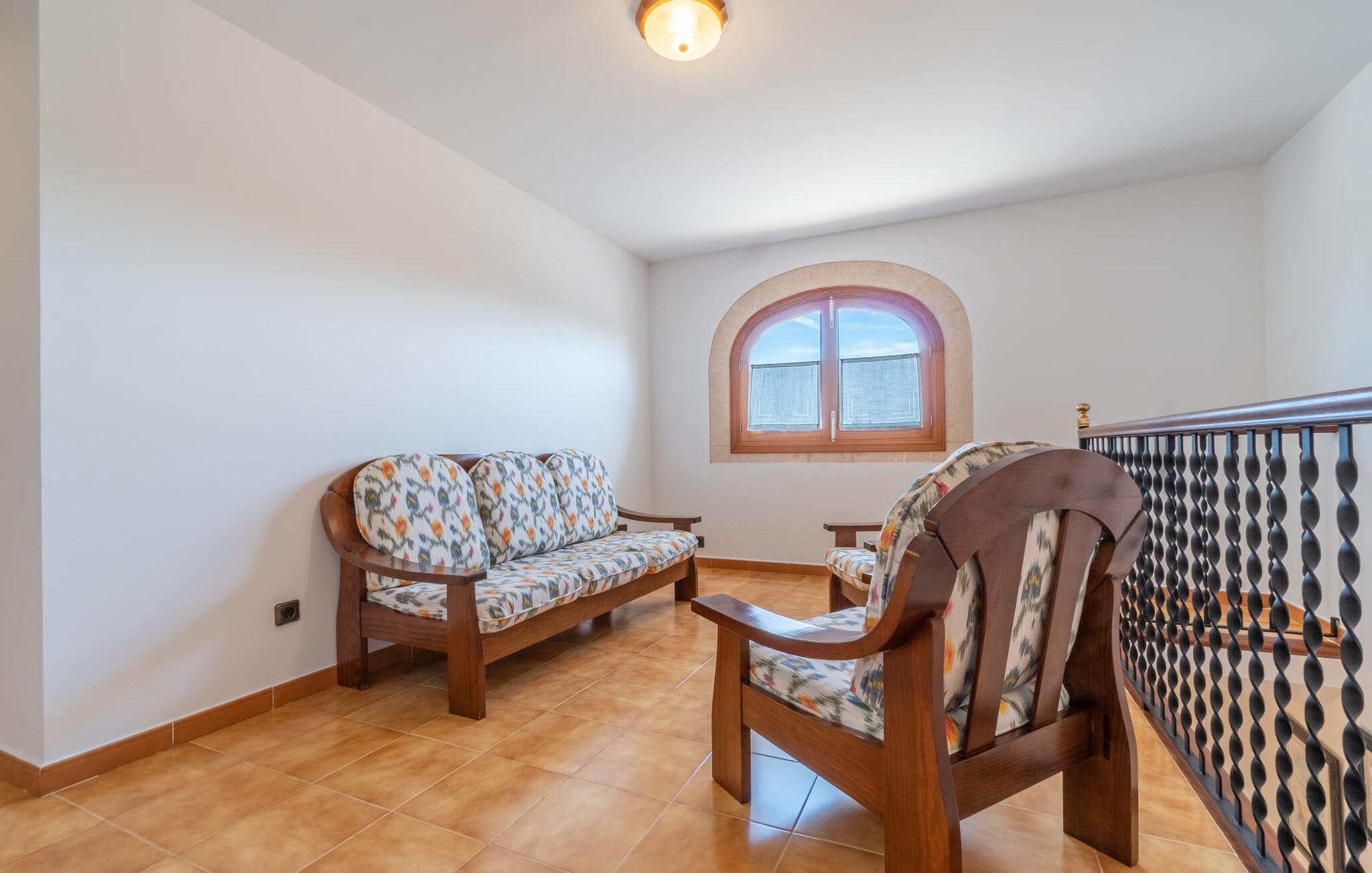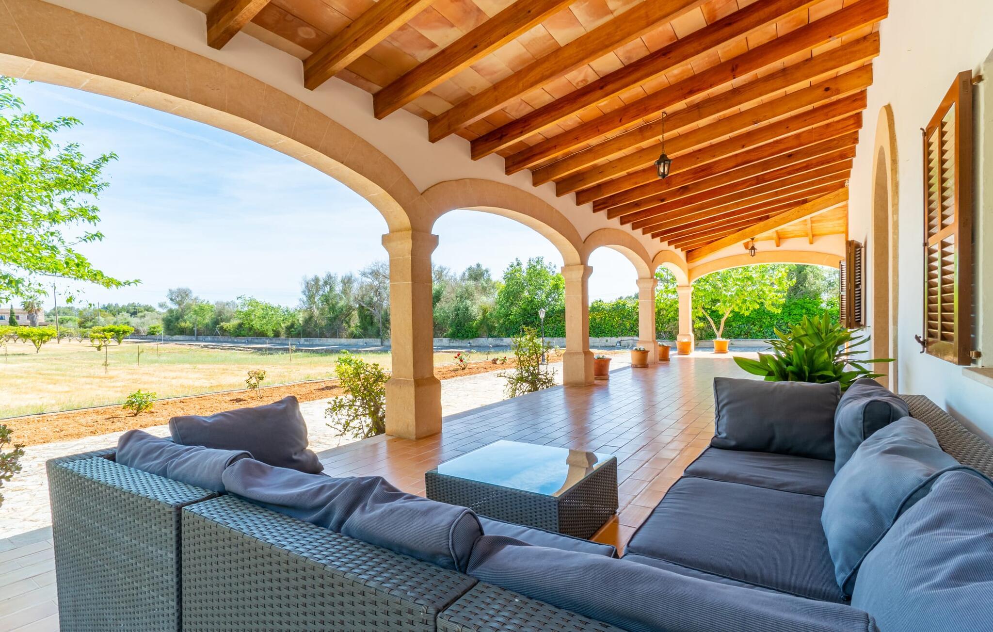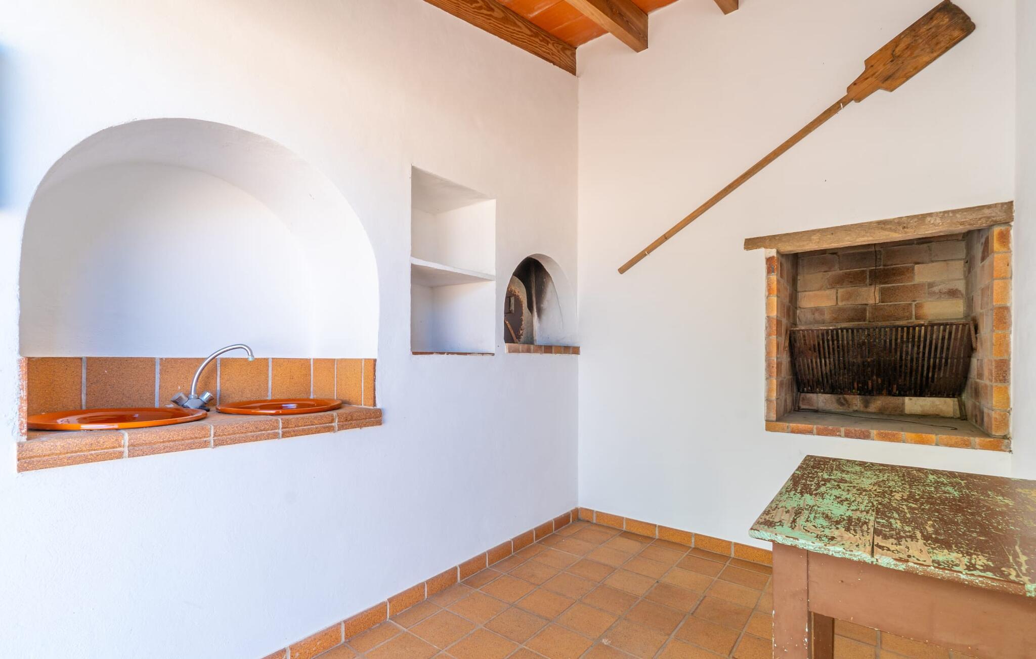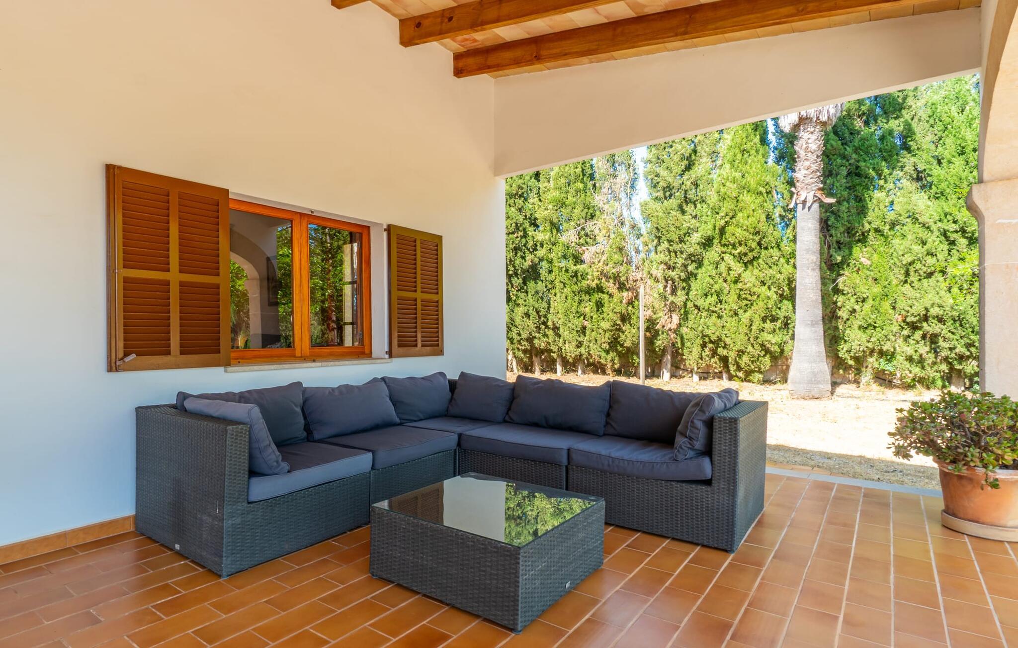 Det charmerende bondehus "Sa Vileta" skinner i solen. Det familievenlige feriehus er omgivet af en oaselignende have. Dette er naturligt dyrket med masser af græsplæner og et imponerende antal frugttræer. Der er også frodige blomstrende planter på de brolagte terrassearealer og omkring det rummelige poolområde. Det er ikke kun swimmingpoolen med rutsjebane, der er et højdepunkt for hele familien. De mange legemuligheder i haven samt bordtennisbordet og basketballkurven er virkelige højdepunkter for jeres børn. I mellemtiden kan voksne slappe af på liggestolene. Om aftenen kan I bruge grillen til en lækker BBQ. De to overdækkede terrasser med deres indbydende kurvebuer inviterer jer til at tilbringe jeres dyrebare ferietid hele dagen lang. Venner er hjerteligt velkomne. Det fantastisk beliggende stuehus afspejler den landlige atmosfære indenfor. Det hyggelige og rustikke feriehus byder på en harmonisk atmosfære. Terracotta og træ kombineres med moderne boligkomfort. Det fuldt udstyrede køkken på landet og den indendørs spisestue inviterer jer til at nyde måltider sammen. Tre badeværelser muliggør familievenlig brug for op til otte personer. Udover opholdsstue med TV er der fire lyse soveværelser med enkelt- eller dobbeltsenge. De lyse værelser tilbyder en smuk udsigt over den beroligende stilhed i den naturlige have. Takket være det varme-kolde klimaanlæg er der altid en behagelig temperatur i stuehuset. Det fremragende tekniske udstyr gør det også muligt at bruge det på hjemmekontoret. Kombiner ferie med arbejde og drag fordel af den kreative atmosfære i "Sa Vileta"-gården. Det familievenlige bondehus "Sa Vileta" er beliggende i en oase-lignende have i landlige omgivelser og alligevel kun få minutter fra den traditionelle landsby Sencelles. I nyder to gange af den behagelige centrale beliggenhed midt på øen: Der er kun 30 minutter i bil til øens hovedstad Palma eller den lange bugt Alcúdia med sine vidunderlige sandstrande.