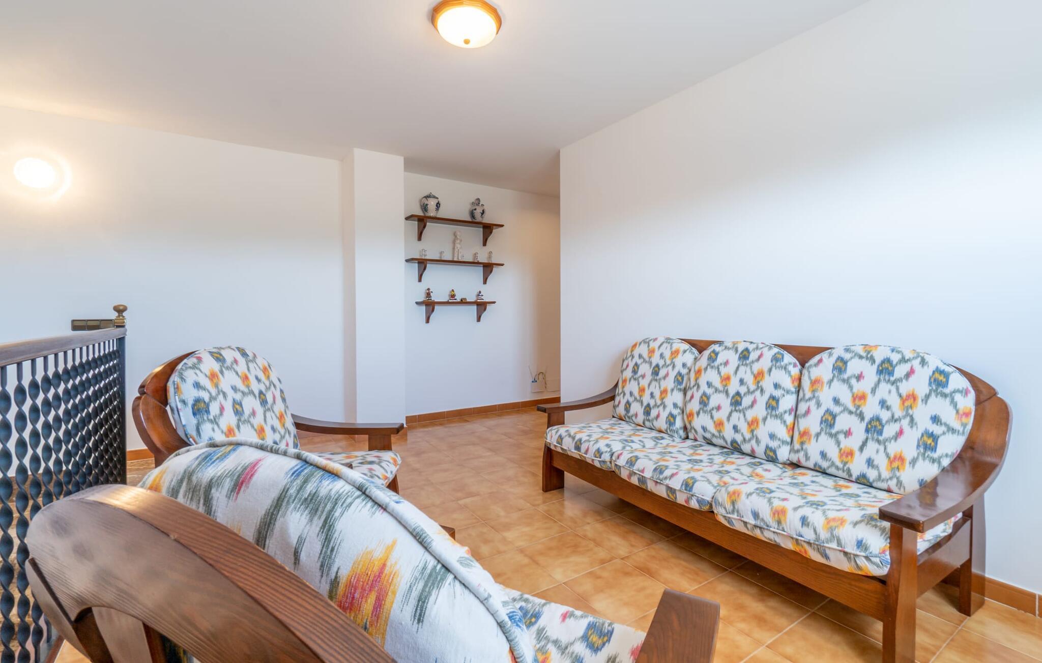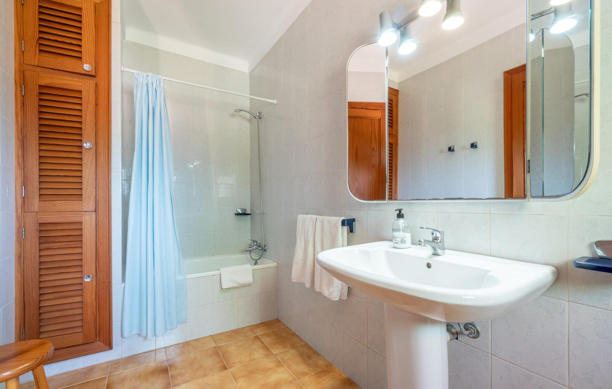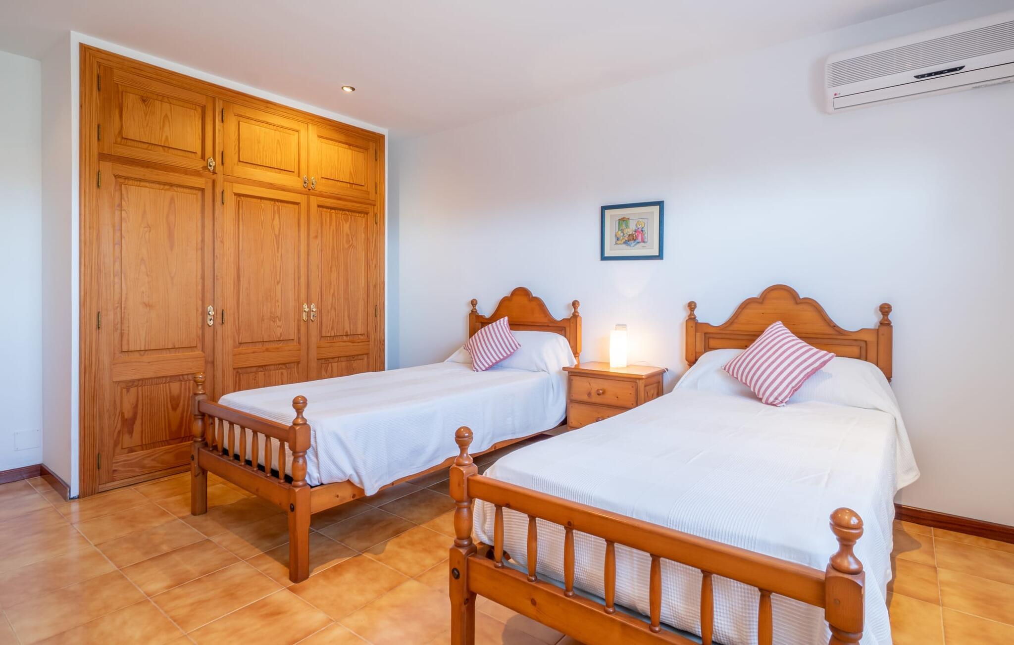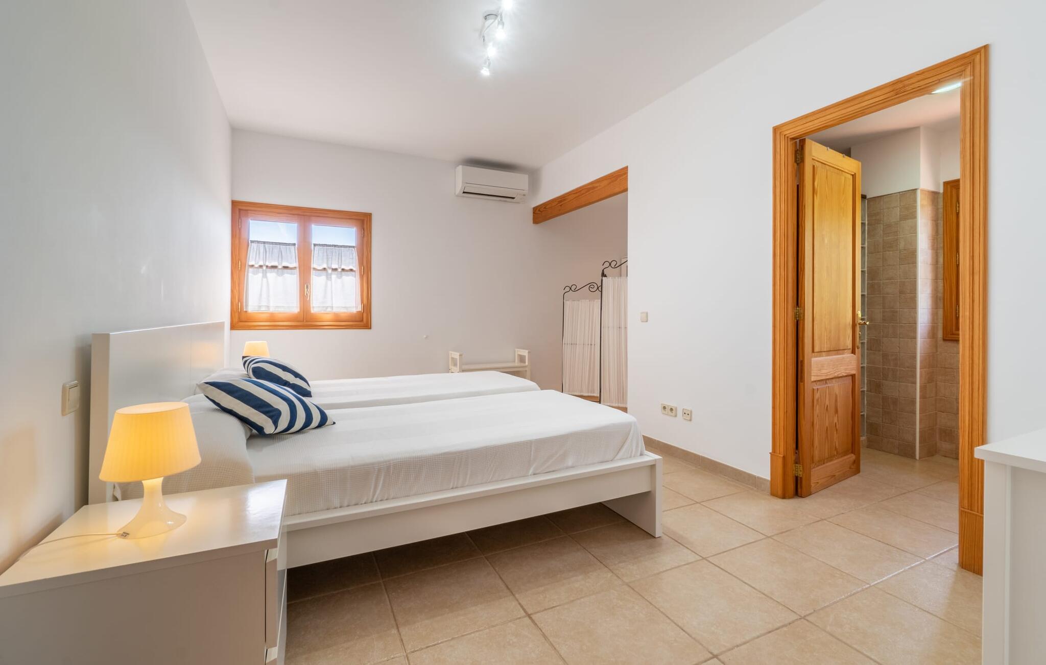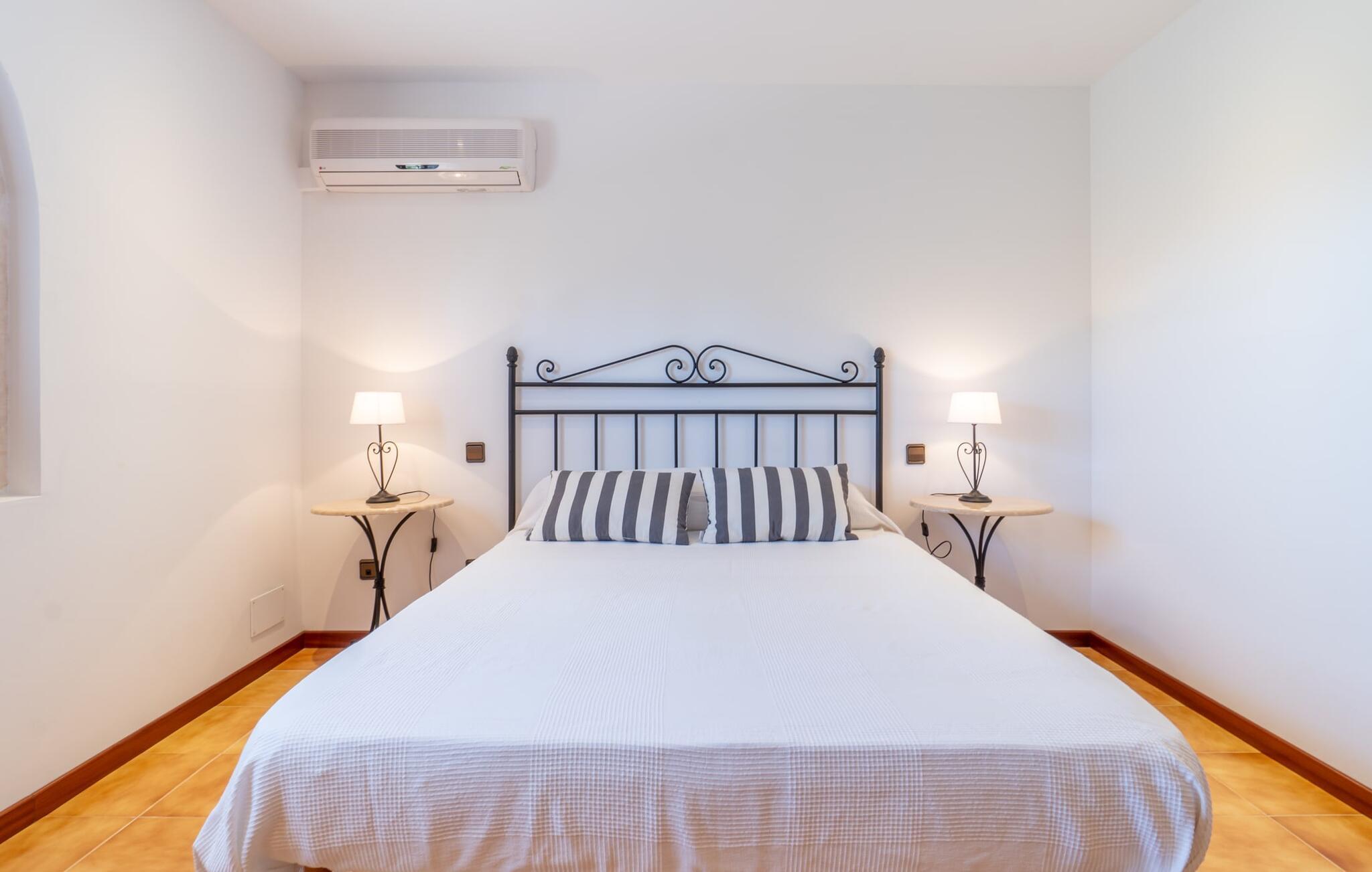 Det charmerende bondehus "Sa Vileta" skinner i solen. Det familievenlige feriehus er omgivet af en oaselignende have. Dette er naturligt dyrket med masser af græsplæner og et imponerende antal frugttræer. Der er også frodige blomstrende planter på de brolagte terrassearealer og omkring det rummelige poolområde. Det er ikke kun swimmingpoolen med rutsjebane, der er et højdepunkt for hele familien. De mange legemuligheder i haven samt bordtennisbordet og basketballkurven er virkelige højdepunkter for jeres børn. I mellemtiden kan voksne slappe af på liggestolene. Om aftenen kan I bruge grillen til en lækker BBQ. De to overdækkede terrasser med deres indbydende kurvebuer inviterer jer til at tilbringe jeres dyrebare ferietid hele dagen lang. Venner er hjerteligt velkomne. Det fantastisk beliggende stuehus afspejler den landlige atmosfære indenfor. Det hyggelige og rustikke feriehus byder på en harmonisk atmosfære. Terracotta og træ kombineres med moderne boligkomfort. Det fuldt udstyrede køkken på landet og den indendørs spisestue inviterer jer til at nyde måltider sammen. Tre badeværelser muliggør familievenlig brug for op til otte personer. Udover opholdsstue med TV er der fire lyse soveværelser med enkelt- eller dobbeltsenge. De lyse værelser tilbyder en smuk udsigt over den beroligende stilhed i den naturlige have. Takket være det varme-kolde klimaanlæg er der altid en behagelig temperatur i stuehuset. Det fremragende tekniske udstyr gør det også muligt at bruge det på hjemmekontoret. Kombiner ferie med arbejde og drag fordel af den kreative atmosfære i "Sa Vileta"-gården. Det familievenlige bondehus "Sa Vileta" er beliggende i en oase-lignende have i landlige omgivelser og alligevel kun få minutter fra den traditionelle landsby Sencelles. I nyder to gange af den behagelige centrale beliggenhed midt på øen: Der er kun 30 minutter i bil til øens hovedstad Palma eller den lange bugt Alcúdia med sine vidunderlige sandstrande.
