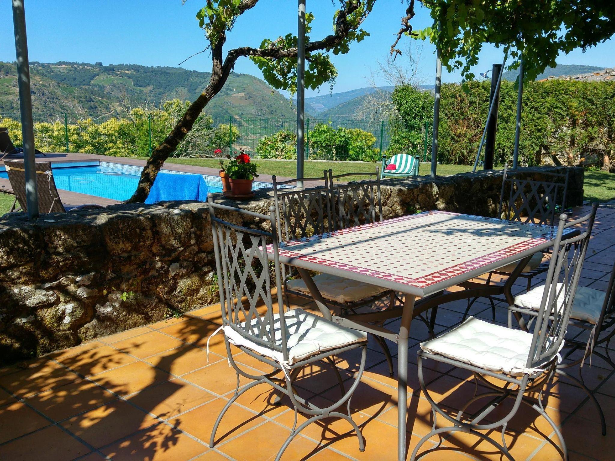 Die Terasse ist sehr groß und ist in der warmen Jahreszeit unser "Speisezimmer", unter dem Weinlaub kann man die Mahlzeiten oder den Abend mit Blick in's valley. In the courtyard there is a large open-air kitchen with a gas hob, sink, workstation and a large charcoal barbecue. This means you can cook outdoors and keep unpleasant odours outside. Many activities are possible: