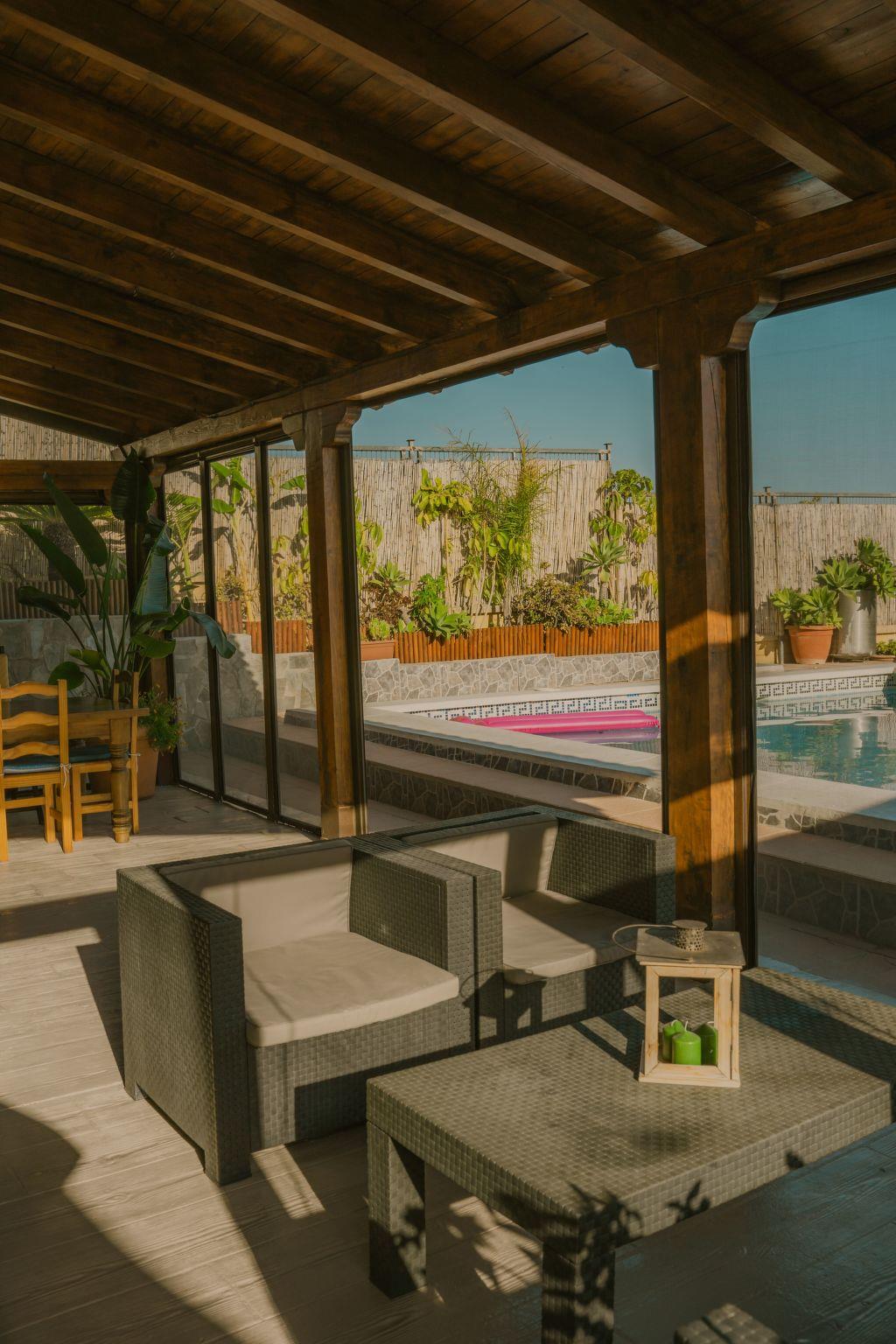 In front of the pool we have a wooden porch with a dining table and a small relaxation area, completely closed by mosquito nets so you can enjoy the whole day.