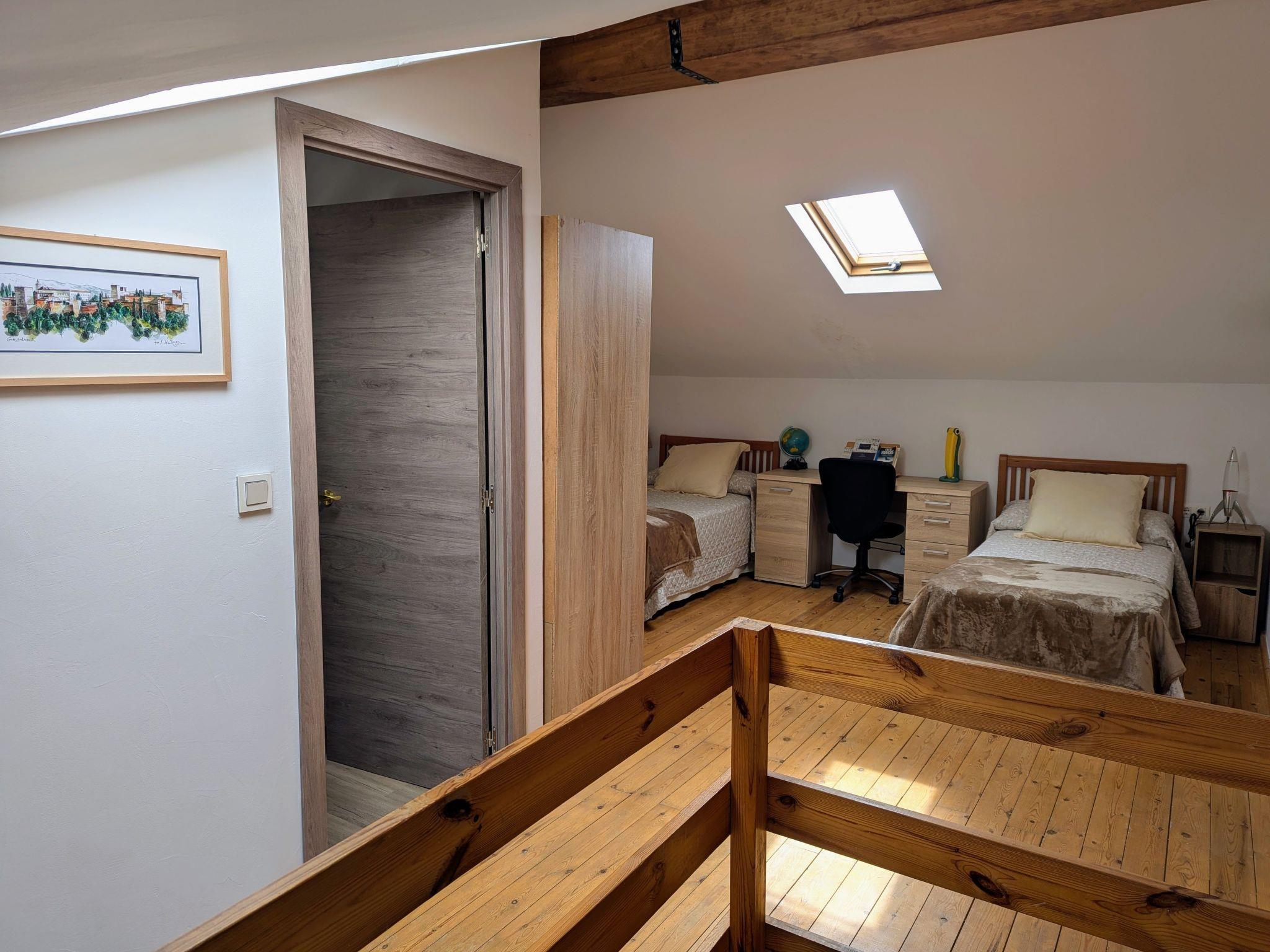 The ground floor of the house houses a spacious living room, kitchen with sofa bed, dining table, television and 5.1 audio system to enjoy movies and music. We also have a bar that divides the kitchen area where we have everything we need to cook.