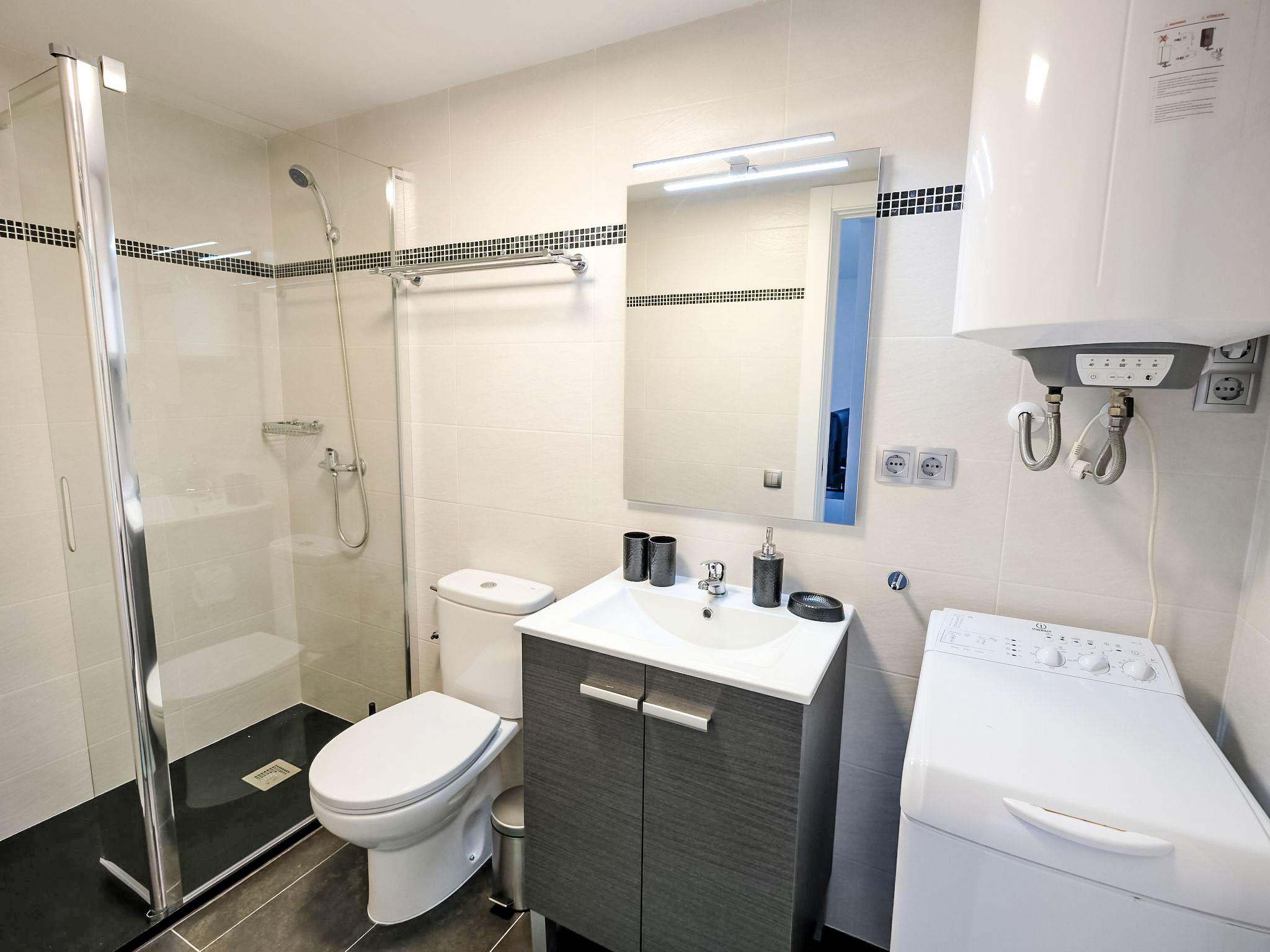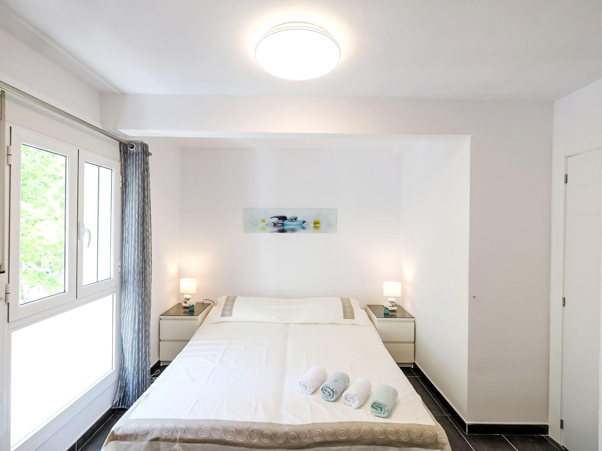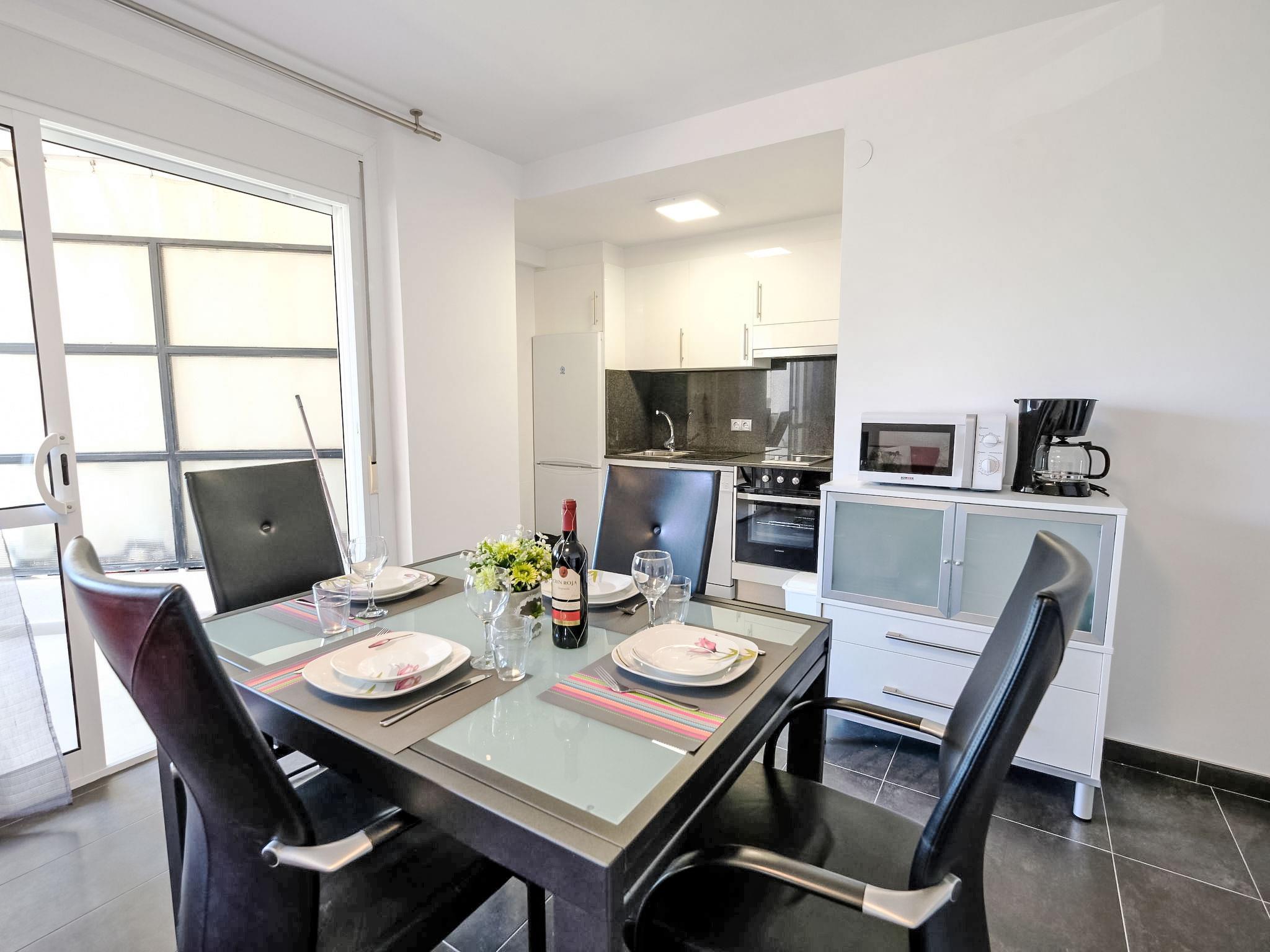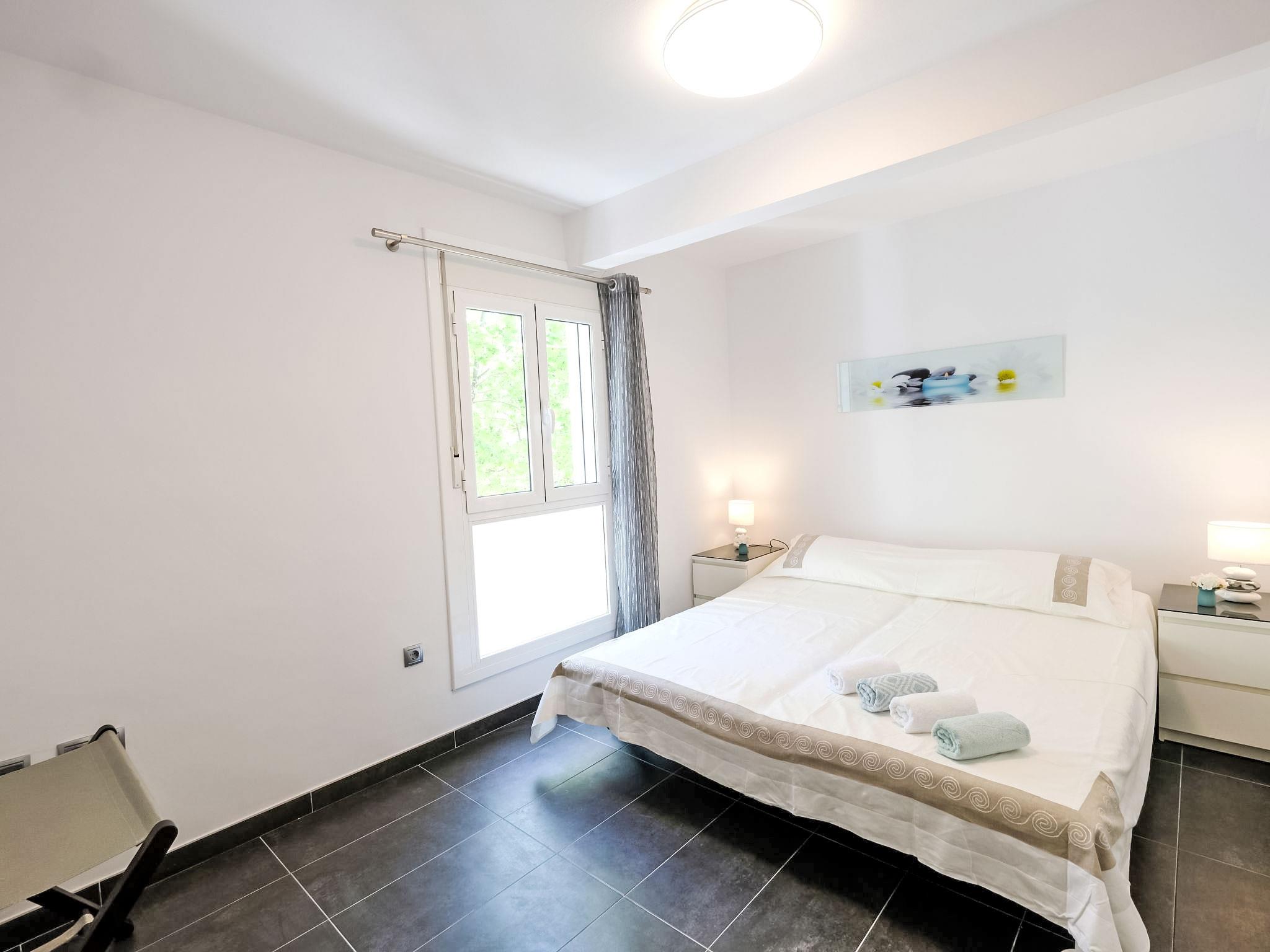 "Formentor II", 2-room apartment 37 m2. Object suitable for 2 adults + 2 children. Bright, fully renovated in 2018, practical and comfortable furnishings: living/dining room with 2 sofabeds (70 cm, length 180 cm), digital TV, flat screen and air conditioning. Exit to the terrace. 1 room with 2 beds (90 cm, length 190 cm). Small, open kitchen (oven, dishwasher, 2 ceramic glass hob hotplates, toaster, kettle, microwave, electric coffee machine) with boiler (76 litres). Shower/WC. Heating not available in all rooms. Balcony. Terrace furniture. View of the sea. Facilities: washing machine, iron, hair dryer. Internet (WiFi). Please note: non-smokers only. Maximum 1 small pet/ dog allowed. HUTT-034546 // Reg. Nr.: ESFCTU00004302400019645200000000000000000HUTT-0345464