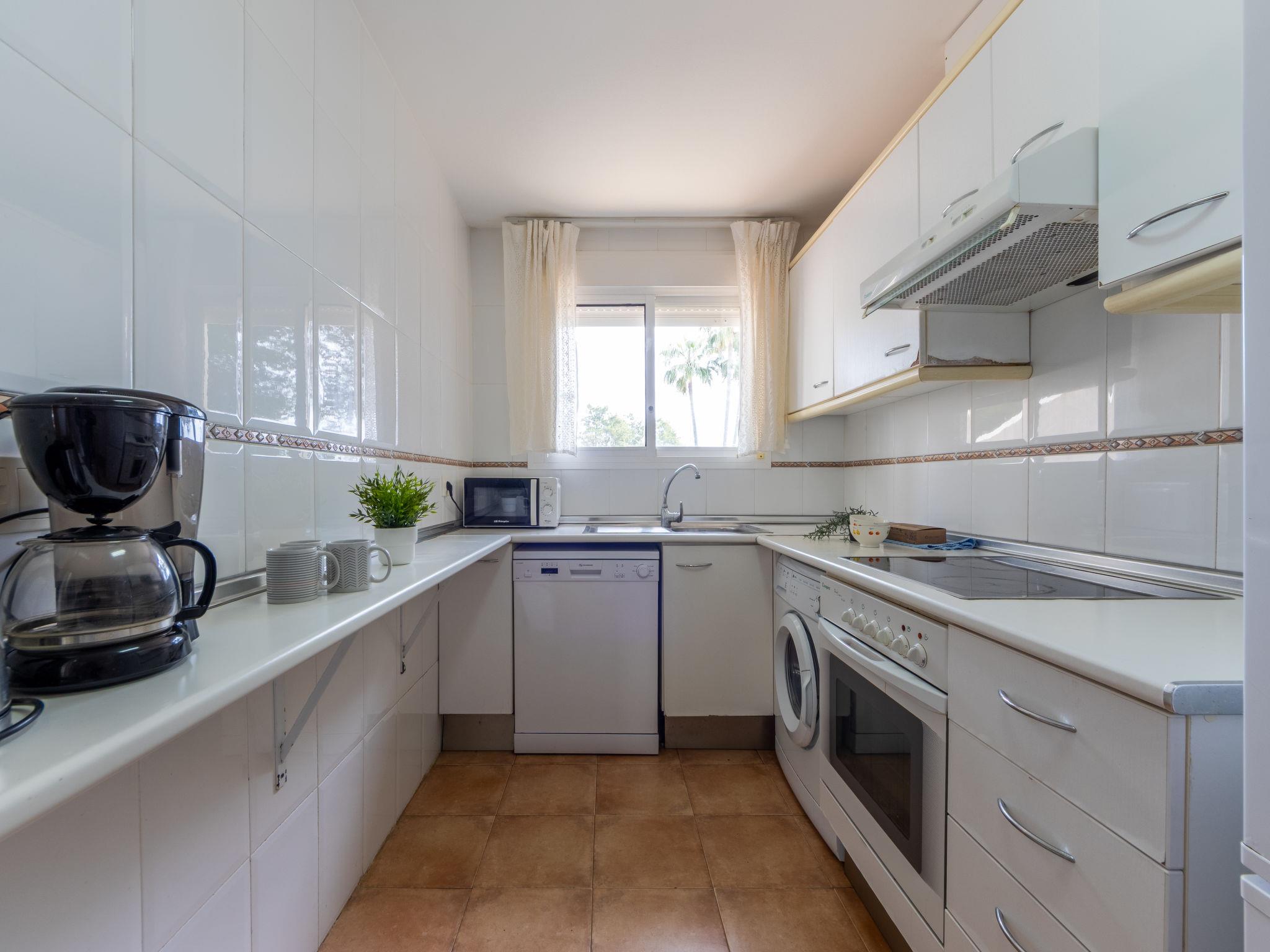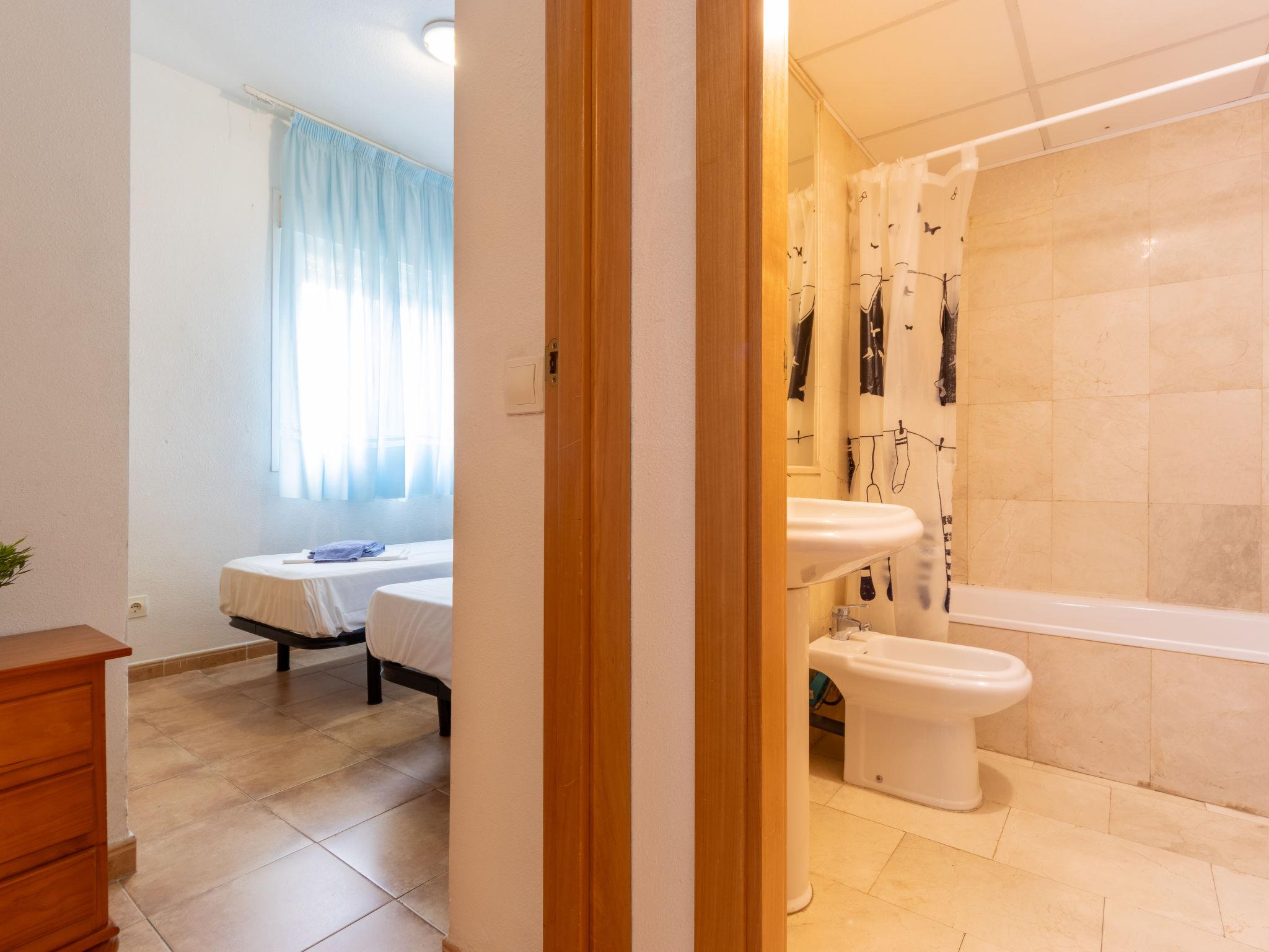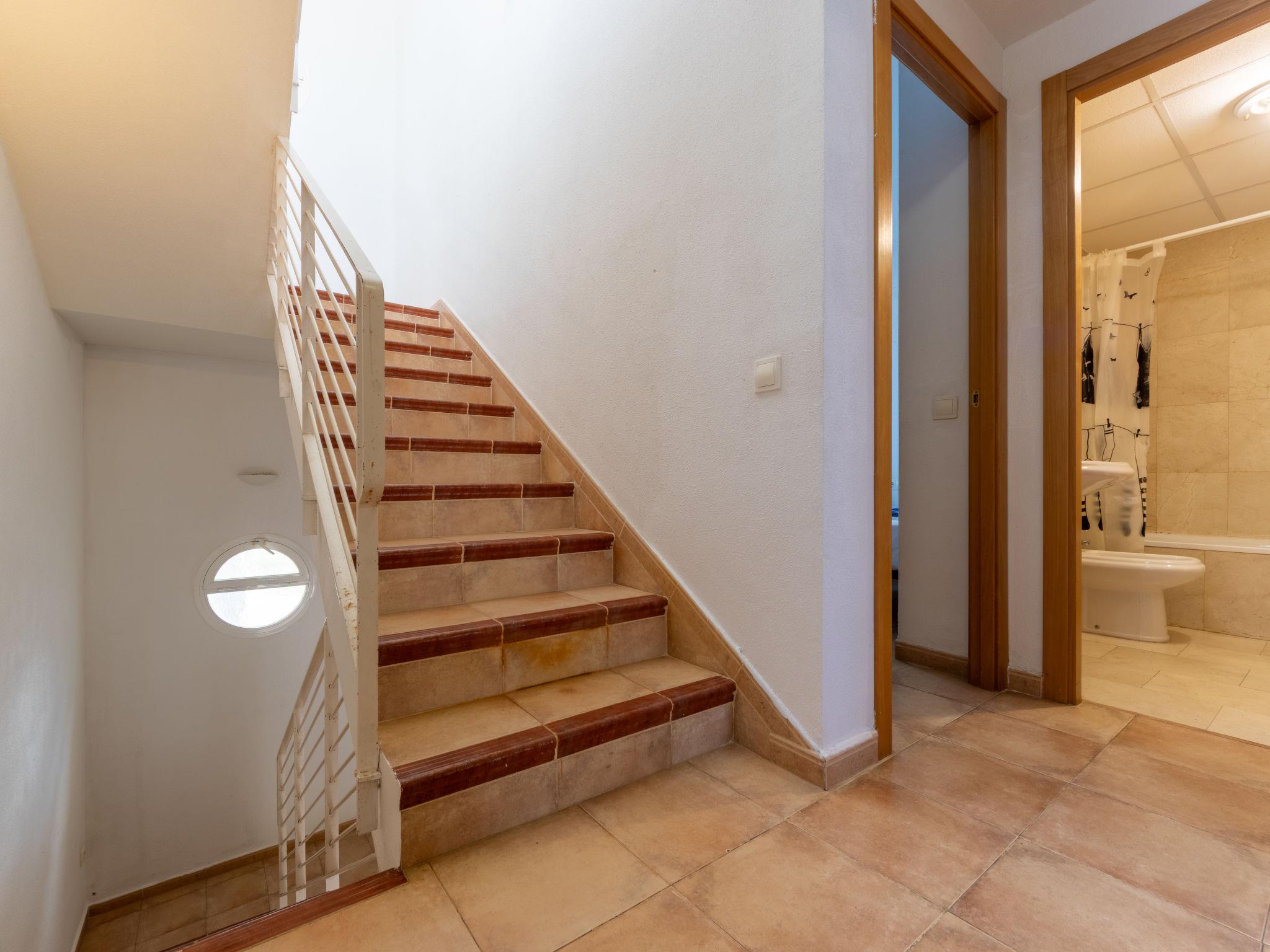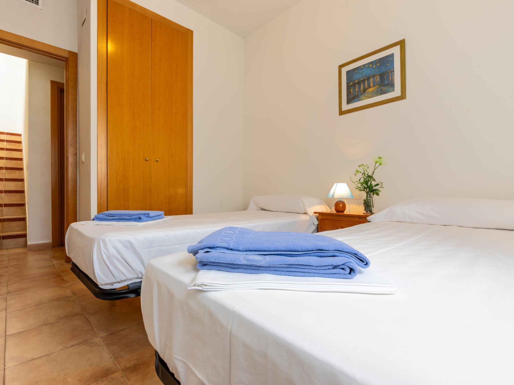 "Zona Estival", 4-room terraced house 120 m2 on 3 levels. Object suitable for 6 adults. Practical furnishings: living/dining room 20 m2 with dining table, digital TV and flat screen. Exit to the terrace. Kitchen (oven, dishwasher, 4 ceramic glass hob hotplates, microwave, freezer). Shower/WC. Heating, air-conditioning. Upper floor: 3 rooms, each room with 2 beds (90 cm). Bath/bidet/WC. Terrace 27 m2. Terrace furniture, barbecue. Facilities: washing machine, iron. Parking space n 82. Please note: non-smoking house. TV only ES. HUTT006505 // Reg. Nr.: ESFCTU000043024000670327000000000000000000HUTT0065051