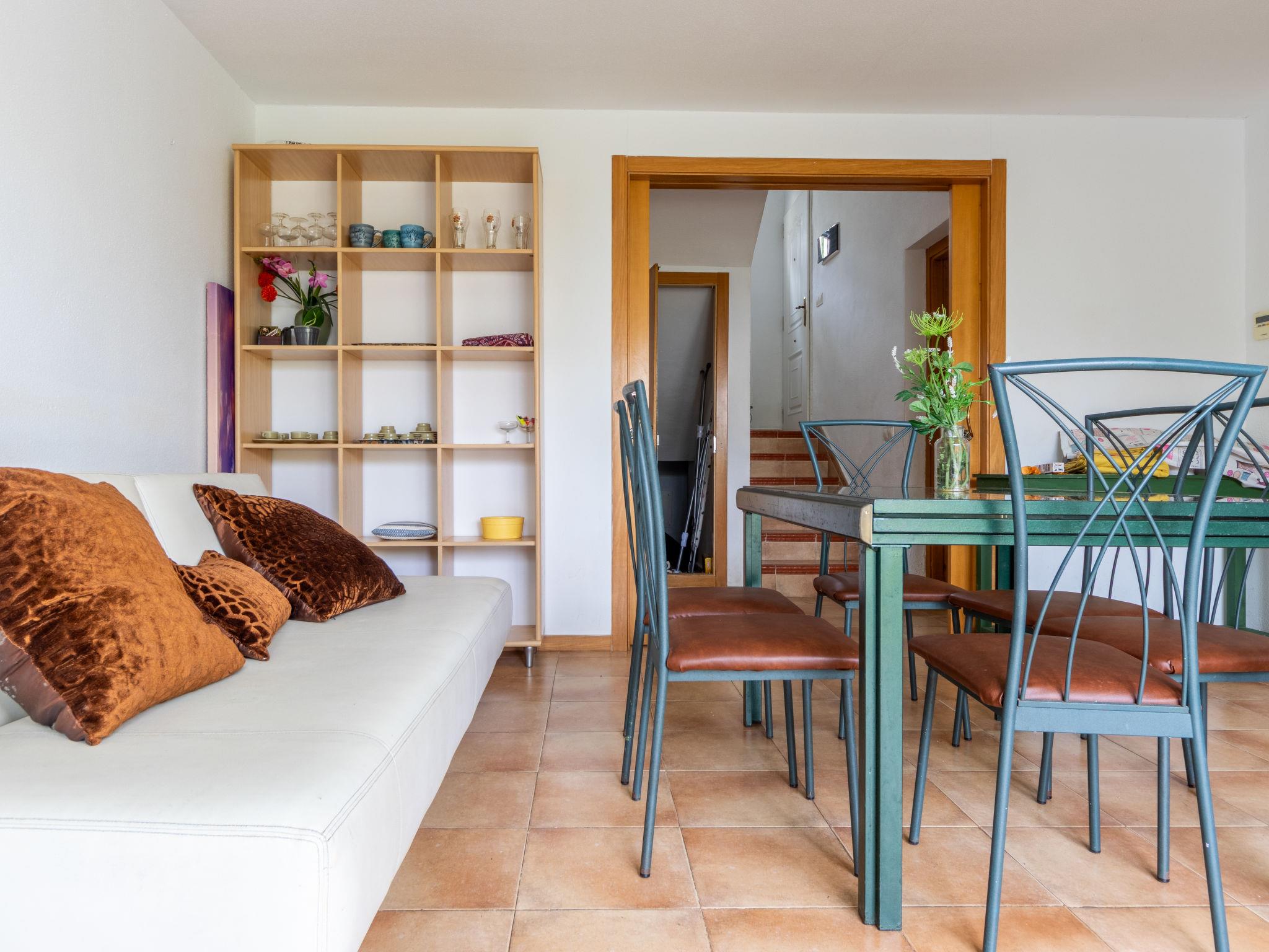 Zona Estival 1 km from La Pineda: Terraced house "Zona Estival", 3 storeys. Outside the resort, 5 km from the centre of Salou, 900 m from the sea, 900 m from the beach. For shared use: garden 10'000 m2 with lawn and trees, swimming pool (30 x 15 m, depth 90 - 200 cm, seasonal availability: 15.Jun. - 15.Sep.). Outdoor shower. Private: terrace, garden furniture, barbecue. In the house: sun terrace, central heating system. Stepped path (7 steps) to the house. Shop, supermarket 600 m, restaurant 400 m, bus stop 900 m, sandy beach 1 km. Golf course (18 hole) 2 km. Nearby attractions: Parque temático PORTAVENTURA 1 km, Parque aquático AQUOPOLIS 2 km, Spa AQUUM 2 km, Karting 3 km, Paintball 9 km. Please note: car recommended.