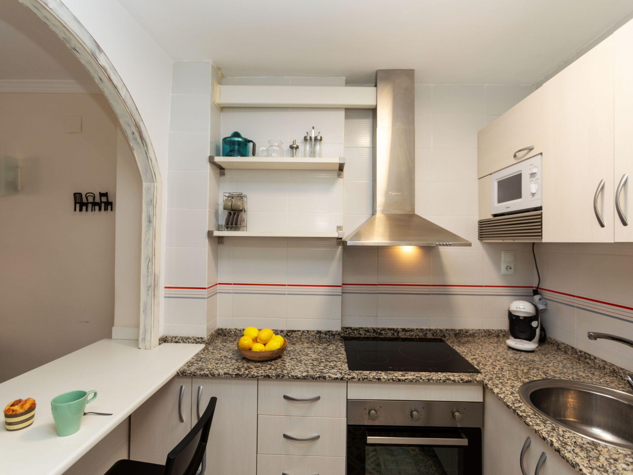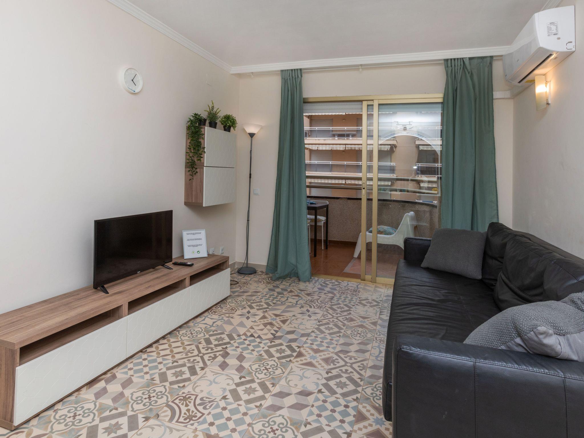 "Jerez", 2-room apartment 53 m2. Practical and beautiful furnishings: living/dining room 53 m2 with 1 sofabed (135 cm, length 190 cm), TV (flat screen), air conditioning and forced-air heating. 1 room with 1 french bed (135 cm, length 190 cm). Exit to the terrace. Open kitchen (oven, 3 ceramic glass hob hotplates, toaster, kettle, microwave, freezer, electric coffee machine, Capsules for coffee machine (Bosch Tassimo)) with bar. Shower/WC. Boiler (80 litres). Terrace furniture. View of the swimming pool. Facilities: washing machine, iron, children's high chair, baby cot for up to 2 year olds, hair dryer. Internet (WiFi, free). HUTT-043519 // Reg. Nr.: ESFCTU00004302400043202400000000000000000HUTT-0435194