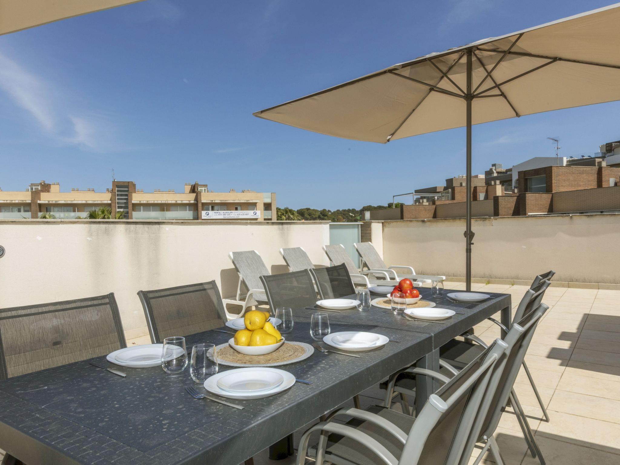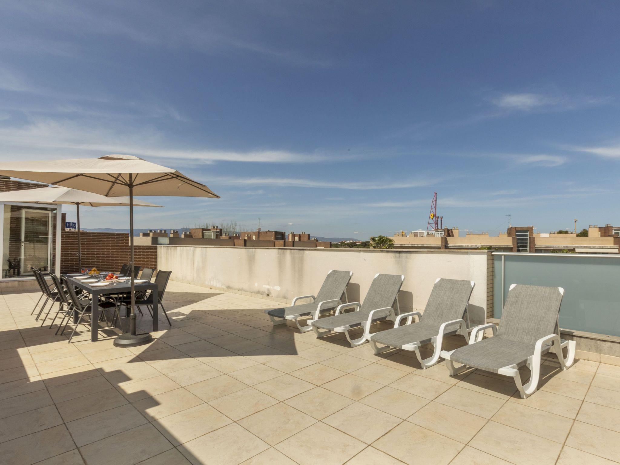 "Aquaria Atico", 4-room penthouse 108 m2 on 4th floor. Spacious and bright, comfortable furnishings: living/dining room with digital TV. Exit to the terrace. 1 room with 1 french bed (150 cm, length 190 cm), bath/bidet/WC. Exit to the terrace. 1 room with 1 pull-out bed (2 pers. 2 x 90 cm, length 190 cm). 1 room with 3 beds (90 cm, length 190 cm). Kitchen (oven, dishwasher, 3 ceramic glass hob hotplates, toaster, kettle, microwave, electric coffee machine). Exit to the terrace. Shower/WC. Air-conditioning, forced-air heating. 2 terraces. Terrace furniture, deck chairs (4). Facilities: washing machine, iron, hair dryer. Internet (WiFi, free). Parking space n 13. Please note: non-smokers only. TV only ES. HUTT-045743 // Reg. Nr.: ESFCTU00004302400083037000000000000000000HUTT-0457437