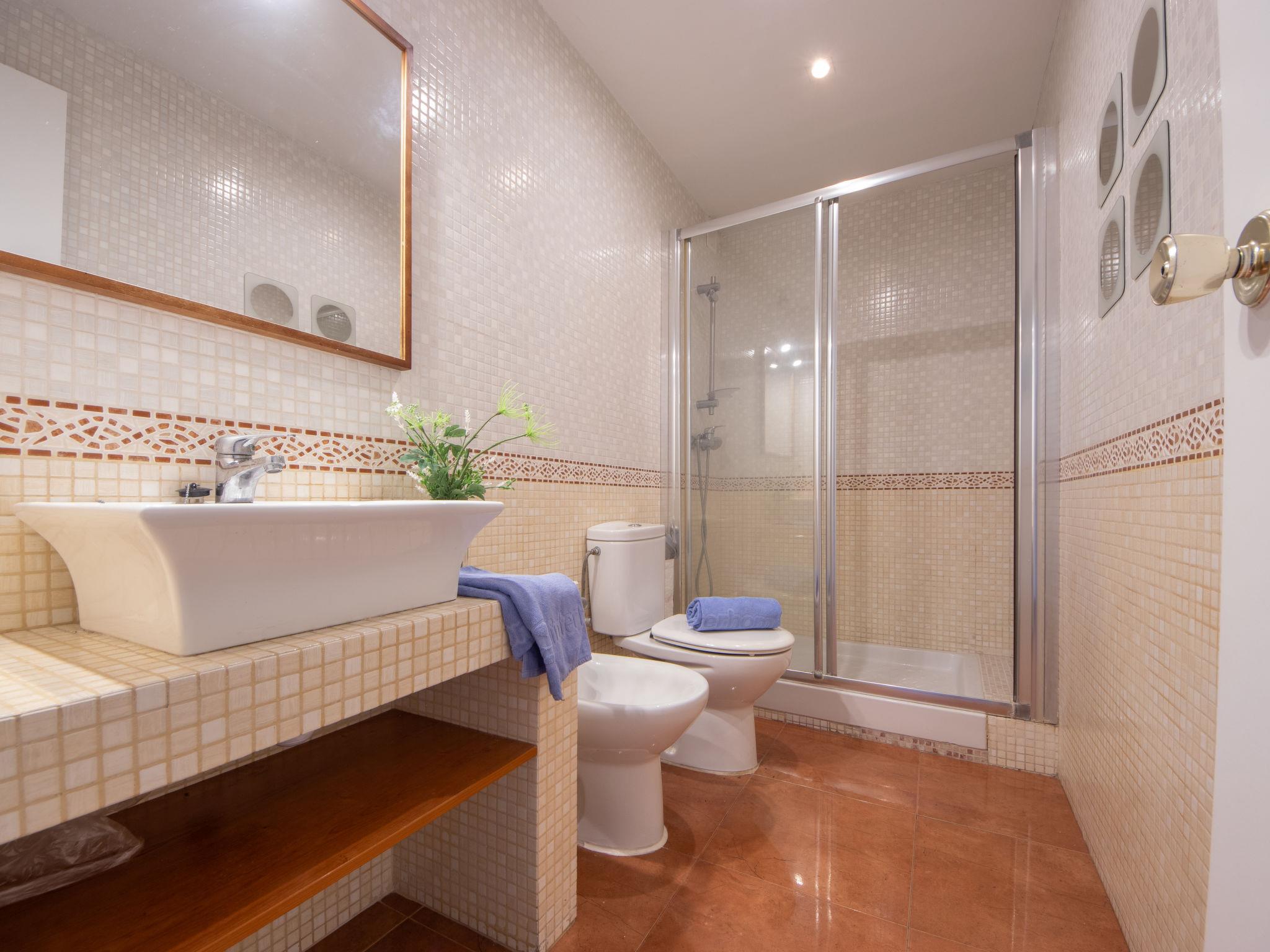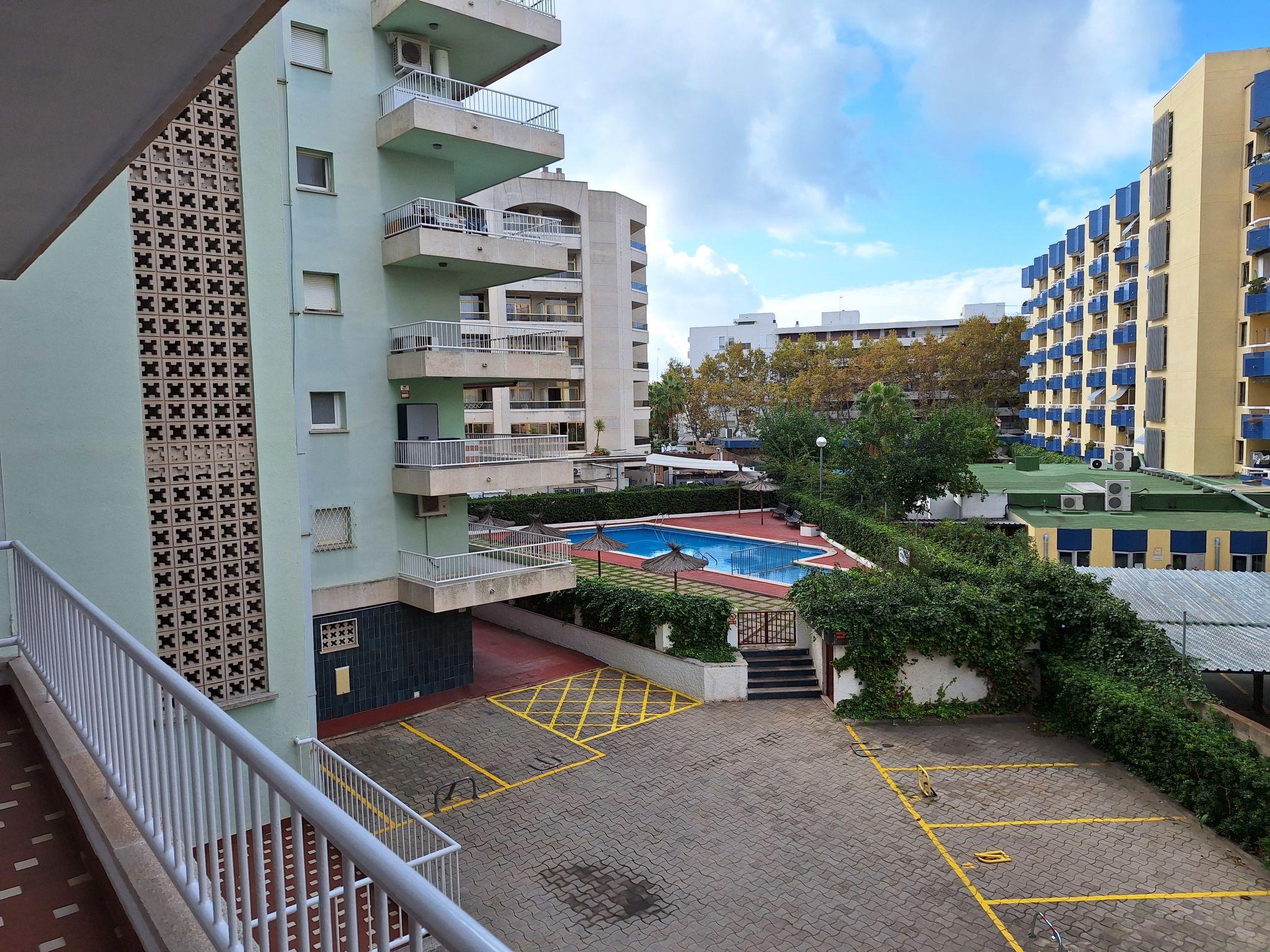 Salou: Beautiful, cosy apartment block "Mercuri". In the centre of Salou, in a central, busy position, 300 m from the sea, 300 m from the beach. For shared use: swimming pool angular (10 x 20 m, seasonal availability: 01.Jun. - 30.Sep.). Children's pool, outdoor shower. In the house: lift. Shop, grocery 25 m, supermarket 20 m, restaurant, bar, pedestrian zone, bicycle rental 10 m, bus stop "Bus La Plana parada La Ibense" 300 m, sandy beach "Playa Capellans" 300 m. Golf course (18 hole) 5 km. Nearby attractions: Port Aventura 2 km, Ferrari Land 2 km, Acuapolis 5 km, Aquum 5 km, Infinitum Golf 18 hoyos 5 km. Neighbourhood highly sensitive to noise. Quietness and good behaviour expected.