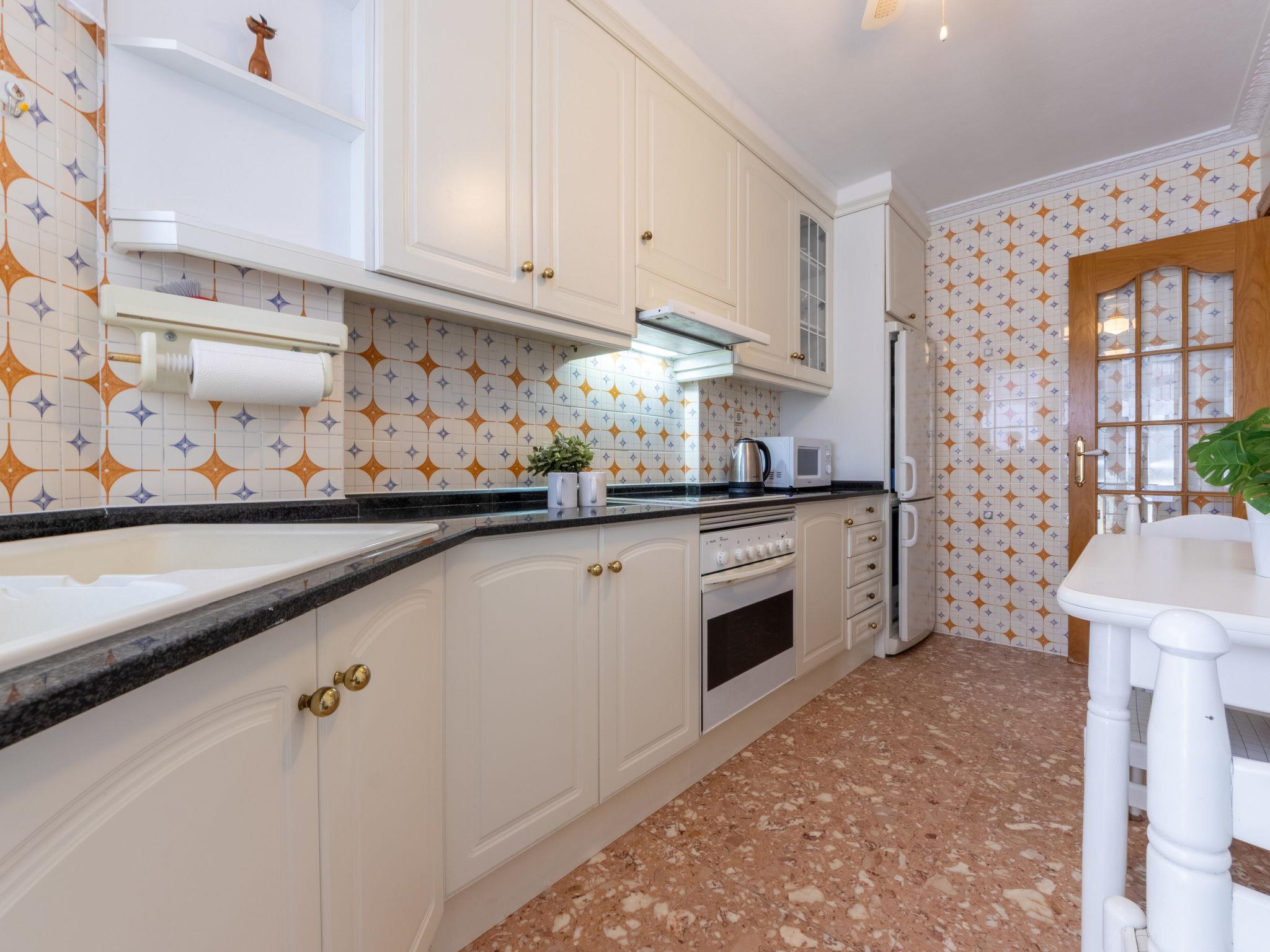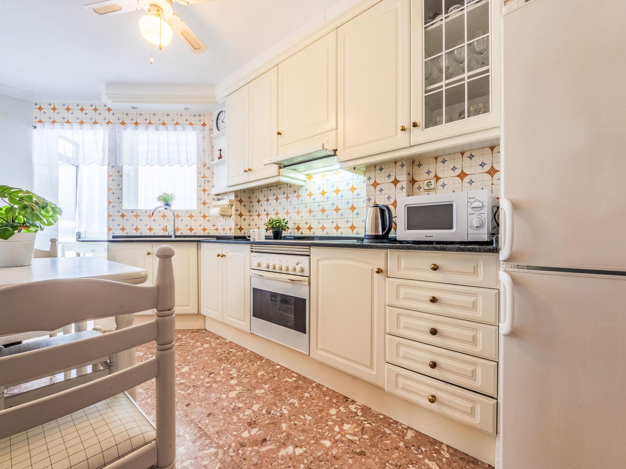 "Bahia", 4-room apartment on 2nd floor. Object suitable for 4 adults + 2 children. Practical and comfortable furnishings: living/dining room with digital TV and air conditioning. Exit to the terrace. 2 rooms, each room with 1 french bed (1 x 150 cm, length 190 cm). 1 room with 1 pull-out bed (2 pers. 2 x 90 cm, length 190 cm). Kitchen (oven, 4 ceramic glass hob hotplates, toaster, kettle, microwave, electric coffee machine). 2 showers/WC. Heating not available in all rooms. Terrace. View of the resort. Facilities: washing machine, iron, children's high chair, baby cot for up to 2 year olds, hair dryer. Internet (WiFi, free). Please note: non-smokers only, no parking. TV only ES. HUTT-067086 // Reg. Nr.: ESFCTU00004302400024545700000000000000000HUTT-0670863