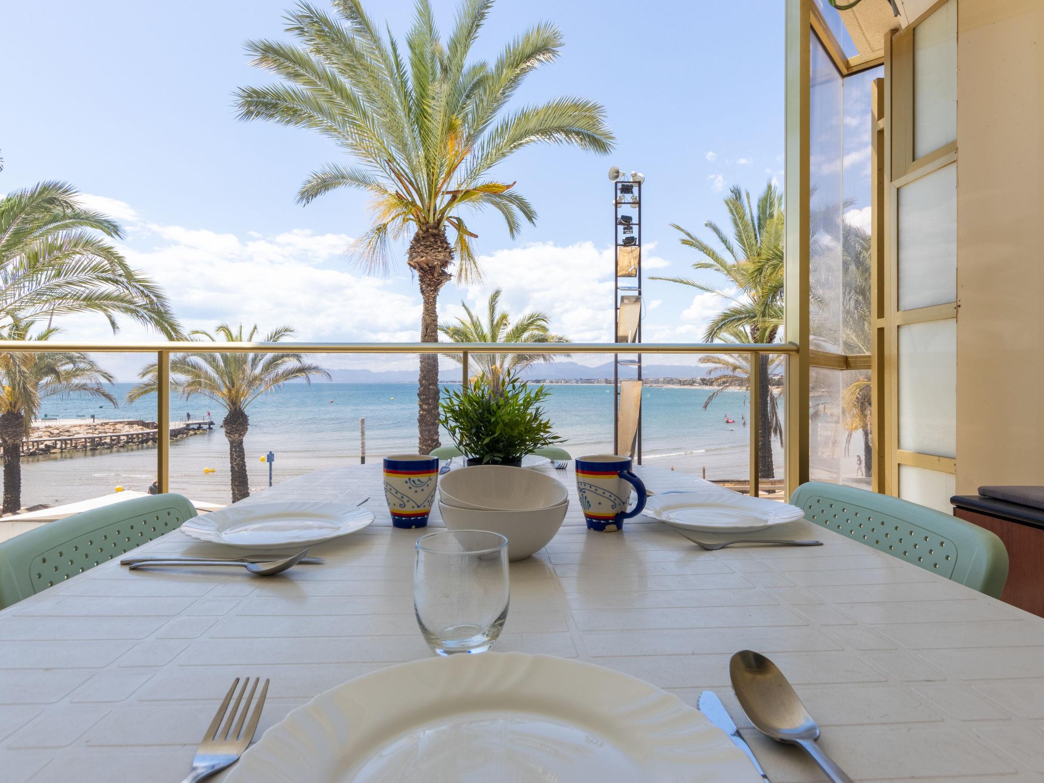 "Barcino", 3-room apartment 70 m2 on 1st floor. Object suitable for 4 adults. Simple and practical furnishings: living/dining room with digital TV, air conditioning and forced-air heating. Exit to the terrace. 1 room with 1 french bed (150 cm, length 190 cm). Exit to the terrace. 1 room with 2 beds (90 cm, length 190 cm). Kitchen (dishwasher, 4 ceramic glass hob hotplates, toaster, kettle, microwave, electric coffee machine). Bath/WC. Air-conditioning, forced-air heating, boiler (76 litres). Terrace. Terrace furniture. Marvellous view of the sea. Facilities: washing machine, iron, hair dryer. Please note: non-smokers only. HUTT-005402 // Reg. Nr.: ESFCTU00004302400046481000000000000000HUTT-005402-792