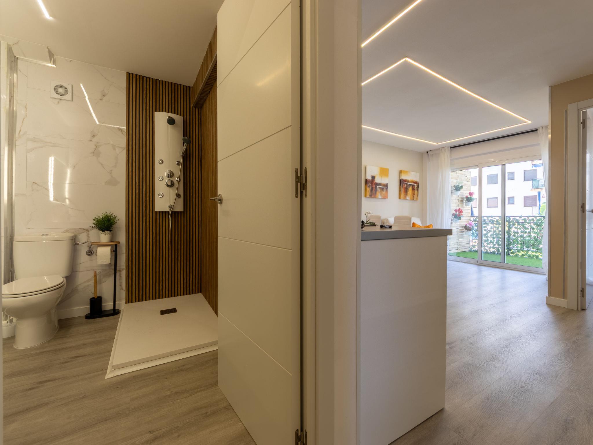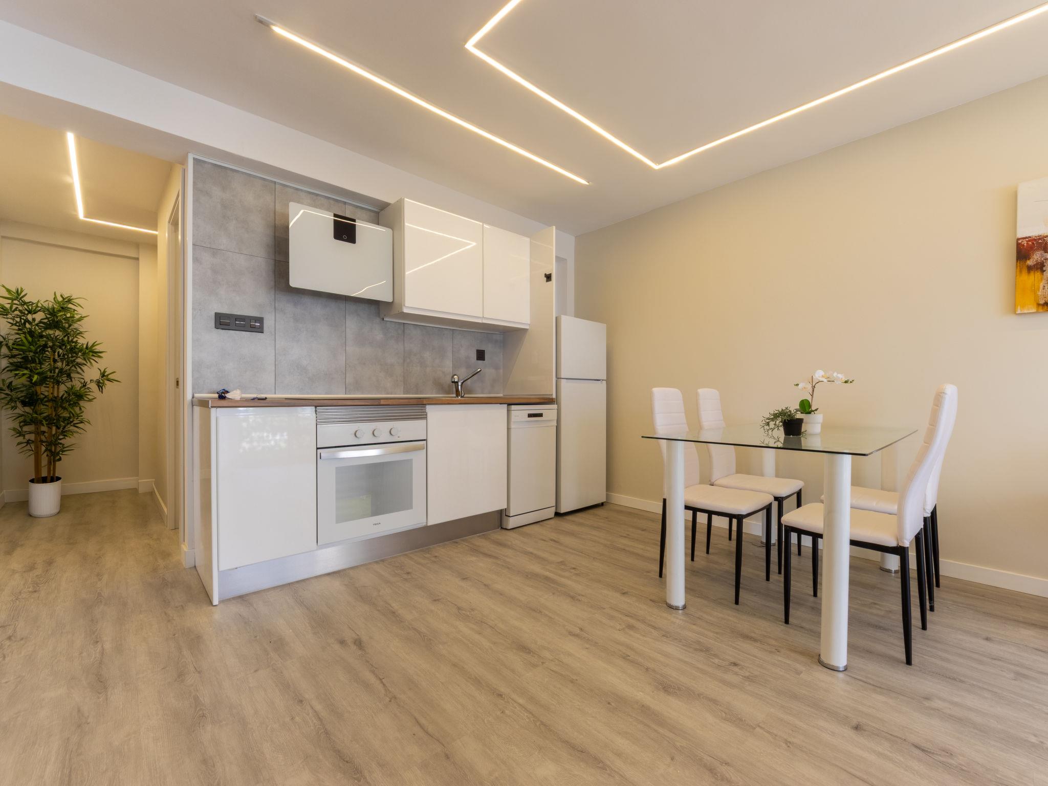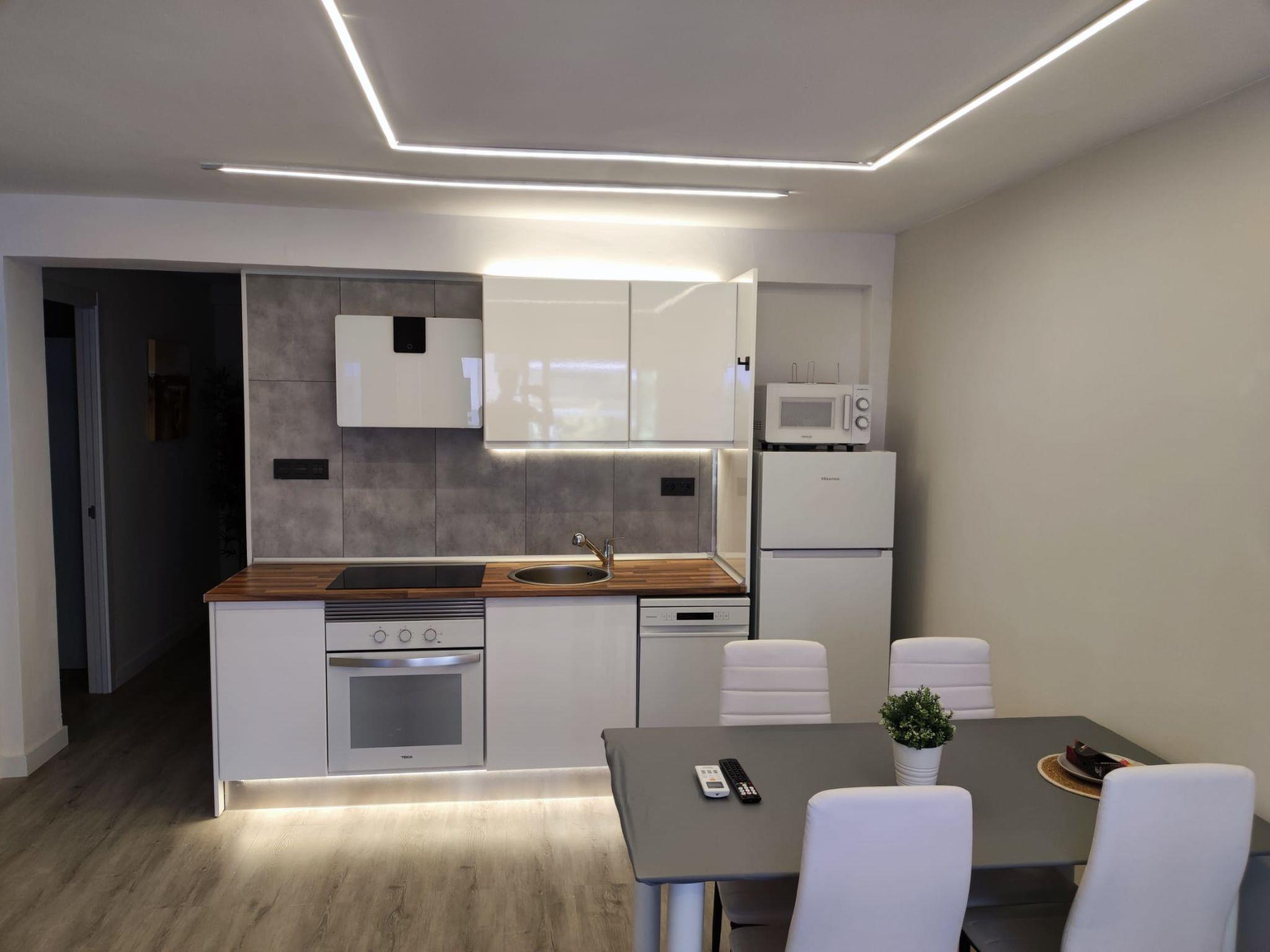 "Rosana", 4-room apartment 60 m2 on 1st floor. Bright, fully renovated in 2025, practical and cosy furnishings: living/dining room with digital TV and air conditioning. Exit to the terrace. 1 room with 1 french bed (160 cm, length 200 cm). 1 room with 1 bed (90 cm, length 200 cm). 1 room with 1 bed (90 cm, length 200 cm). Open kitchen (oven, dishwasher, 3 ceramic glass hob hotplates, kettle, microwave, electric coffee machine). Exit to the terrace. Shower/WC. Forced-air heating (100 litres). Large balcony. Terrace furniture. View of the resort. Facilities: washing machine, hair dryer. Internet (WiFi, free). Please note: non-smokers only. TV only ES. HUTT-040839 // Reg. Nr.: ESFCTU00004302400008069000000000000000HUTT-040839-052