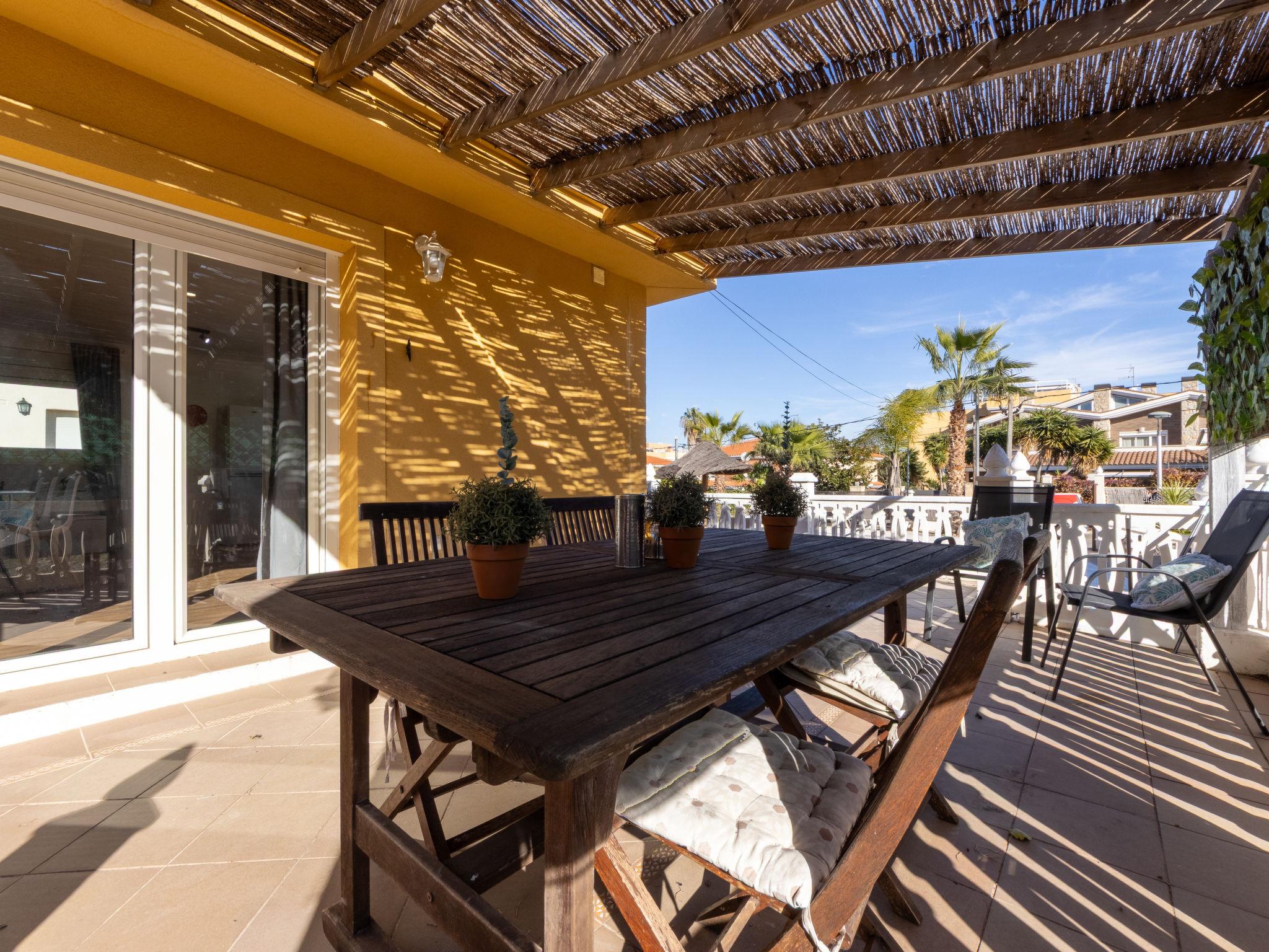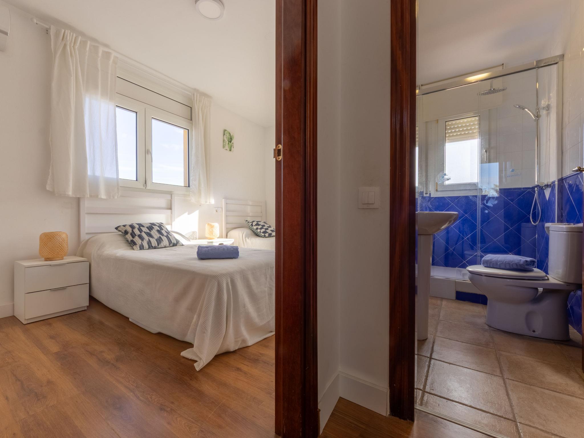 "Villa Malaga", 6-room house 200 m2 on 2 levels. Object suitable for 8 adults + 2 children. Spacious, comfortable and cosy furnishings: living/dining room with digital TV, air conditioning and forced-air heating. Exit to the garden. 1 room with 1 french bed (1 x 150 cm, length 190 cm), air conditioning. 1 room with 1 french bed (1 x 150 cm, length 190 cm), air conditioning. 1 room with 1 x 2 bunk beds (90 cm, length 190 cm). Open kitchen (oven, dishwasher, 4 ceramic glass hob hotplates, toaster, kettle, microwave, electric coffee machine). 2 showers/WC. Boiler (150 litres). Upper floor: 2 rooms, each room with 2 beds (90 cm, length 190 cm), air conditioning. Shower/WC. Large garden. Terrace furniture, barbecue, deck chairs (5). Facilities: washing machine, iron, hair dryer. Internet (WiFi, free). Please note: non-smoking house. Maximum 2 pets/ dogs allowed. TV only ES. HUTT-013160 // Reg. Nr.: ESFCTU00004302400003555300000000000000000HUTT-0131603